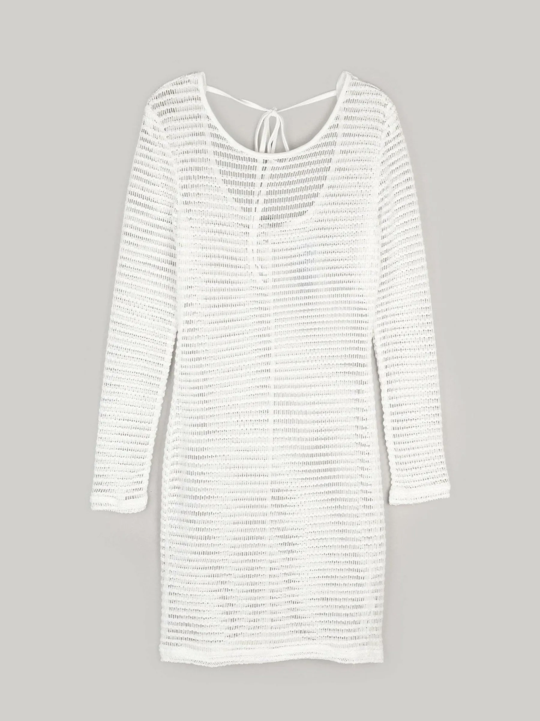 Kolor: białyKrój: regularTyp: sukienkaRekaw: długi rękawDługość: miniPattern style: szydełkowaneDetal: nad głow…