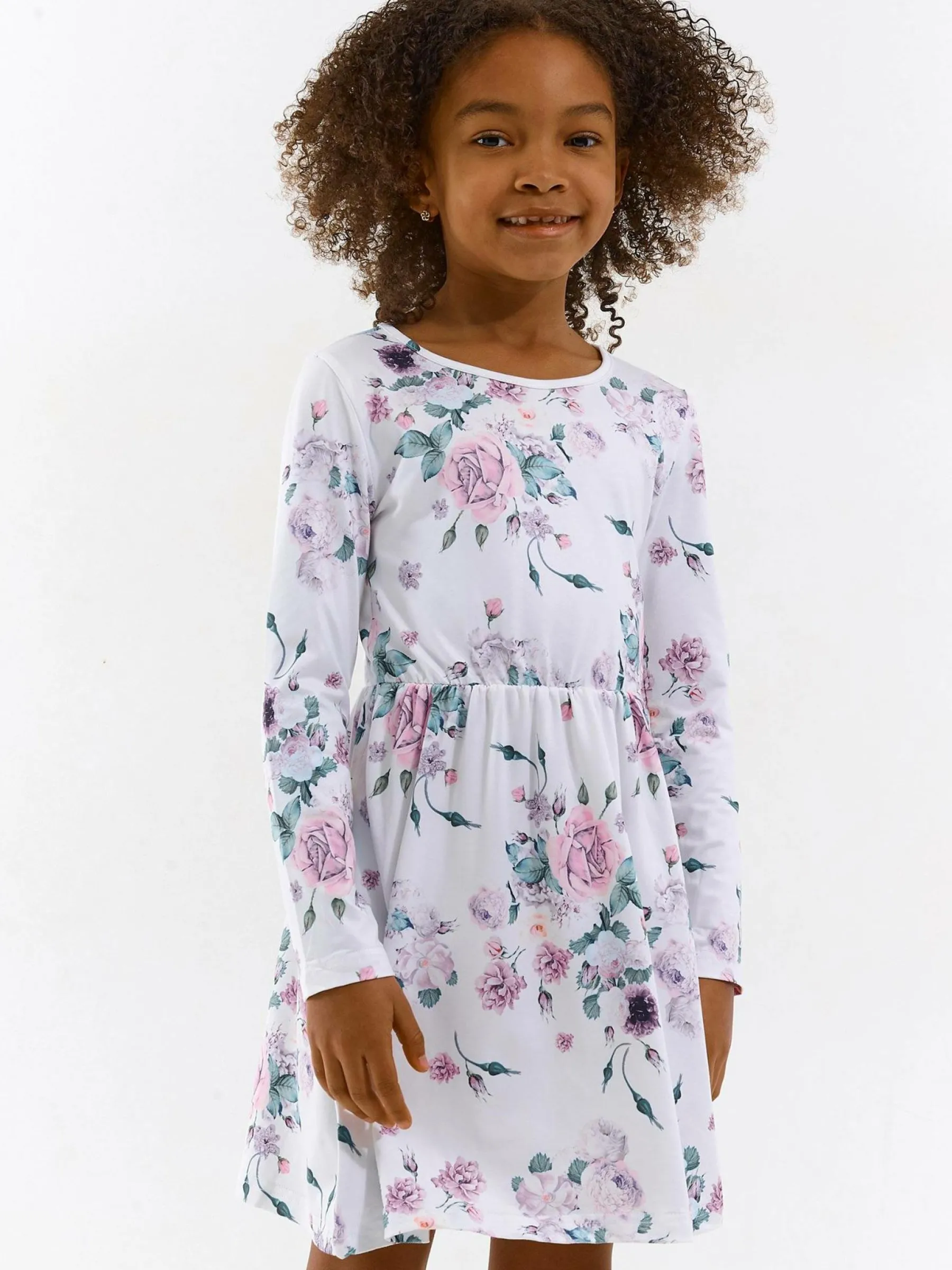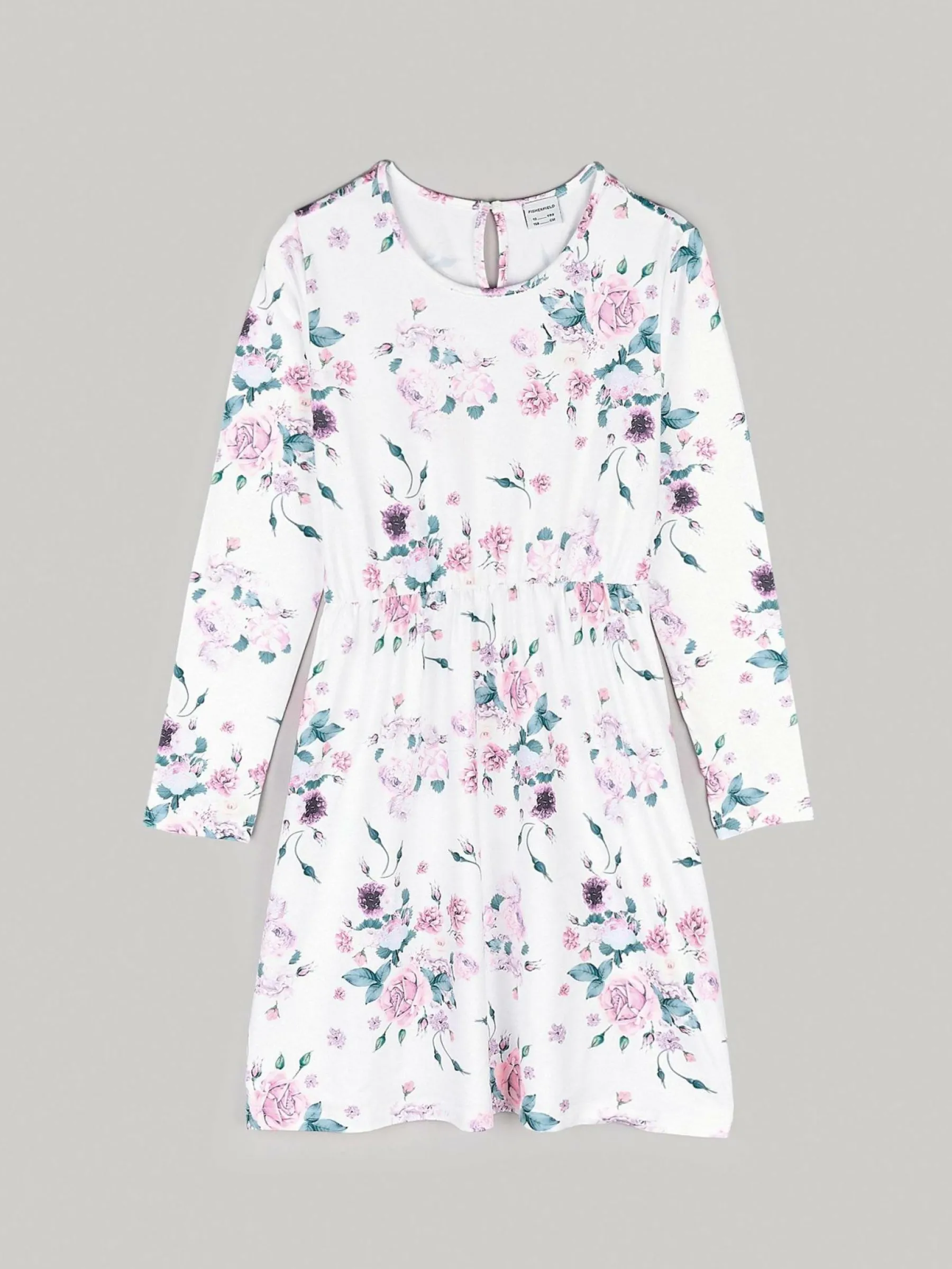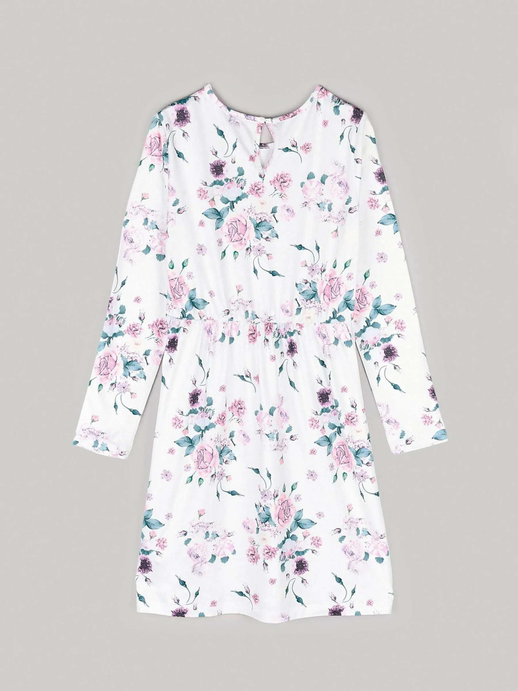 Kolor: białyKrój: asyTyp: sukienkaRekaw: długi rękawDługość: miniPattern style: kwiatoweDetal: nad głowąMateria…
