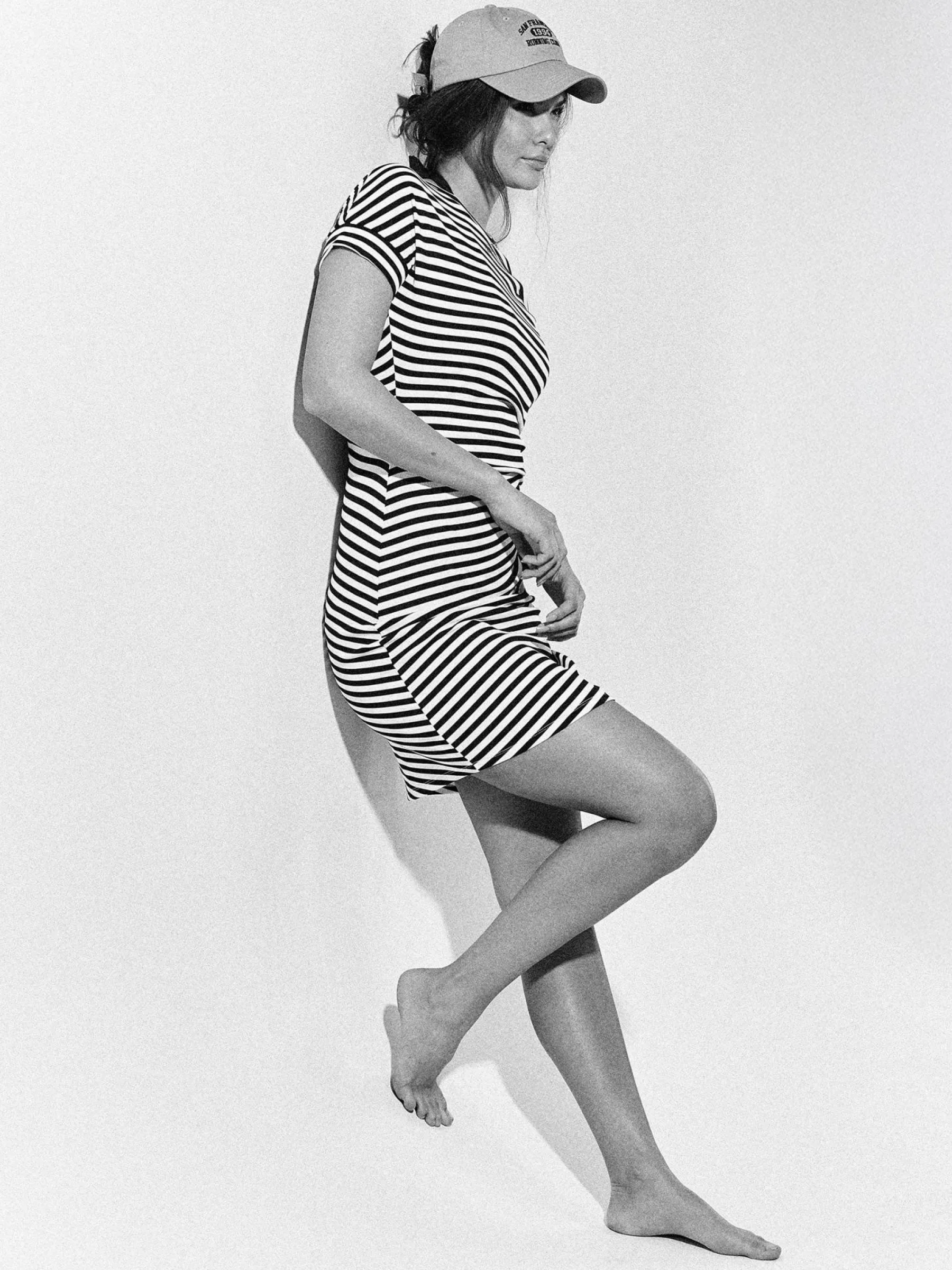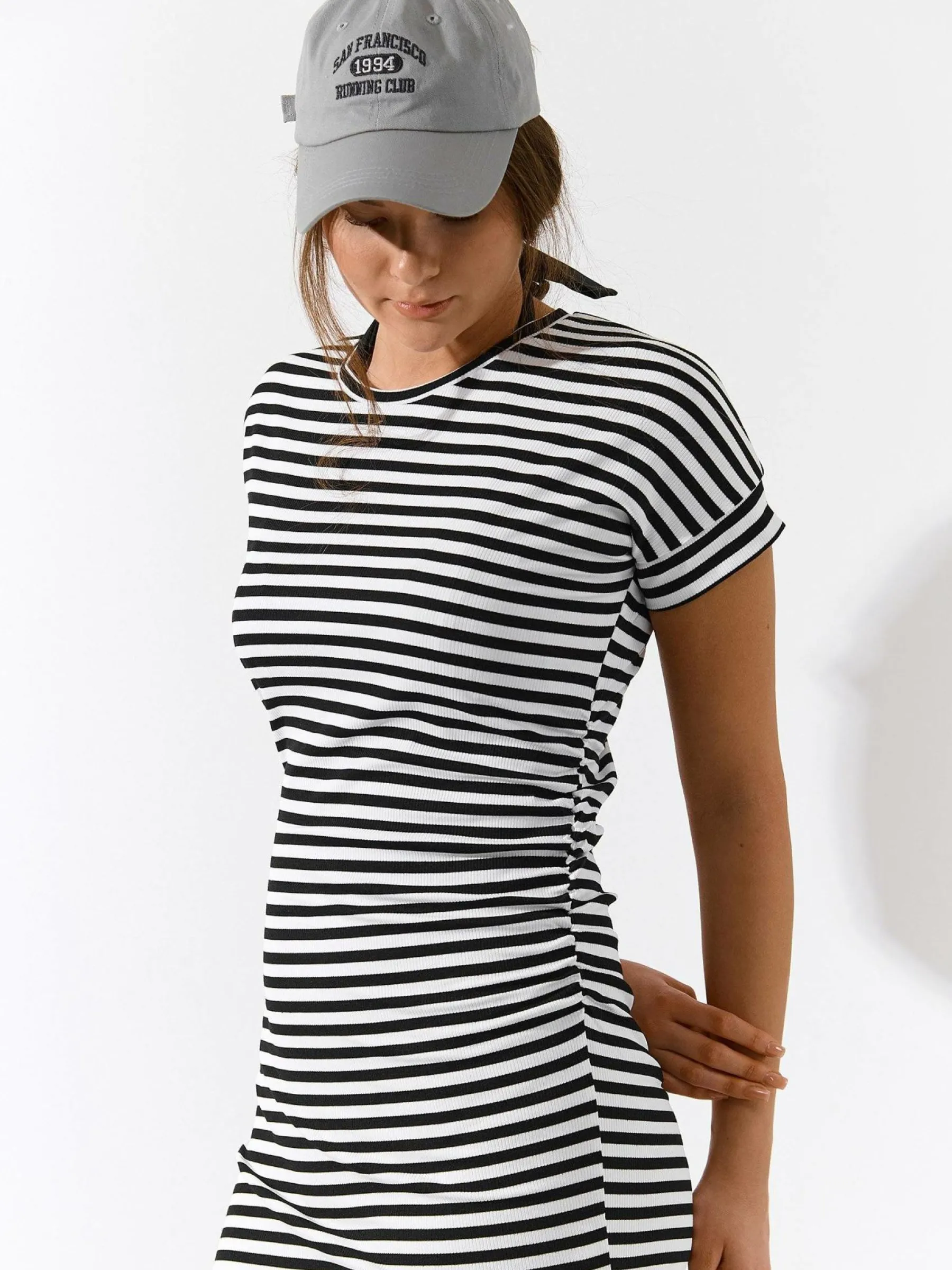 Kolor: białyKrój: podstawowyTyp: sukienkaRekaw: krótki rękawDługość: miniPattern style: w prążkiDetal: nad gło…