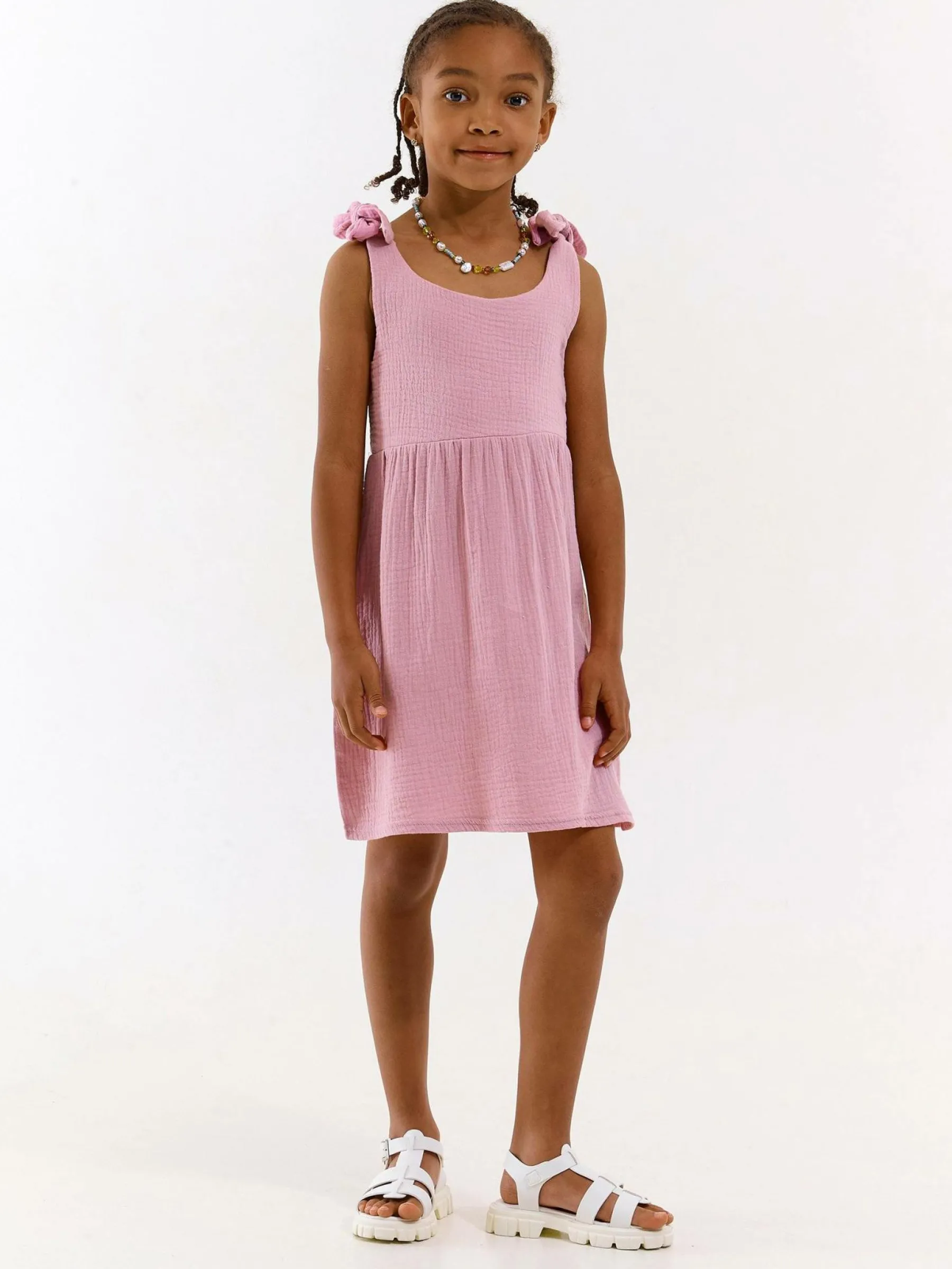Kolor: różowyKrój: asyTyp: sukienkaRekaw: bez rękawówDługość: miniPattern style: pojedynczy kolor, strukturowane…