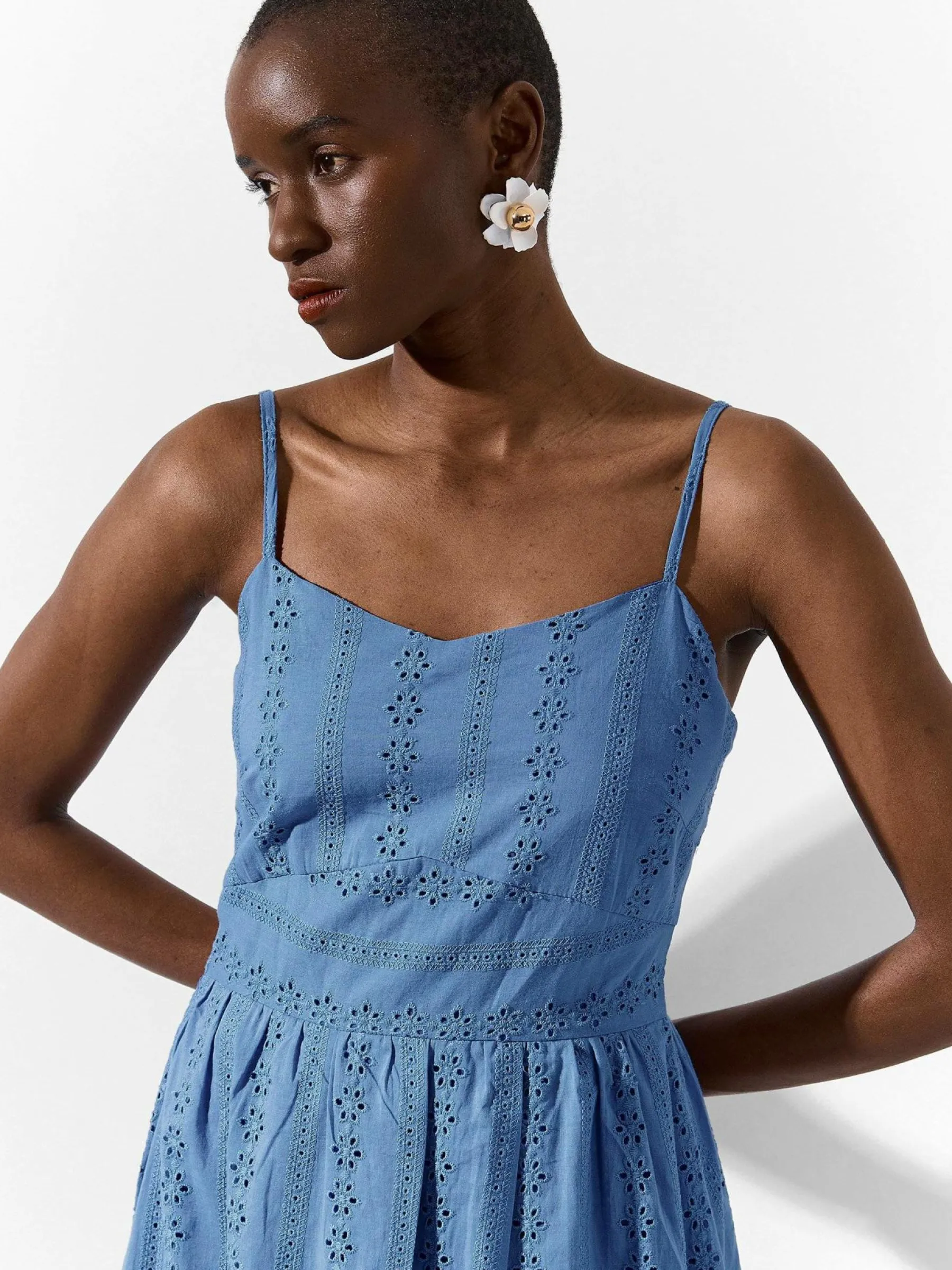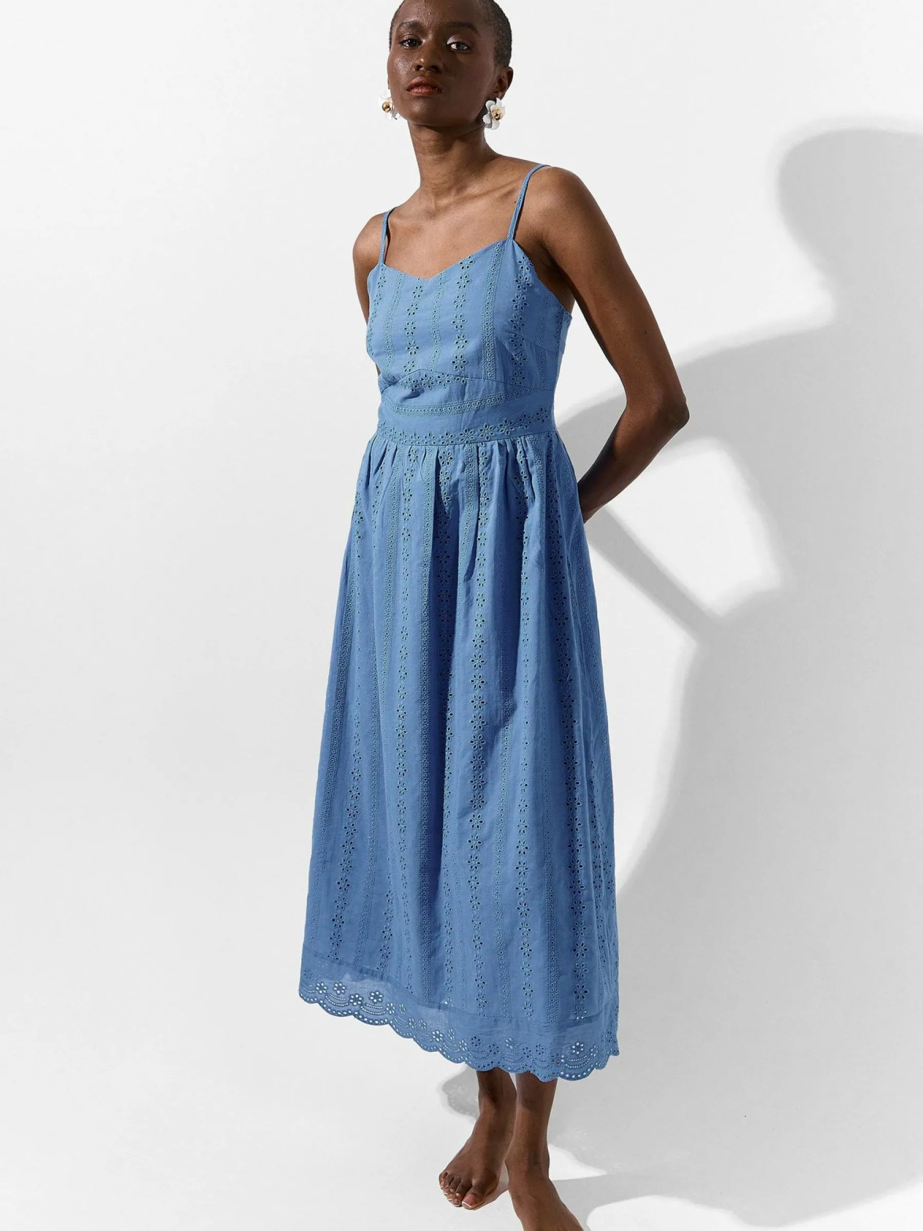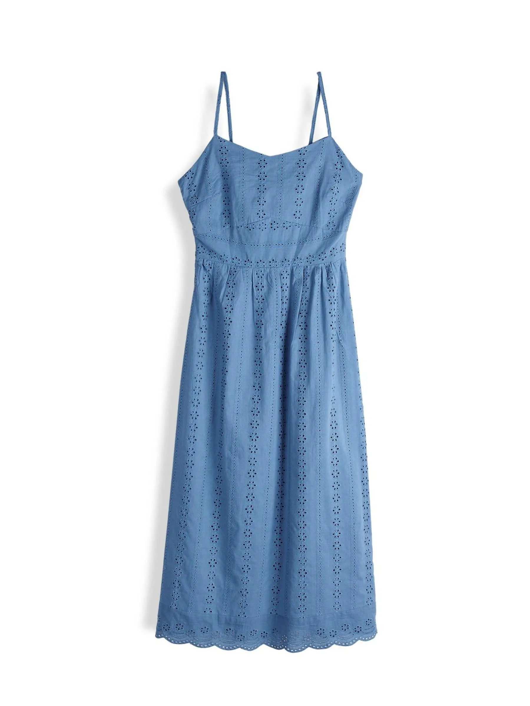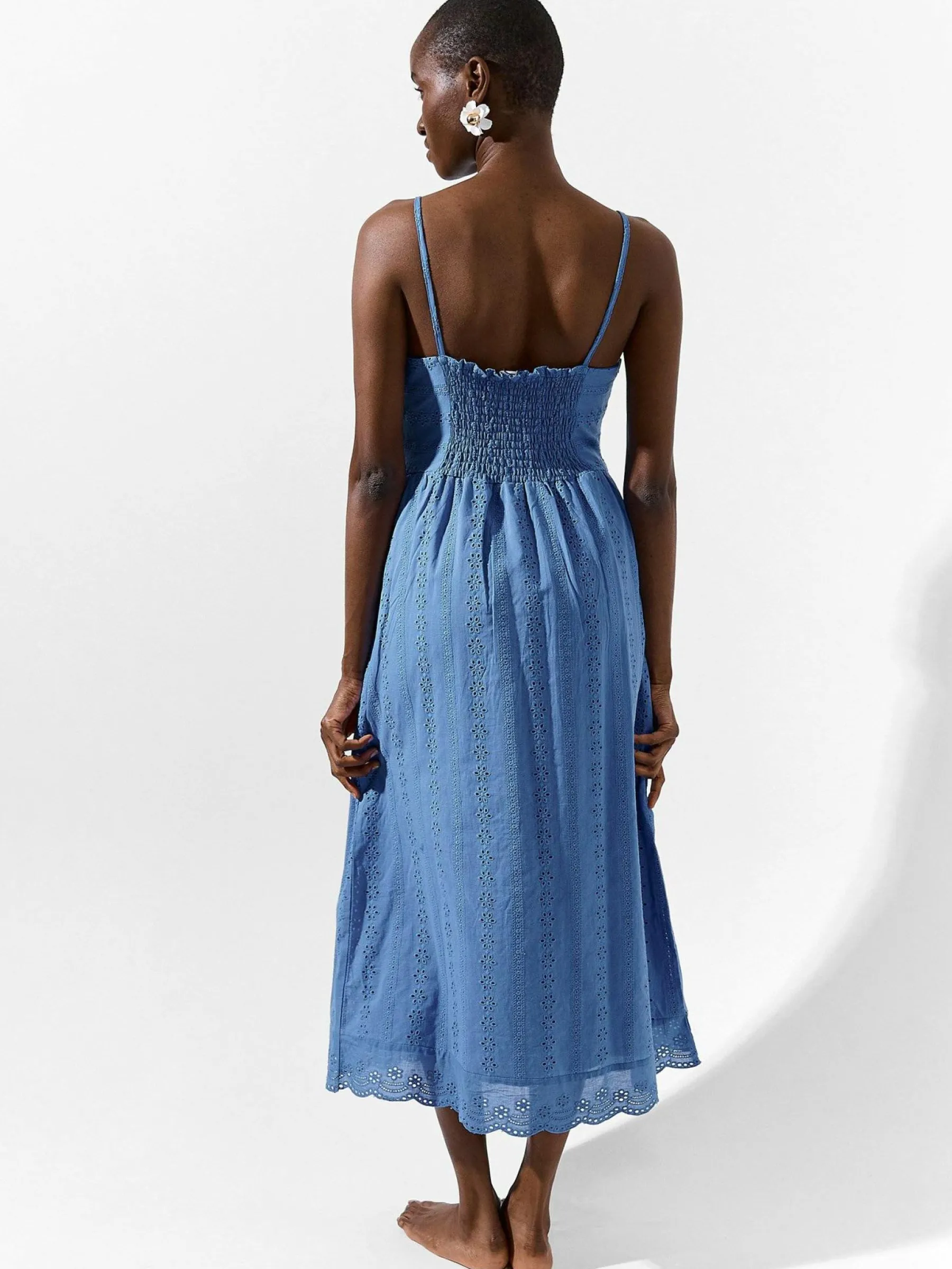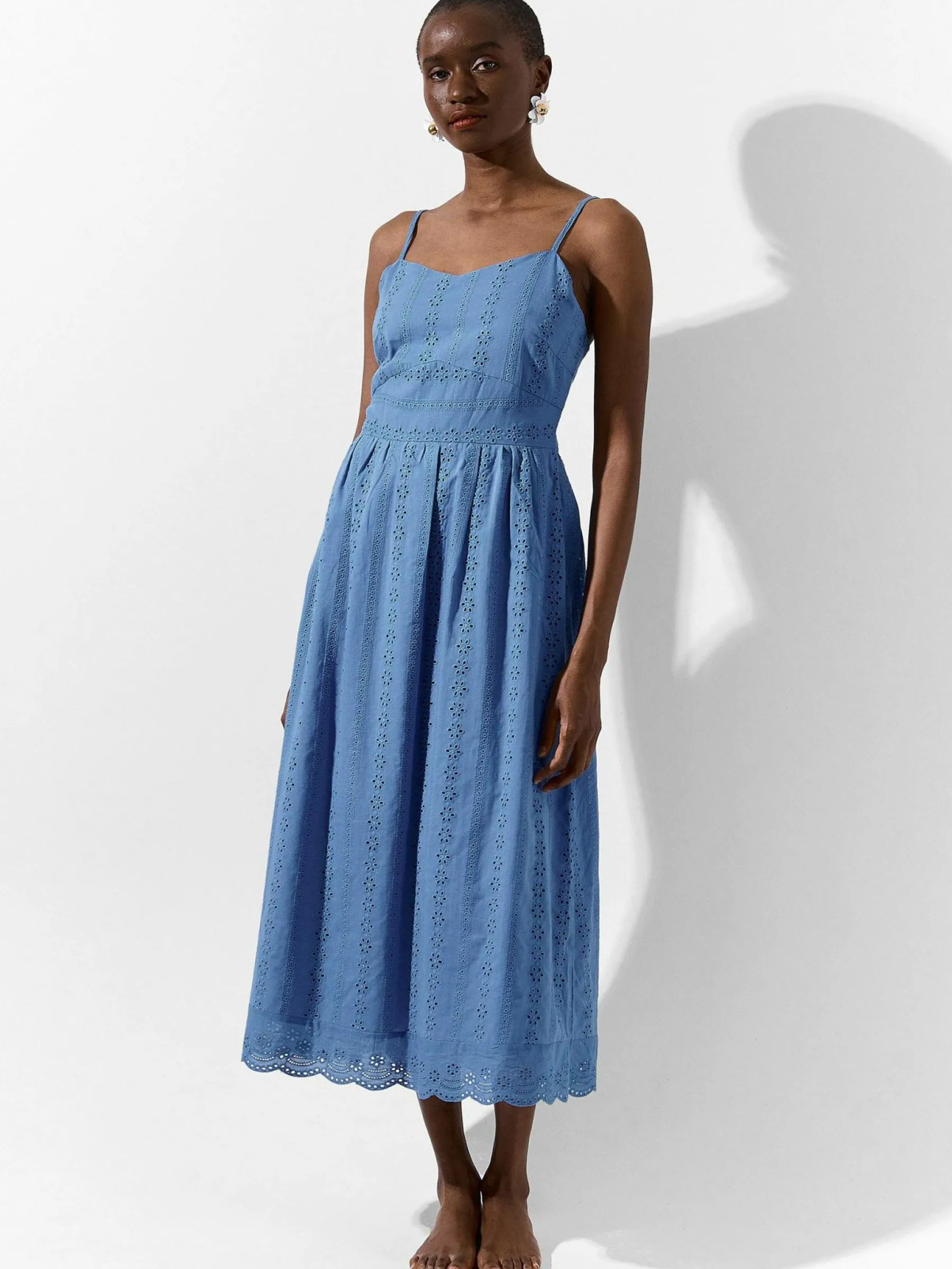 Kolor: niebieskiKrój: asyTyp: sukienkaRekaw: bez rękawówDługość: midiPattern style: pojedynczy kolor, haftowaneDet…