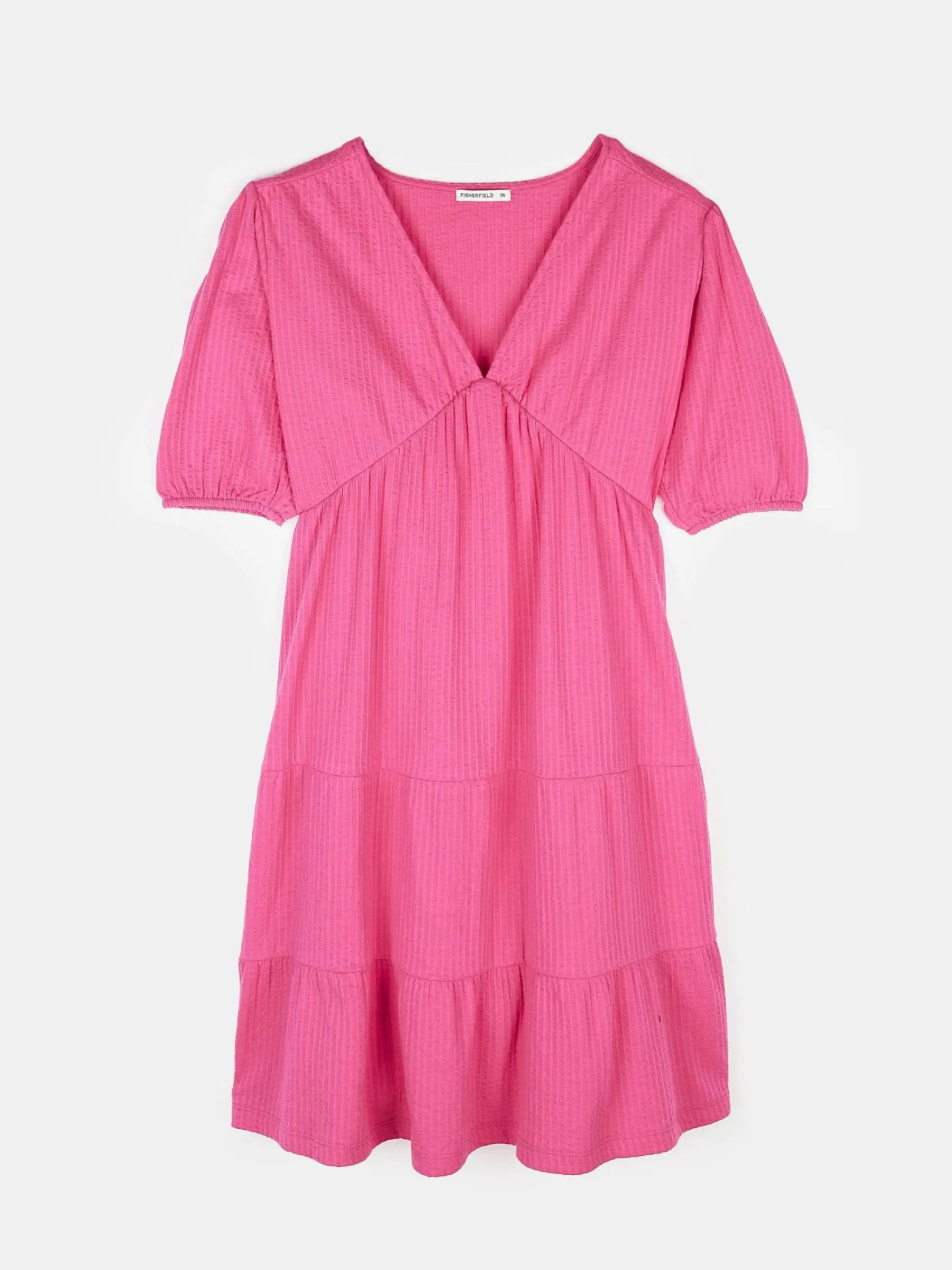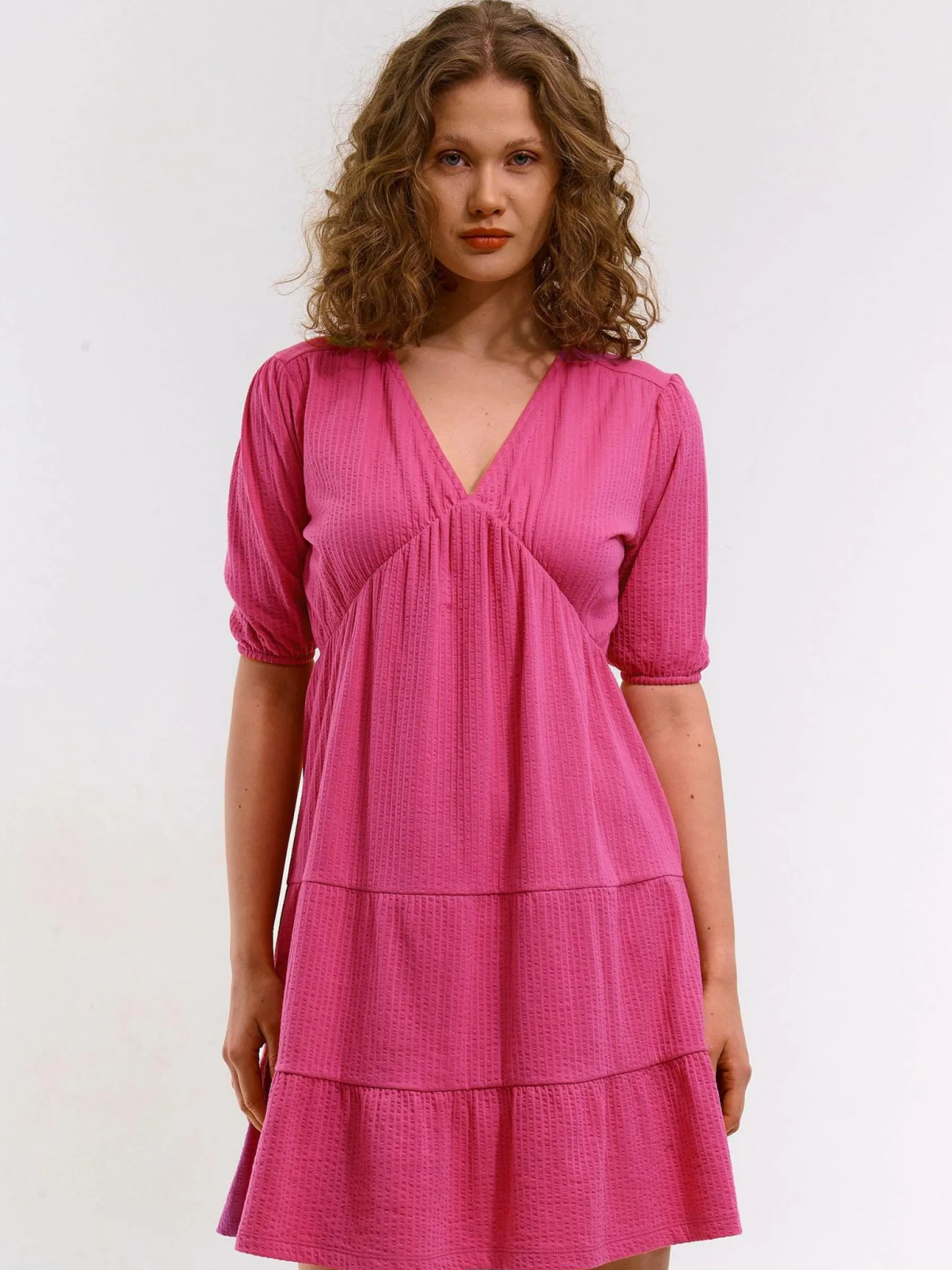 Zdjęcia z modelką mogą nie odpowiadać rzeczywistemu kolorowi produktu.Kolor: różowyKrój: z falbanąTyp: sukienkaR…