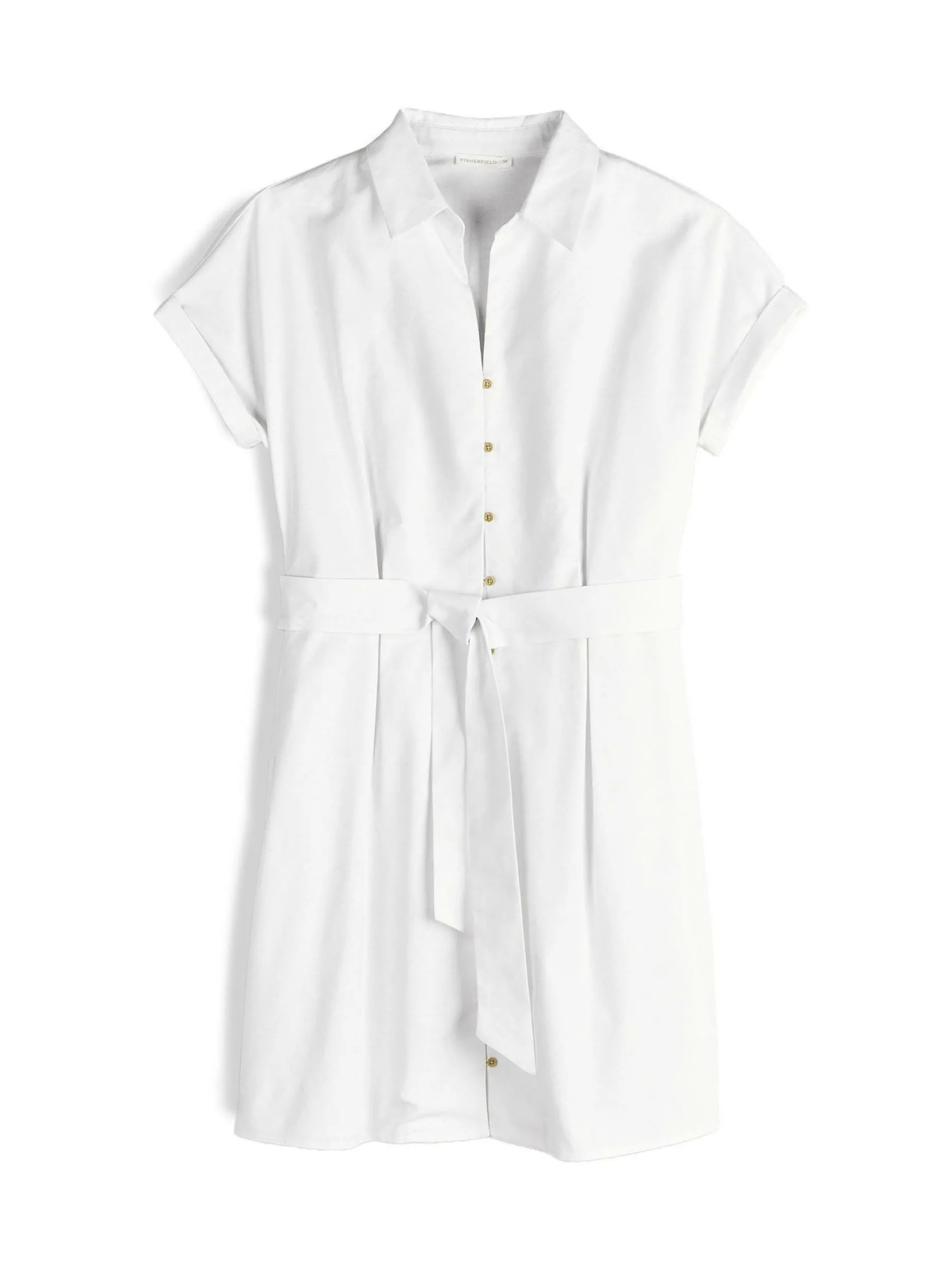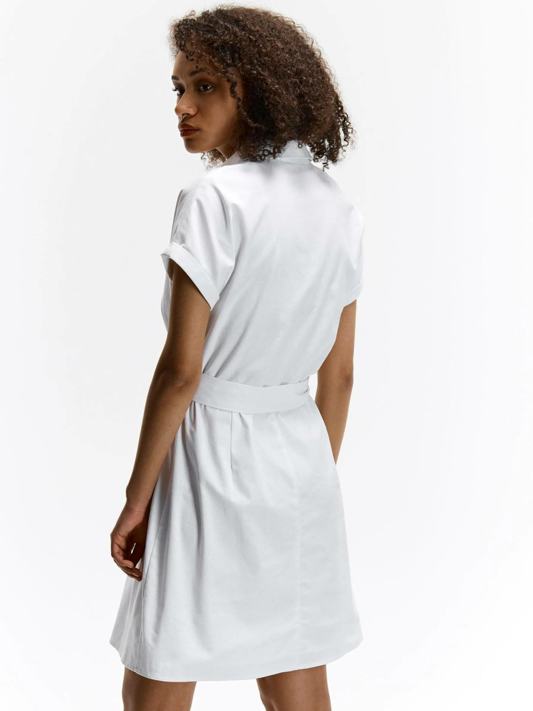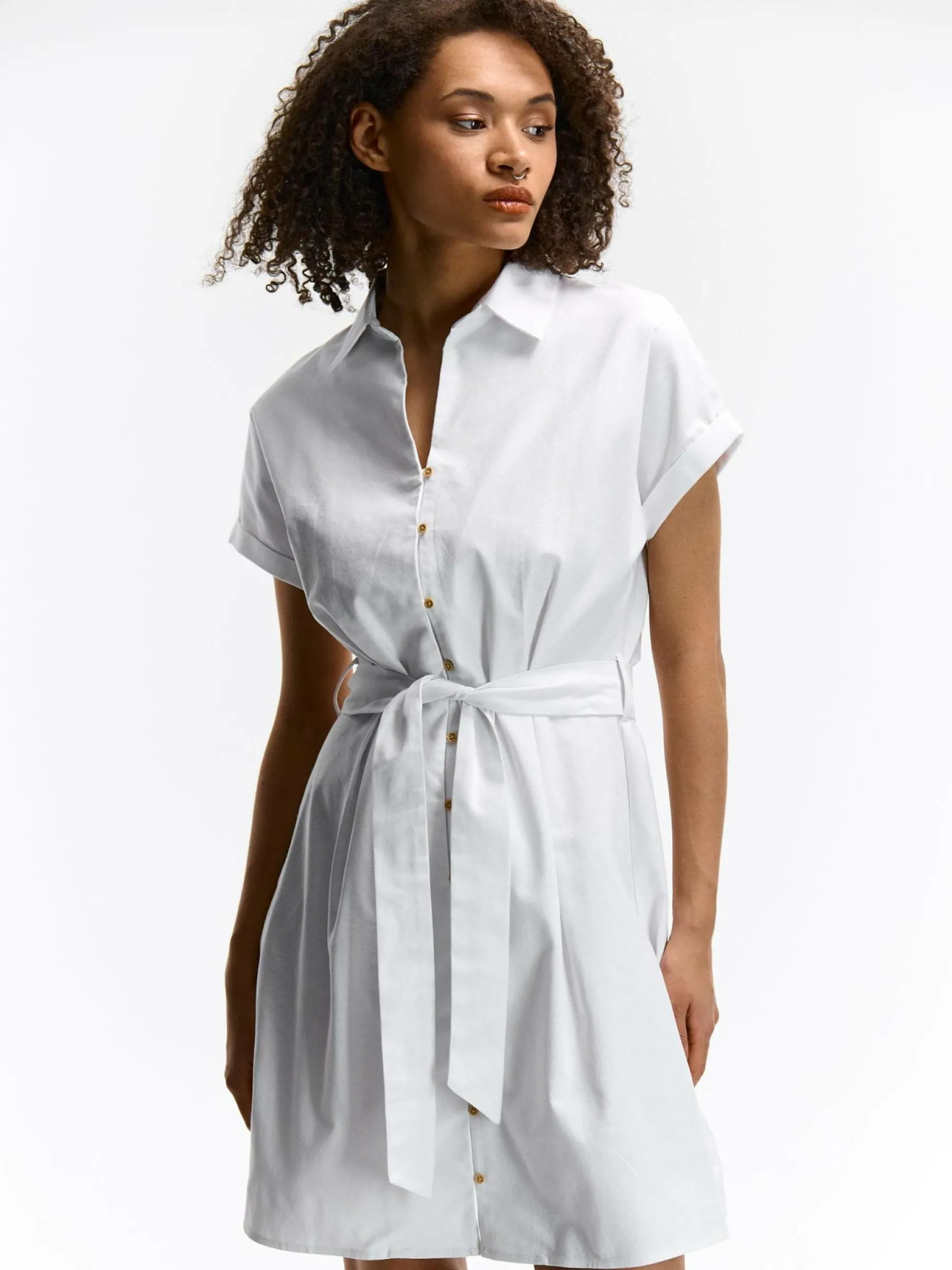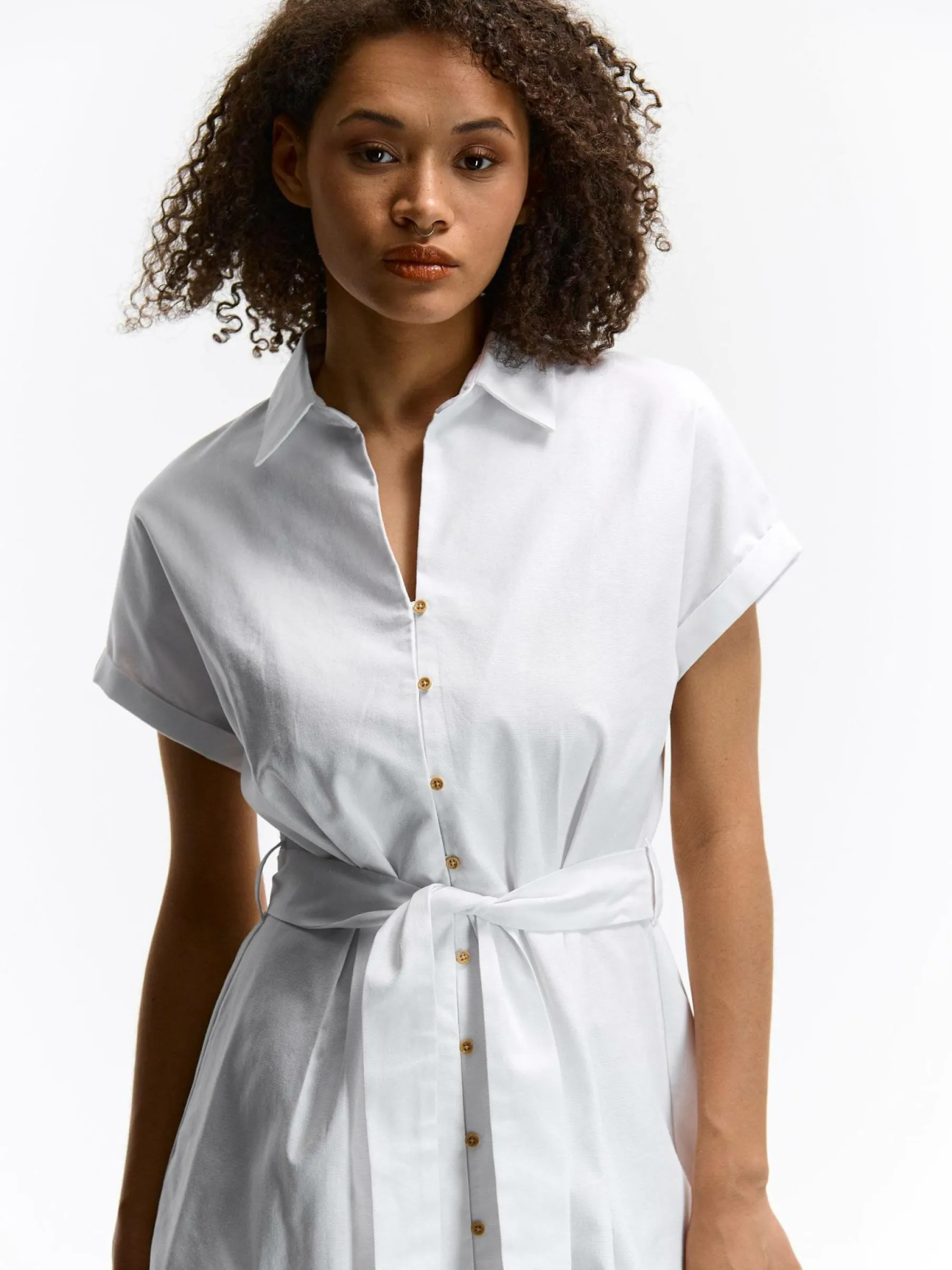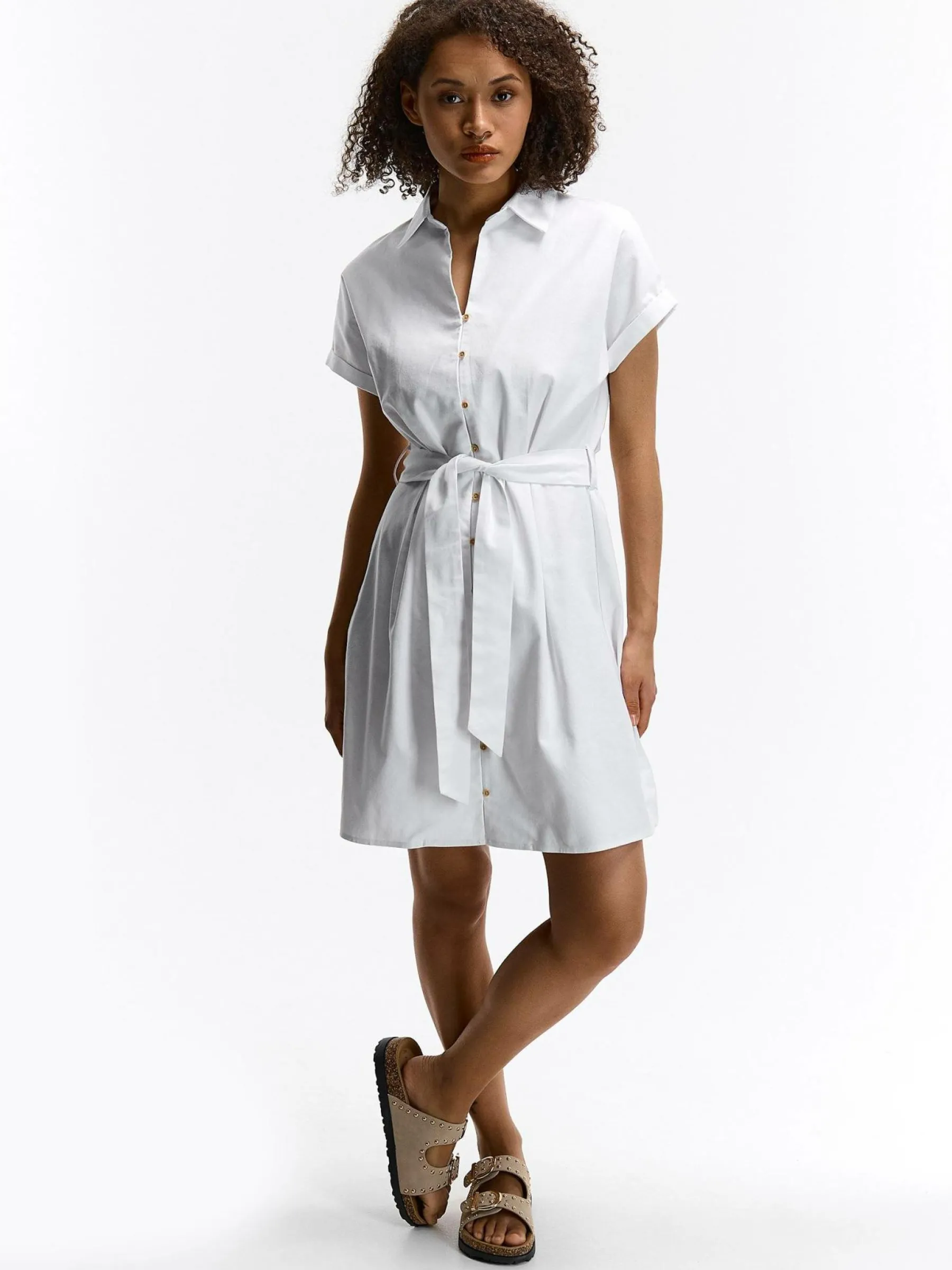 Kolor: białyKrój: koszuloweTyp: sukienkaRekaw: krótki rękawDługość: miniPattern style: pojedynczy kolorDetal: na …