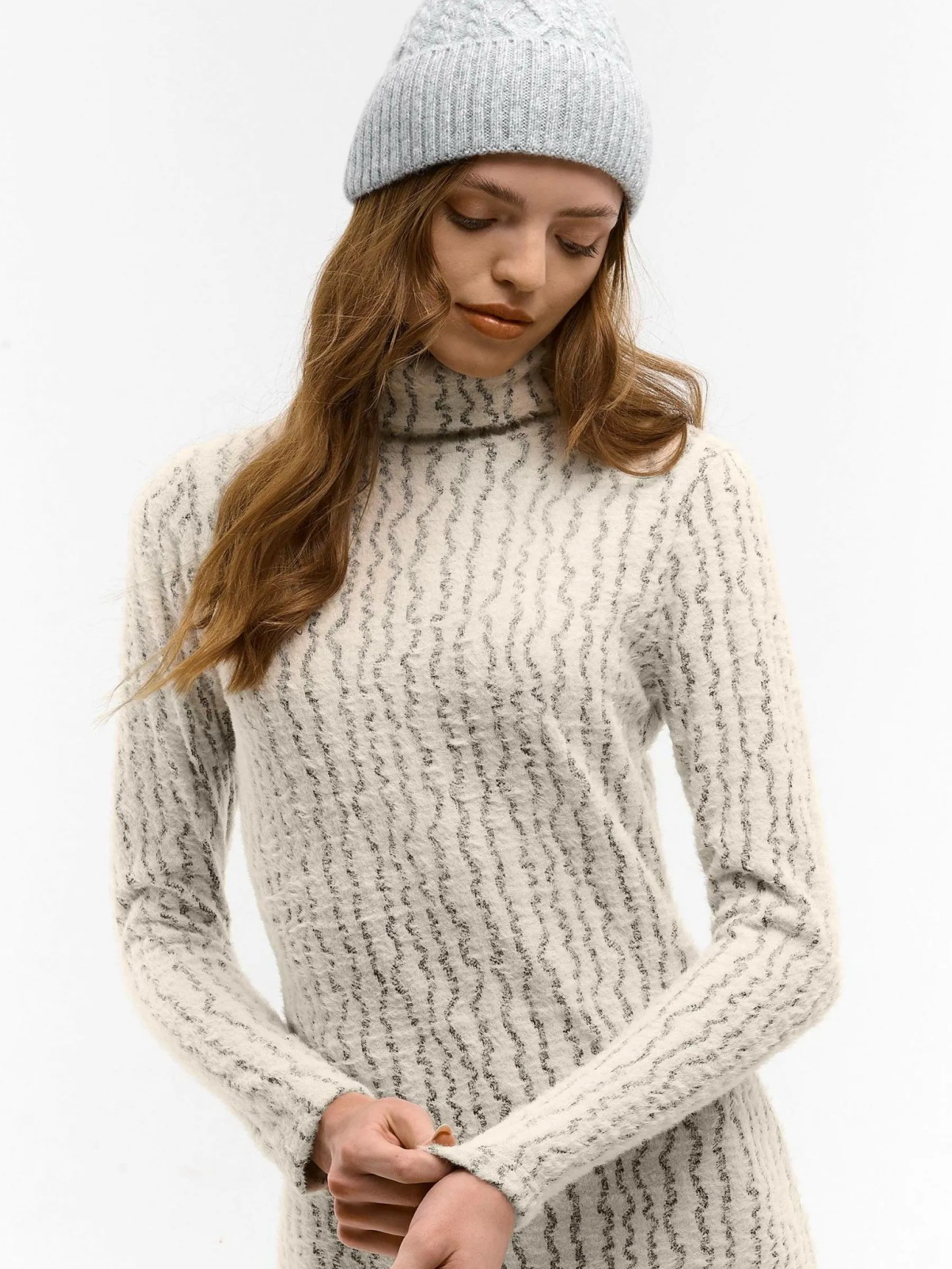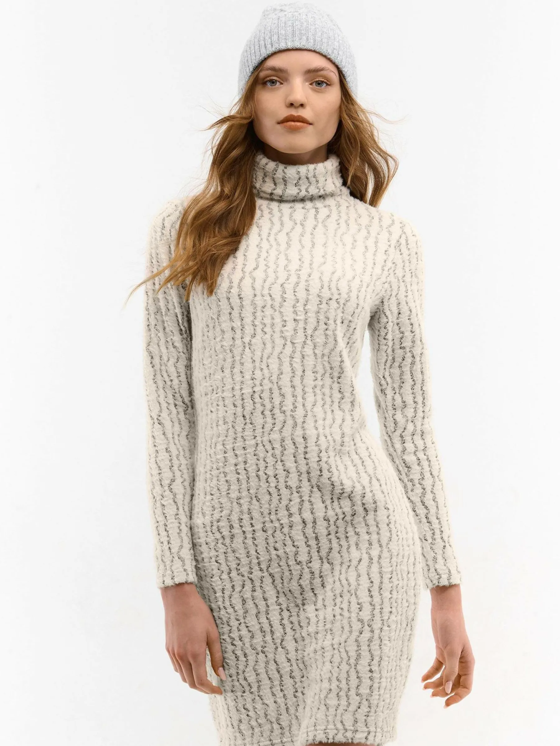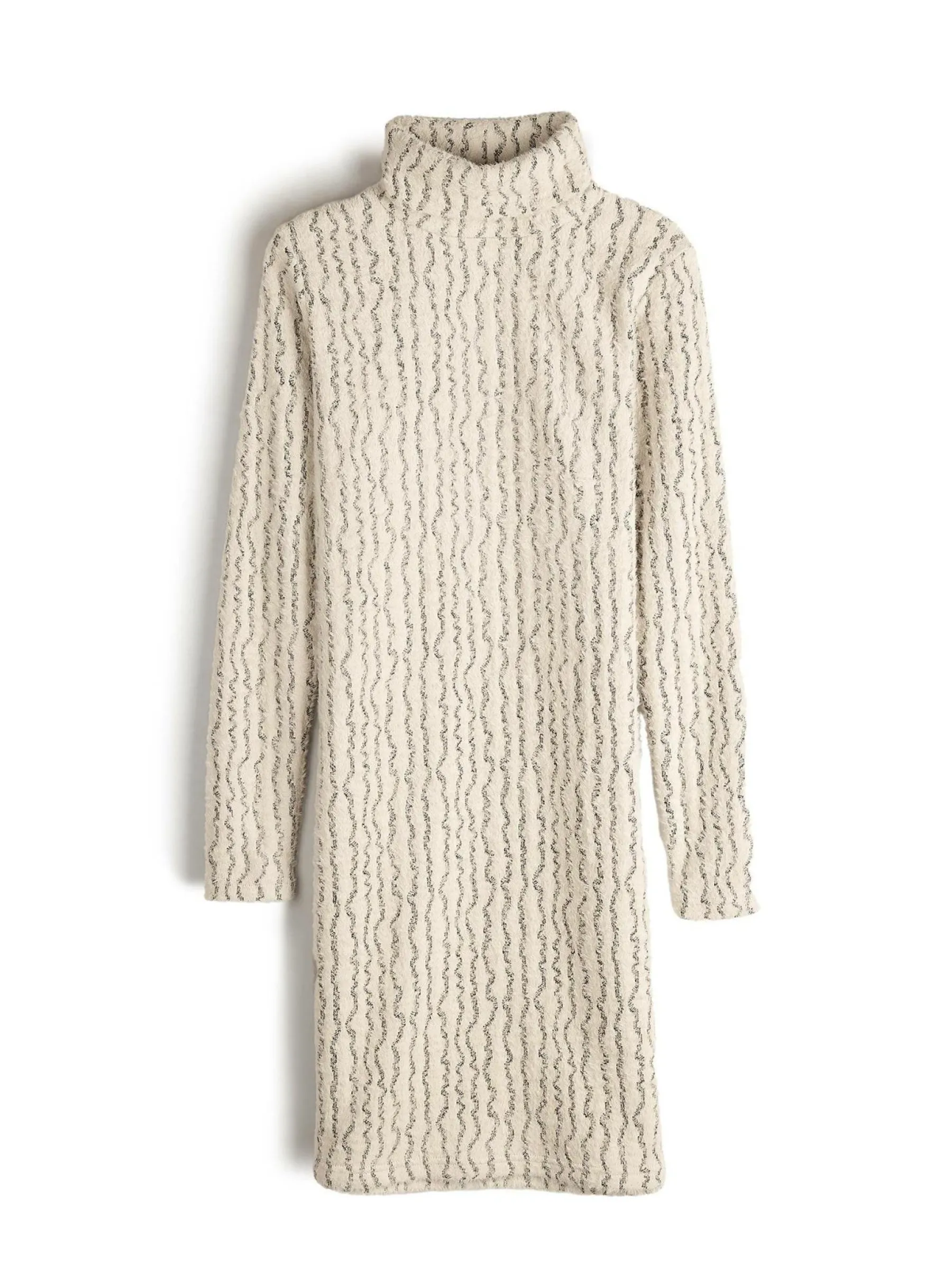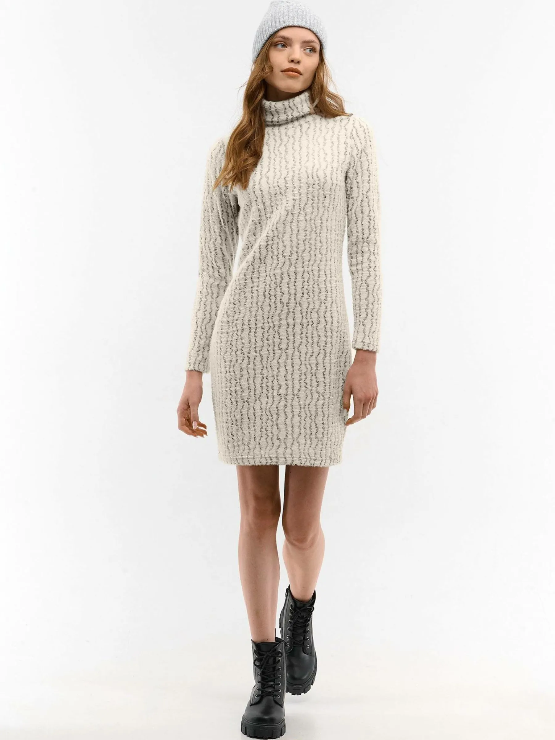 Kolor: beżowyKrój: regularTyp: sukienkaRekaw: długi rękawDługość: miniPattern style: wzorzysteDetal: nad głowąM…