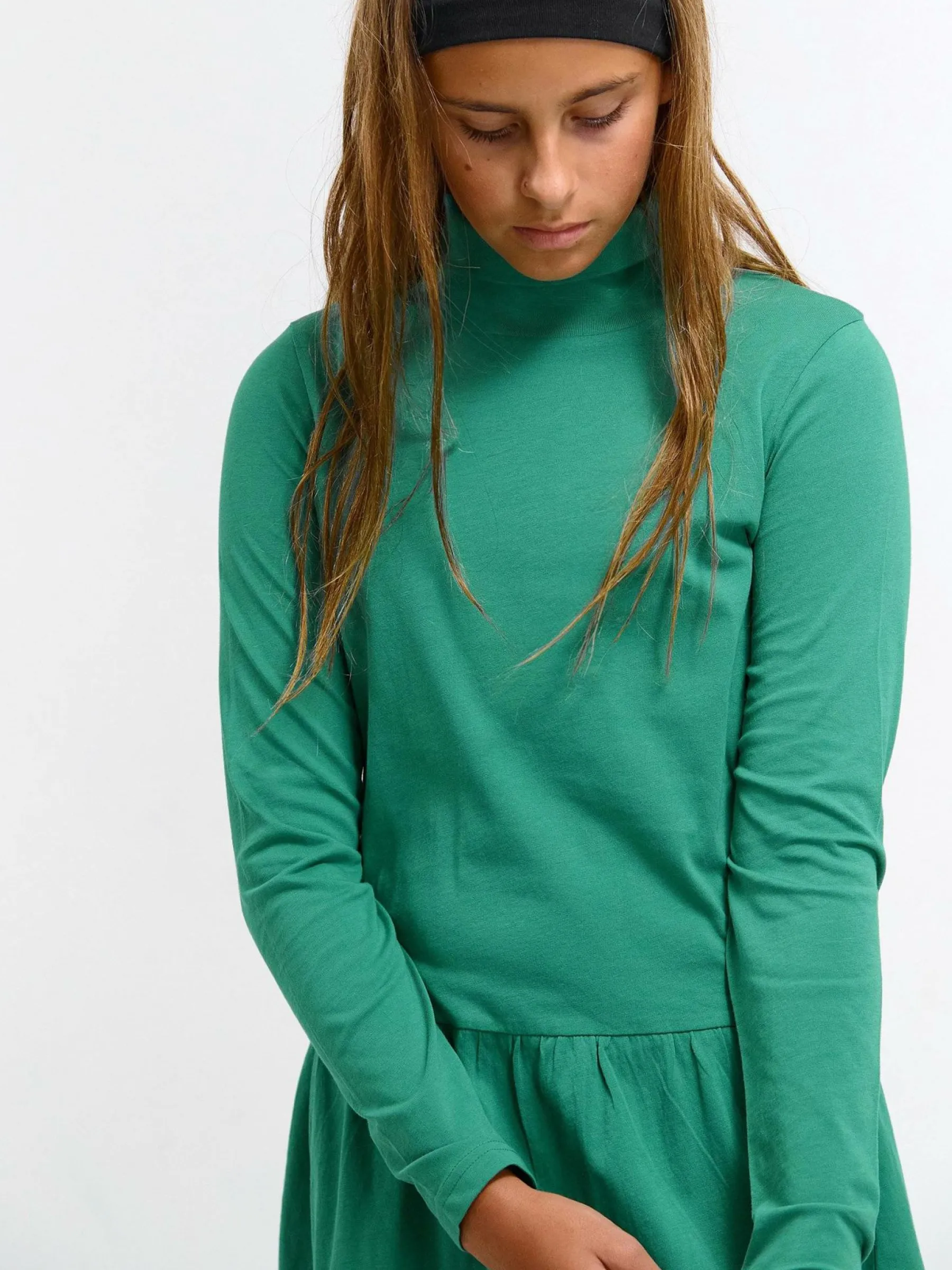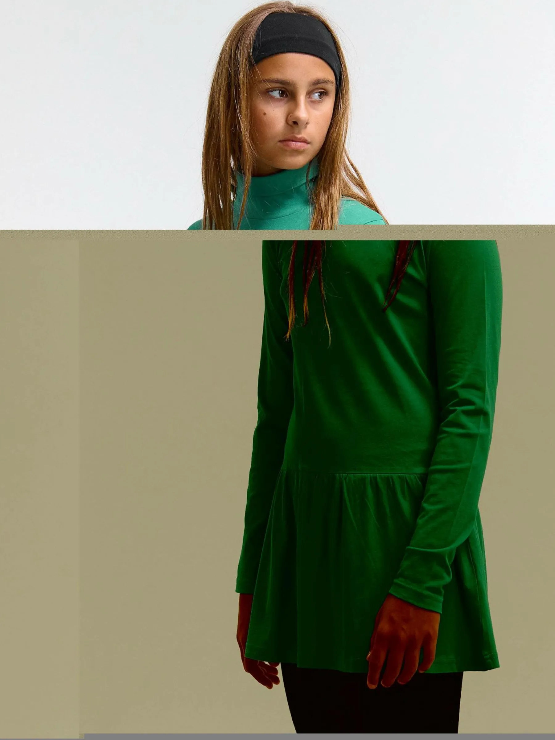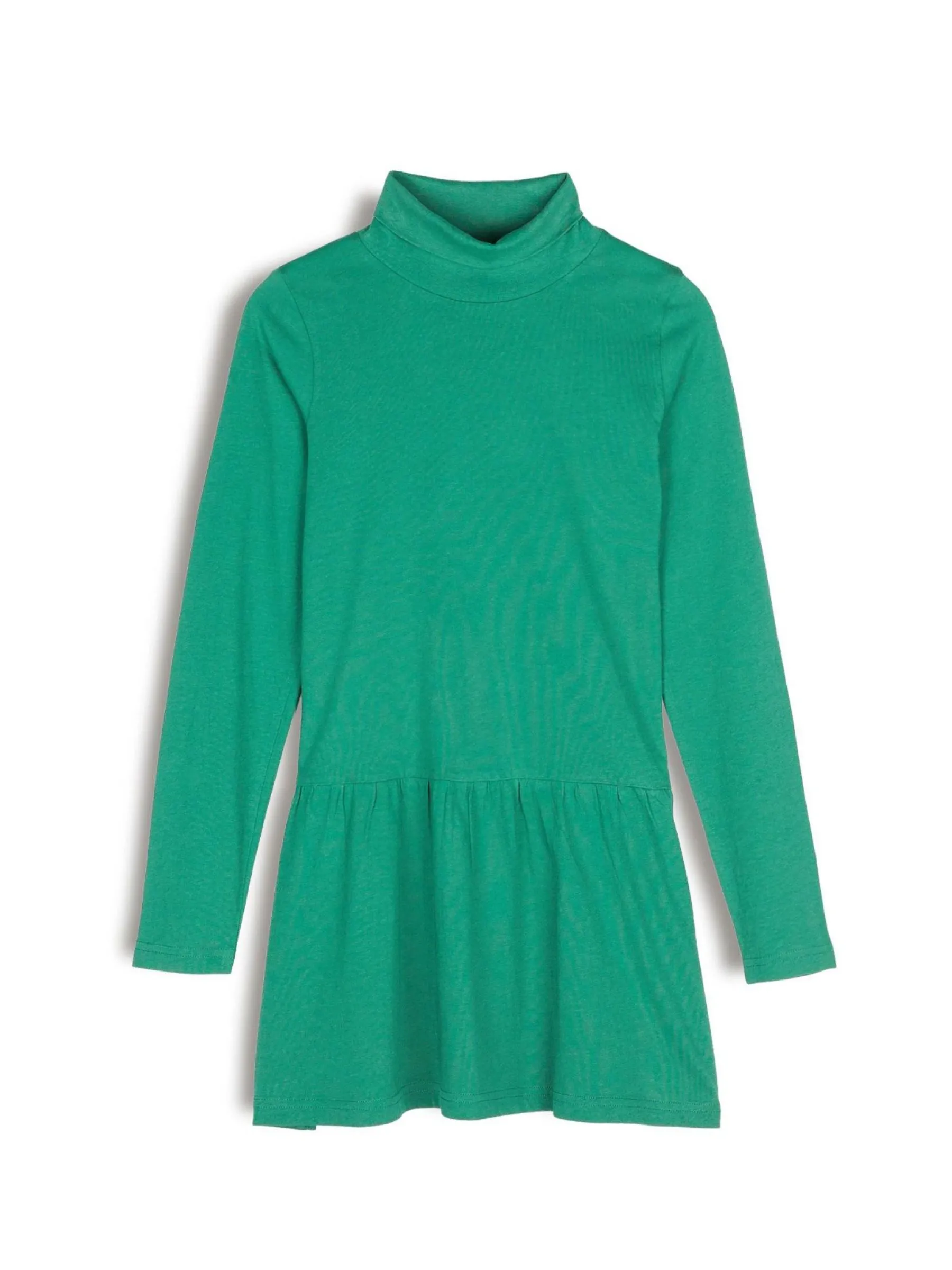 Kolor: zielonyKrój: z falbanąTyp: sukienkaRekaw: długi rękawDługość: miniPattern style: pojedynczy kolorDetal: na…