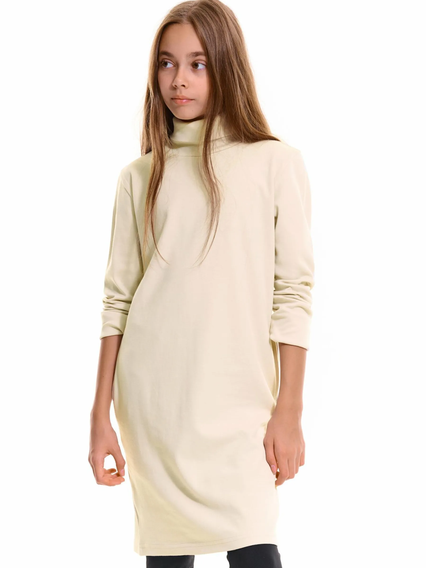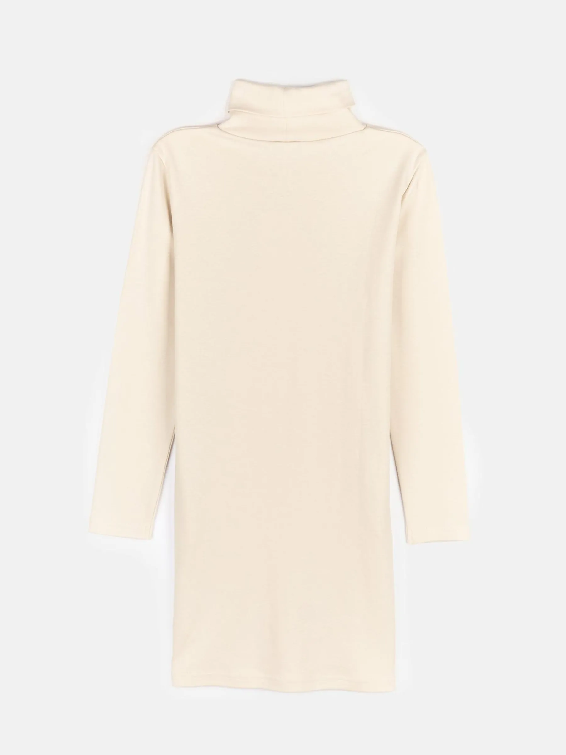 Kolor: beżowyKrój: podstawowyTyp: sukienkaRekaw: długi rękawDługość: miniPattern style: pojedynczy kolorMateriał…