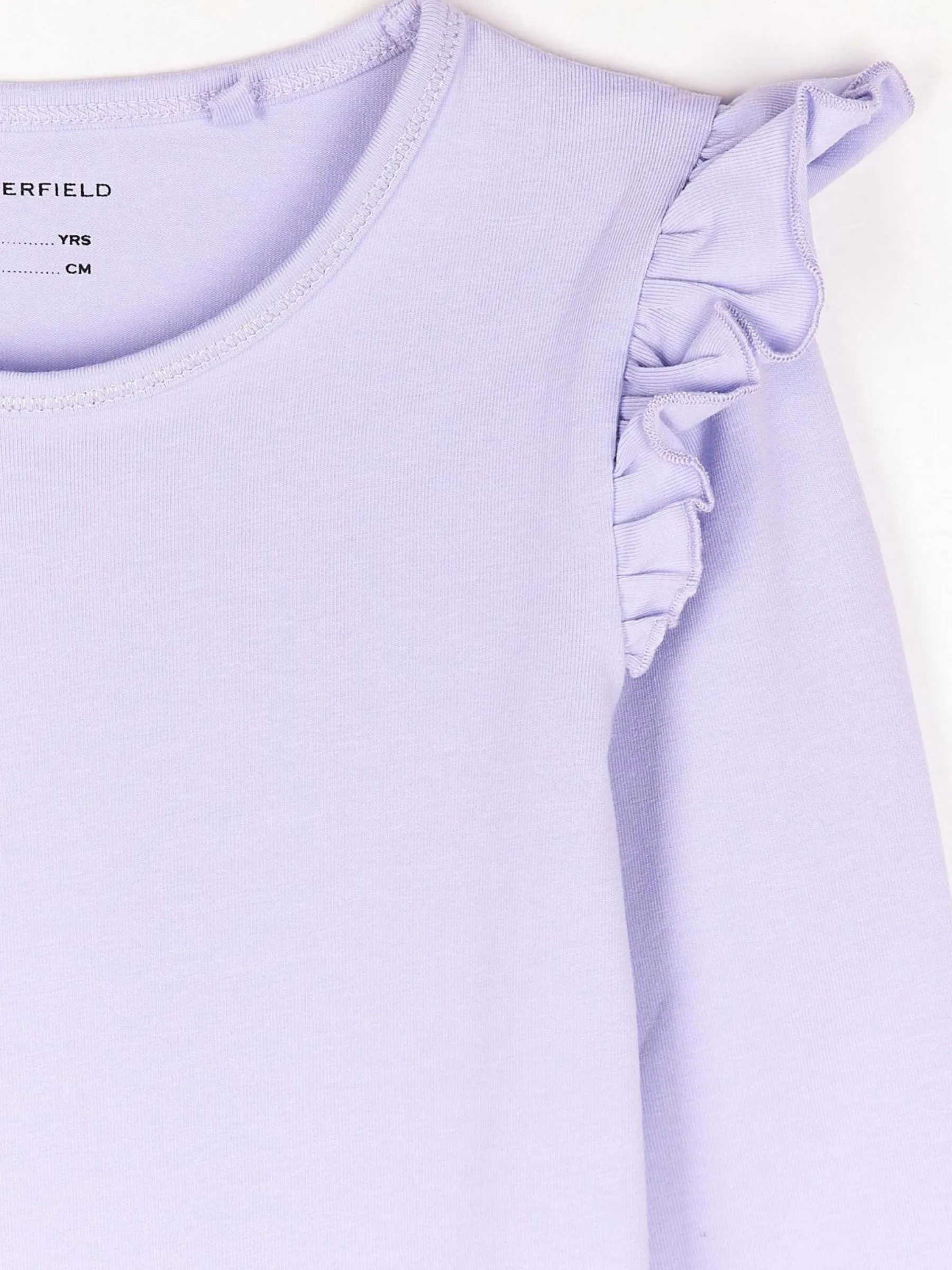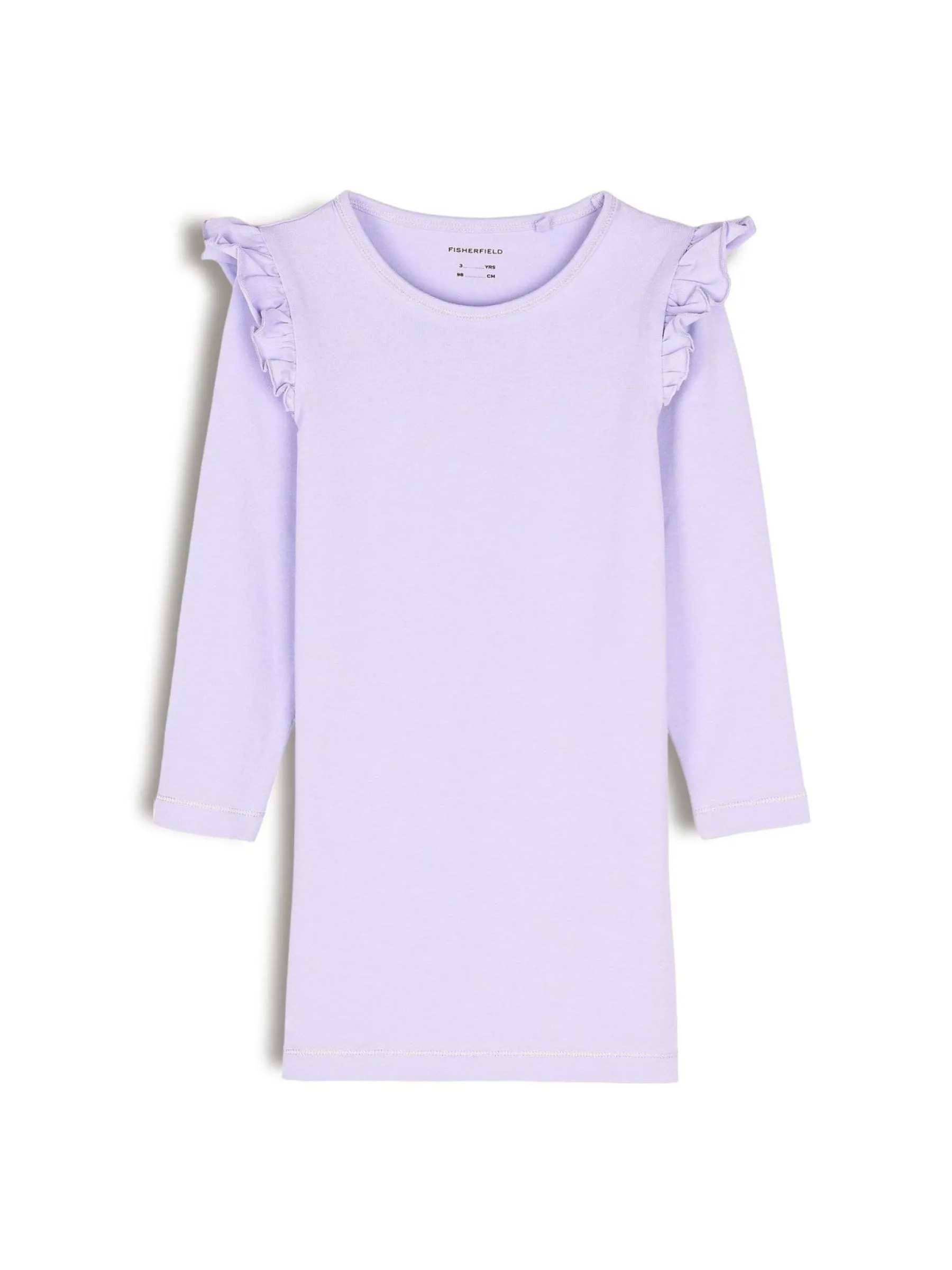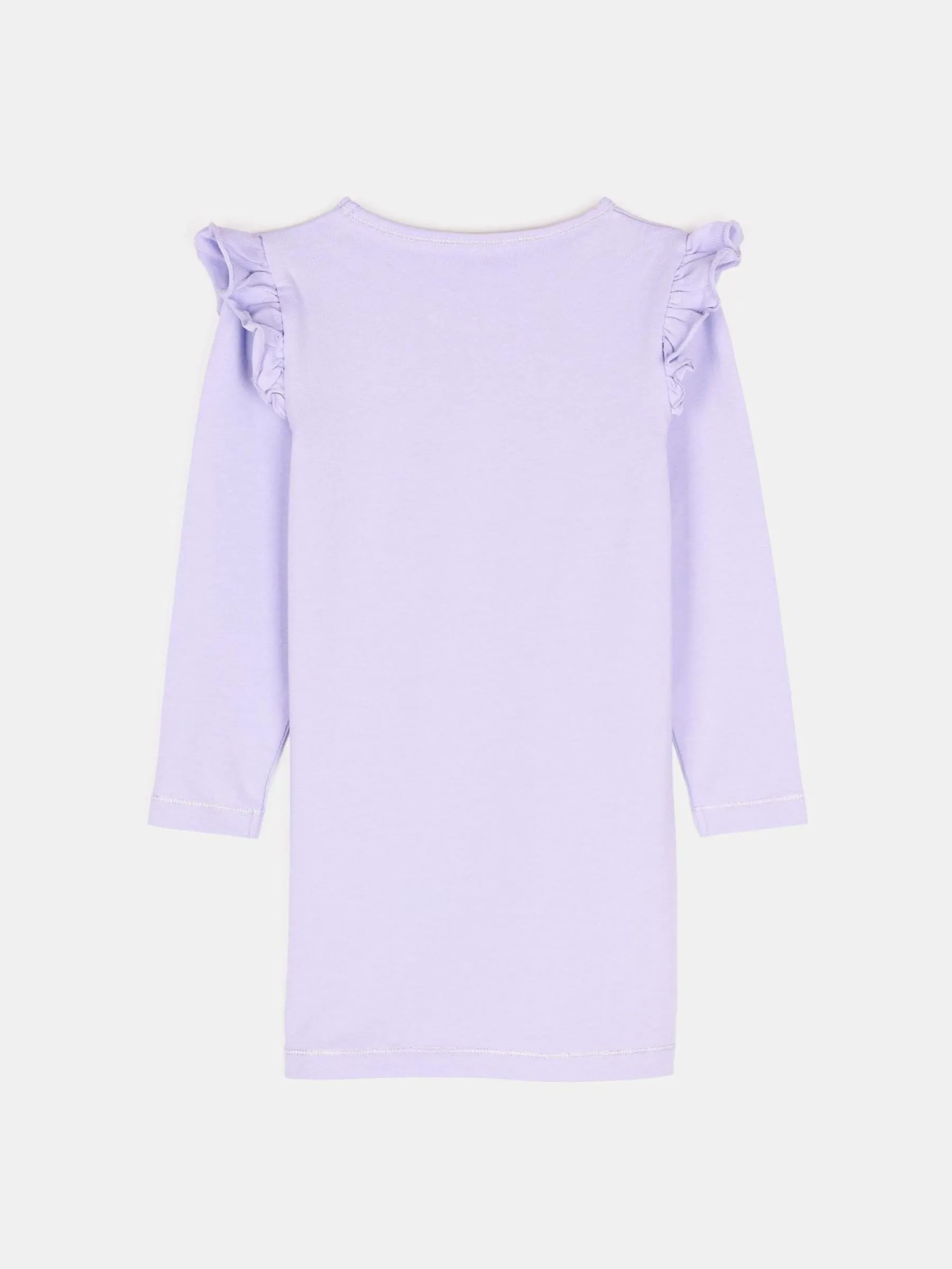 Kolor: purpurowyKrój: z falbanąTyp: sukienkaRekaw: długi rękawDługość: miniPattern style: pojedynczy kolorDetal: …