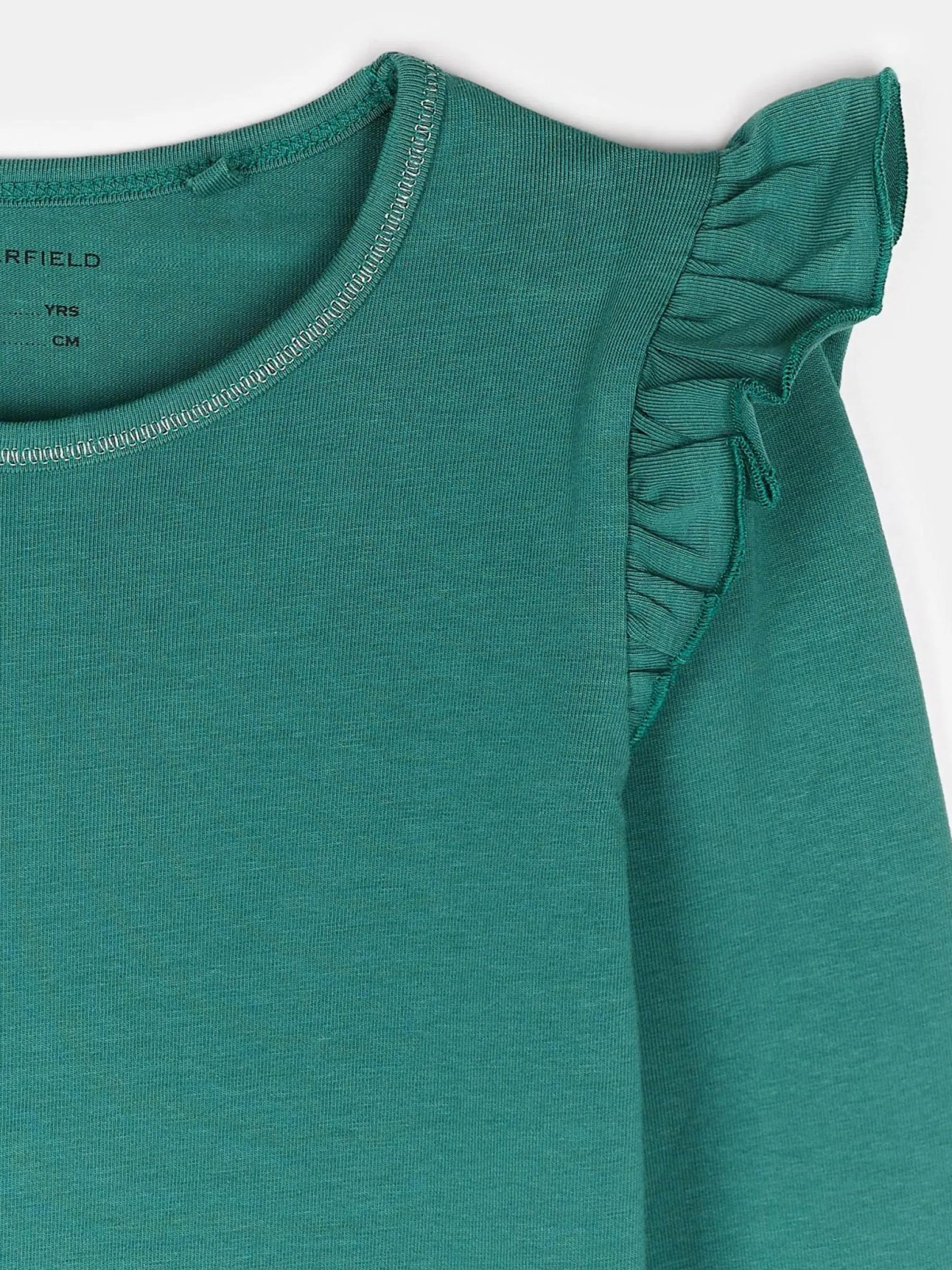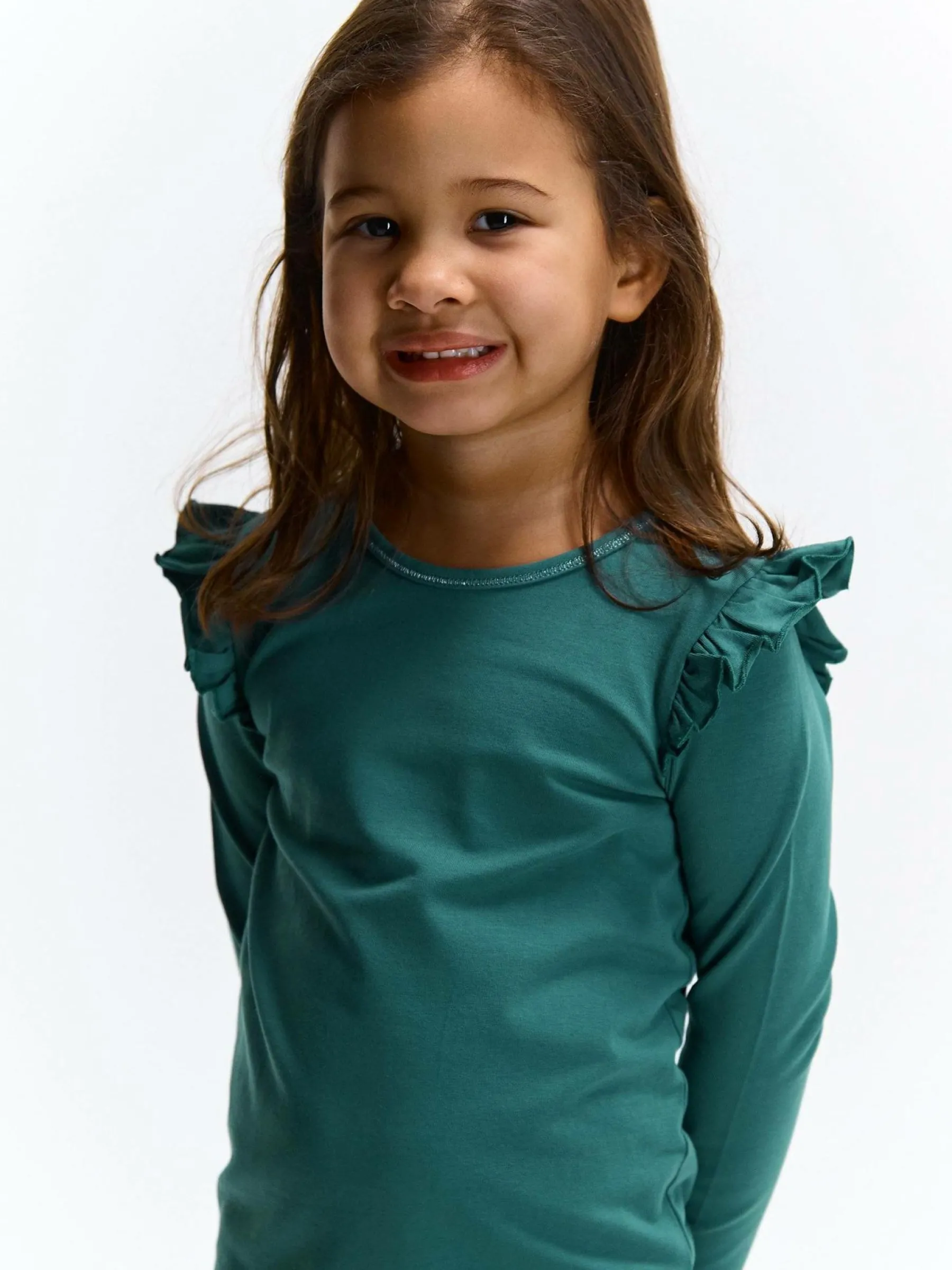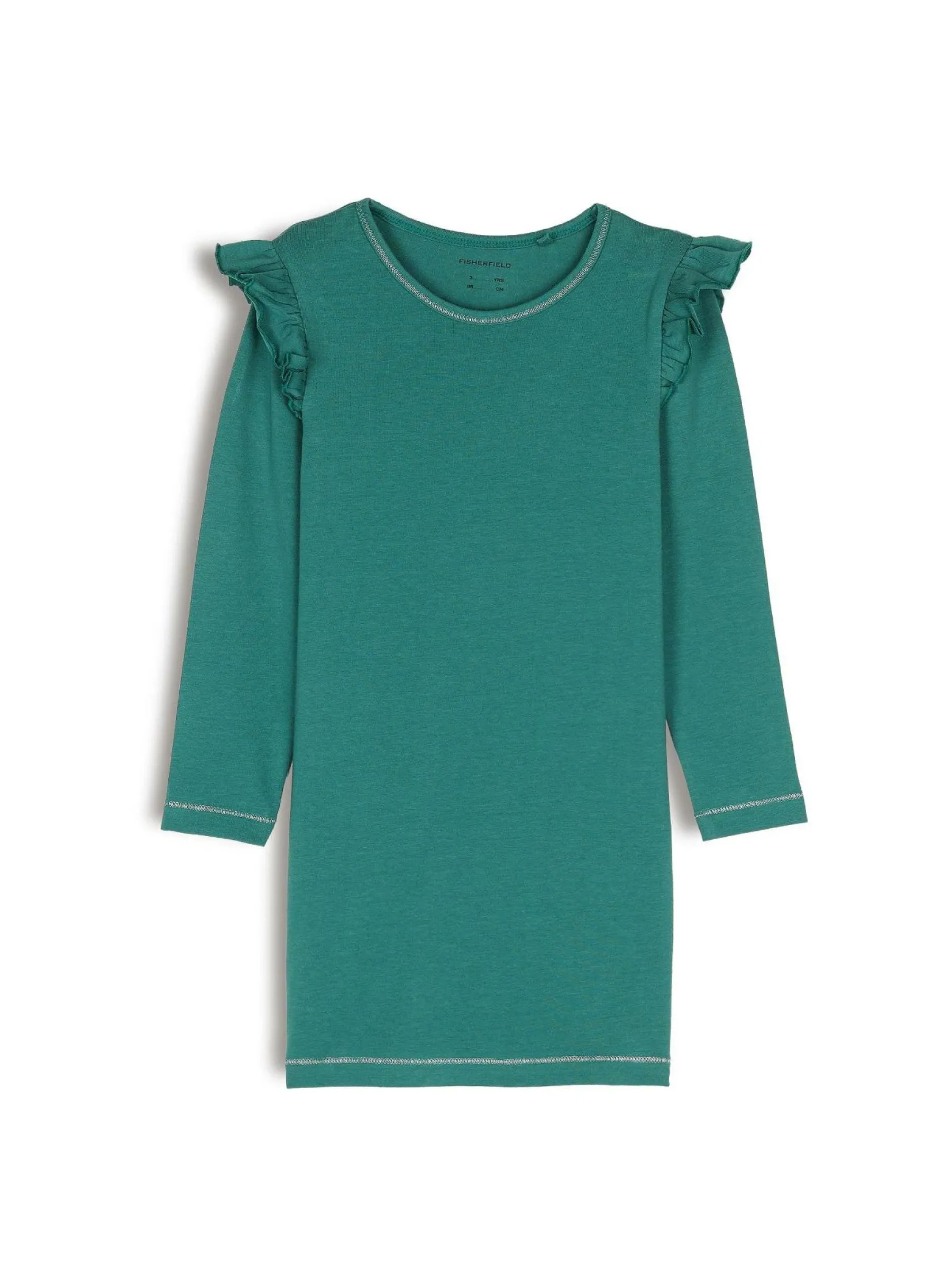 Kolor: zielonyKrój: z falbanąTyp: sukienkaRekaw: długi rękawDługość: miniPattern style: pojedynczy kolorDetal: na…