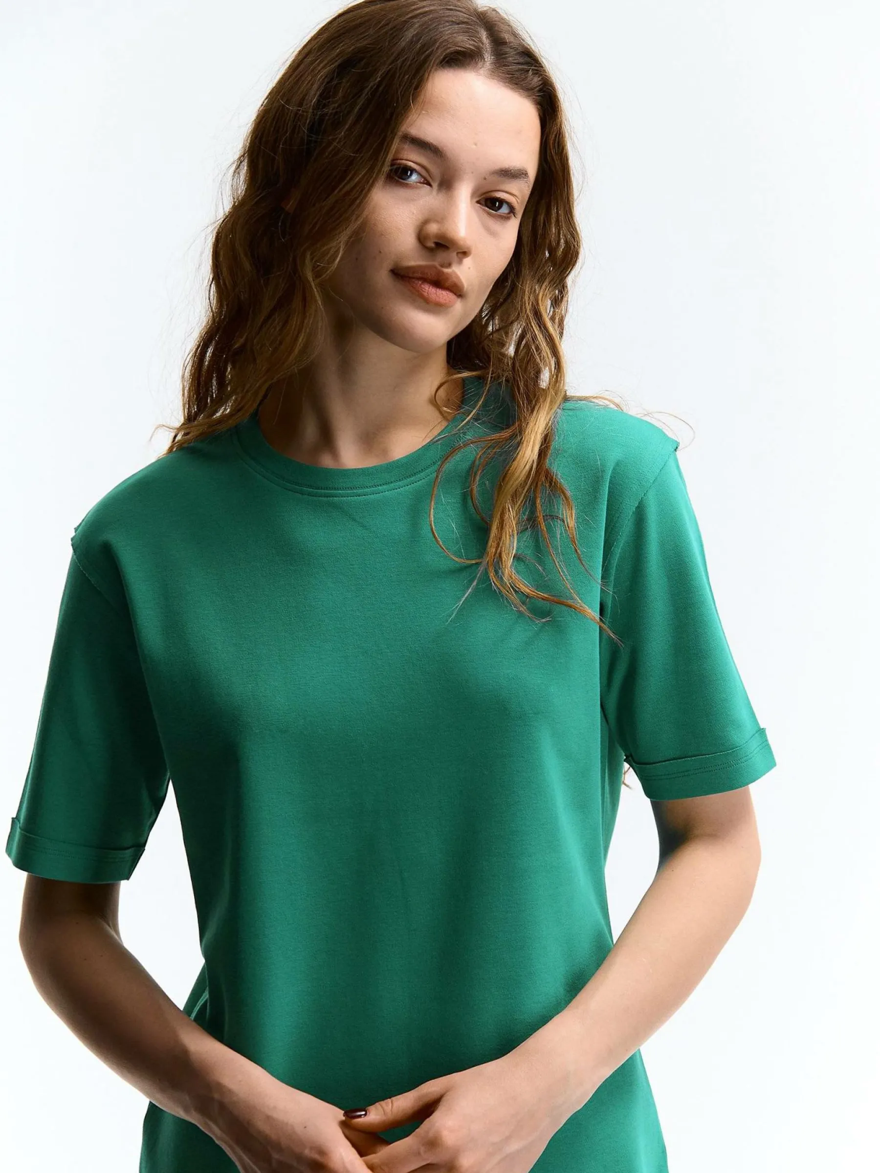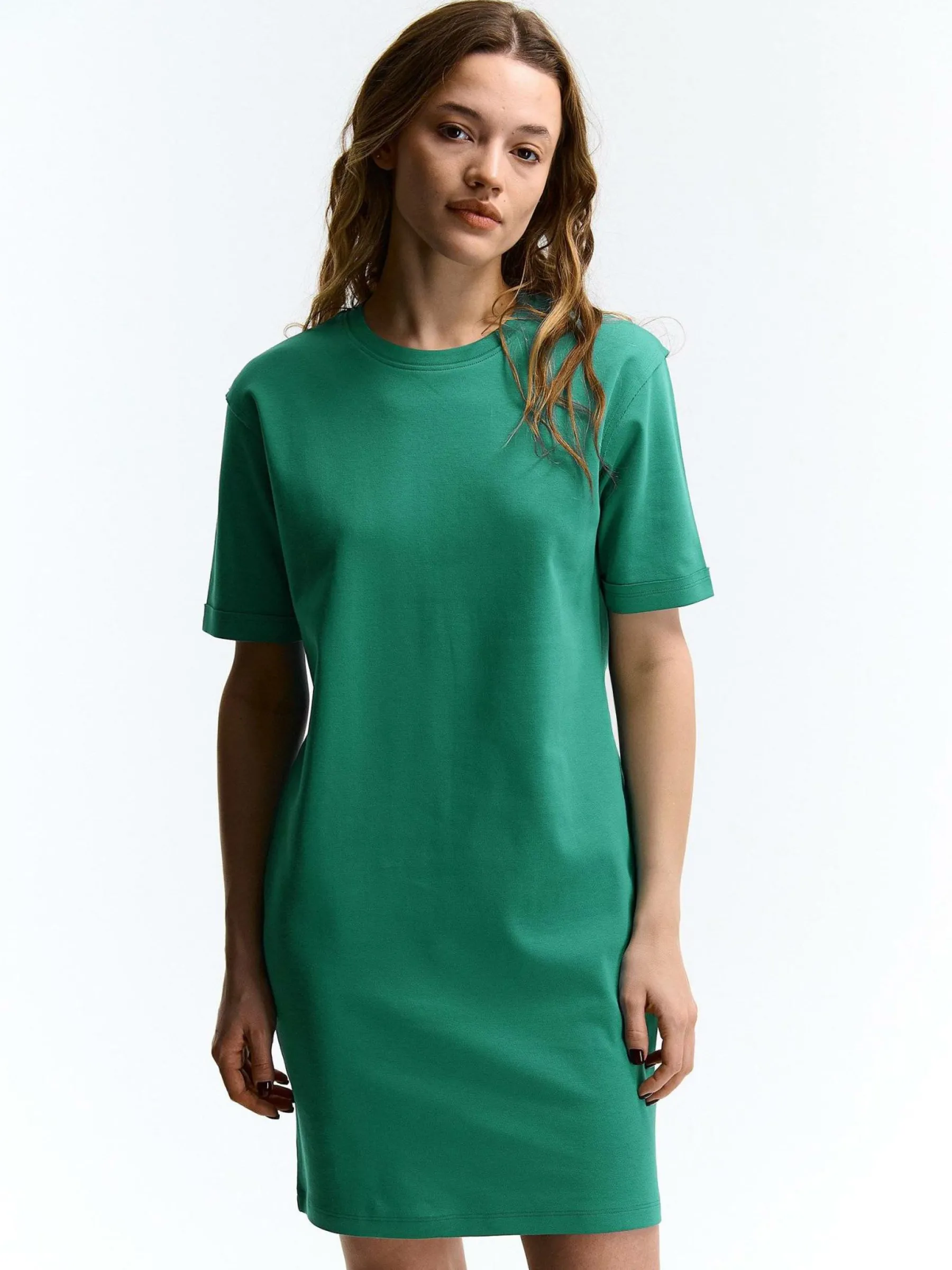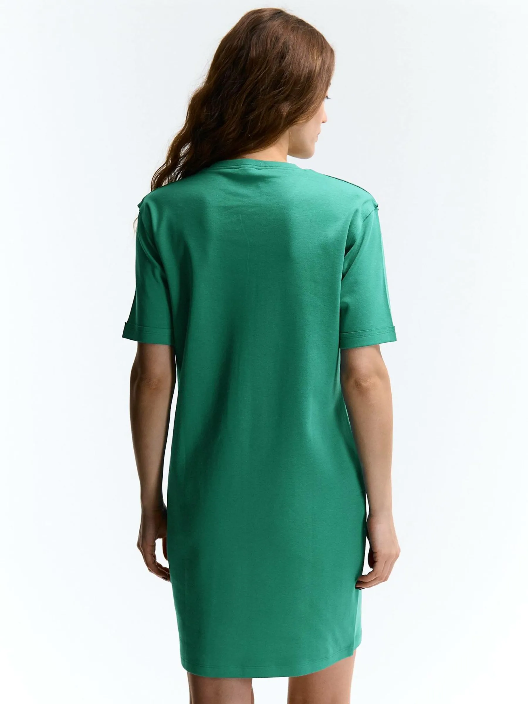 Kolor: zielonyKrój: regularTyp: sukienkaRekaw: krótki rękawDługość: miniPattern style: pojedynczy kolorDetal: nad …
