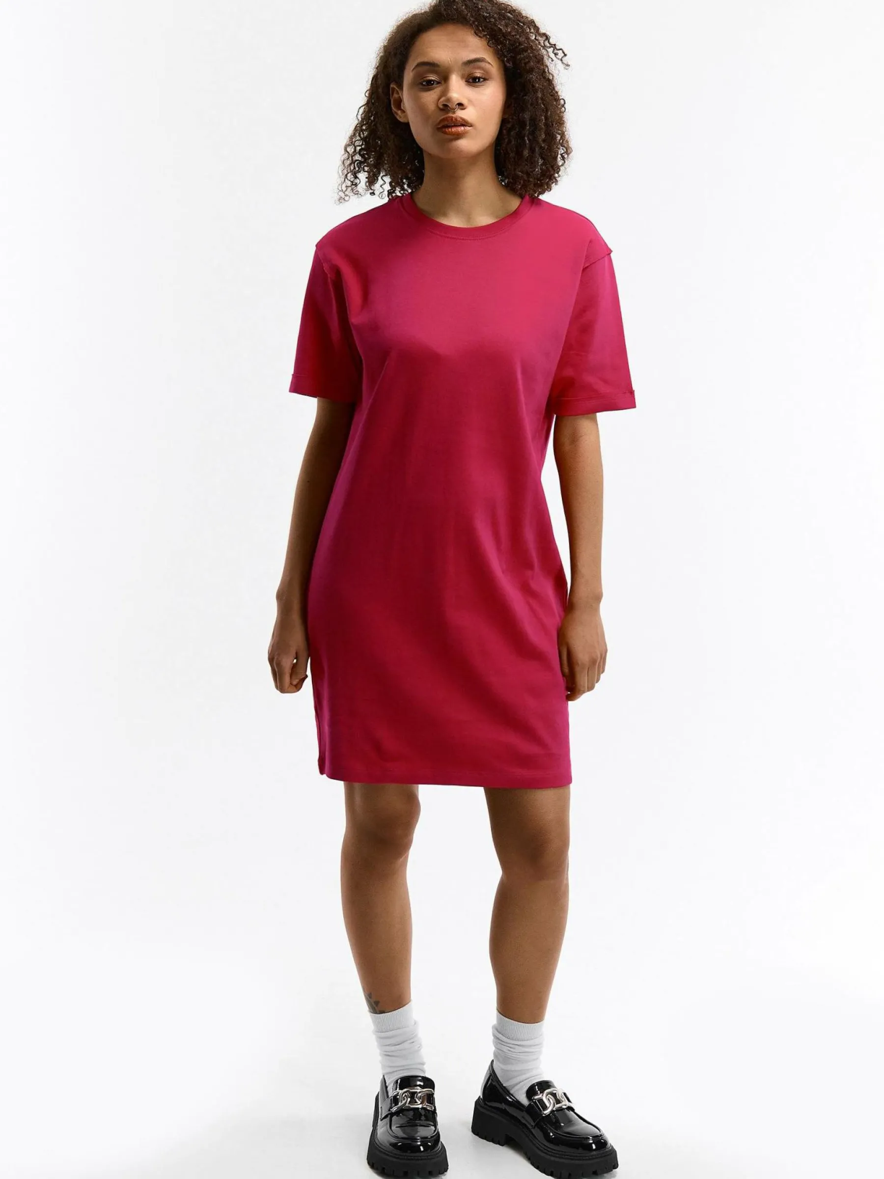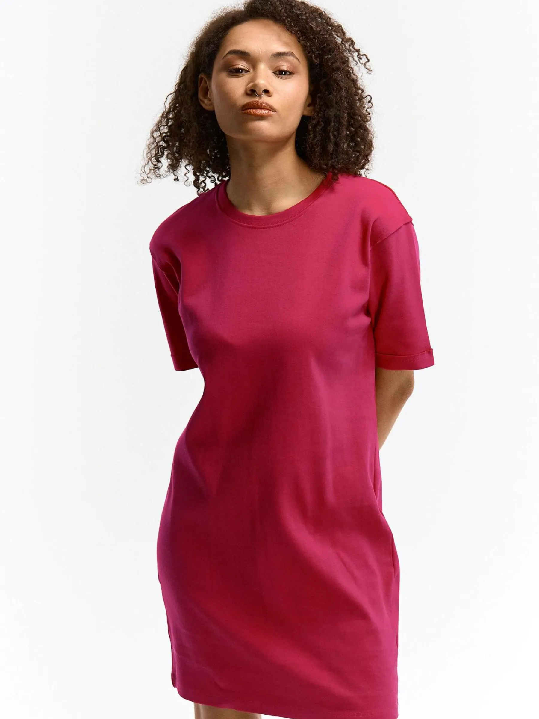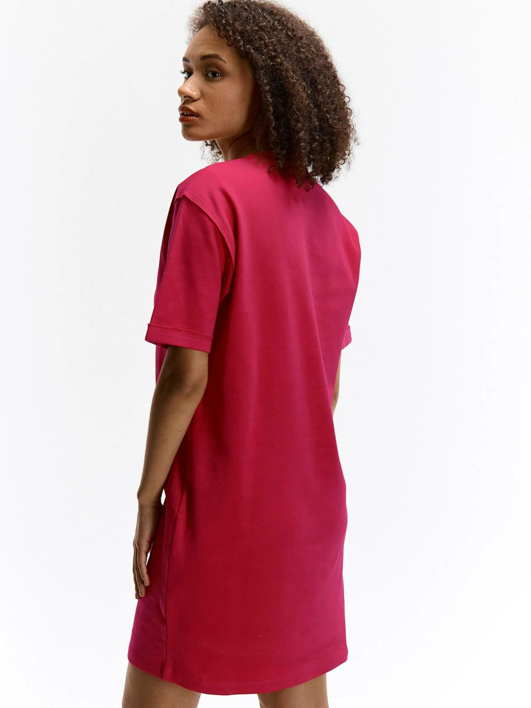 Kolor: czerwonyKrój: regularTyp: sukienkaRekaw: krótki rękawDługość: miniPattern style: pojedynczy kolorDetal: nad…