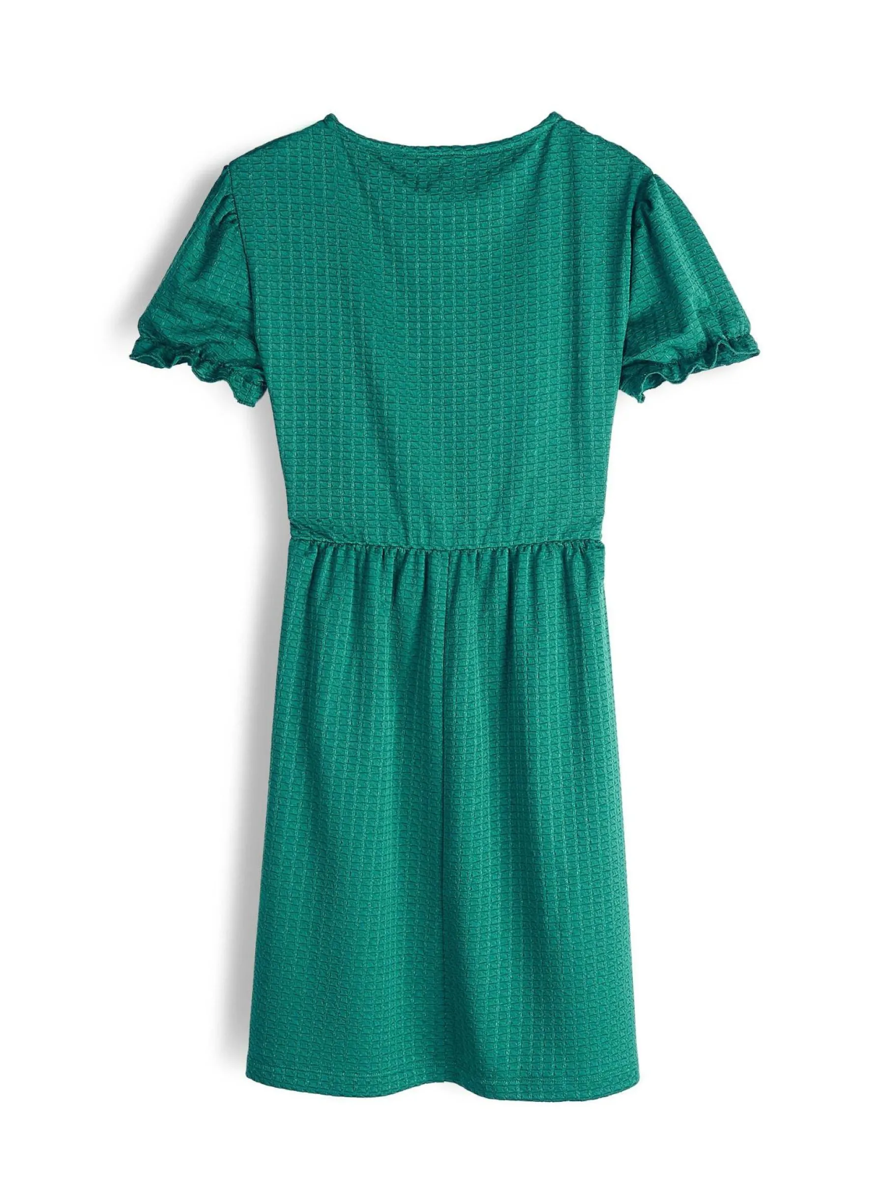 Kolor: zielonyKrój: asyTyp: sukienkaRekaw: krótki rękawDługość: miniPattern style: pojedynczy kolor, strukturowane…