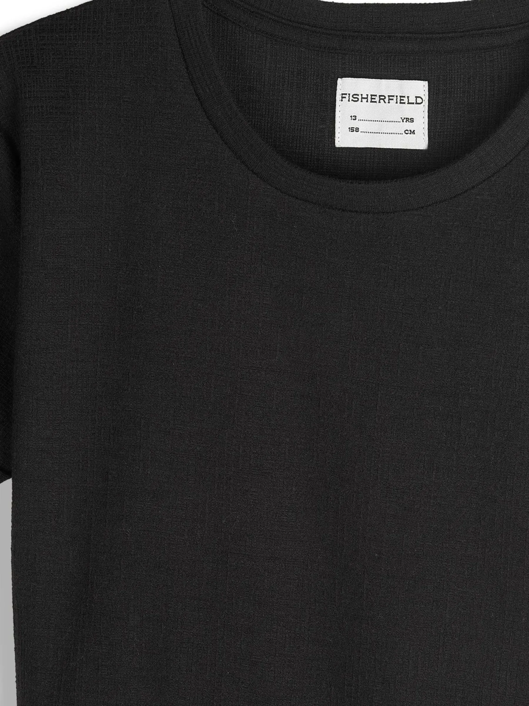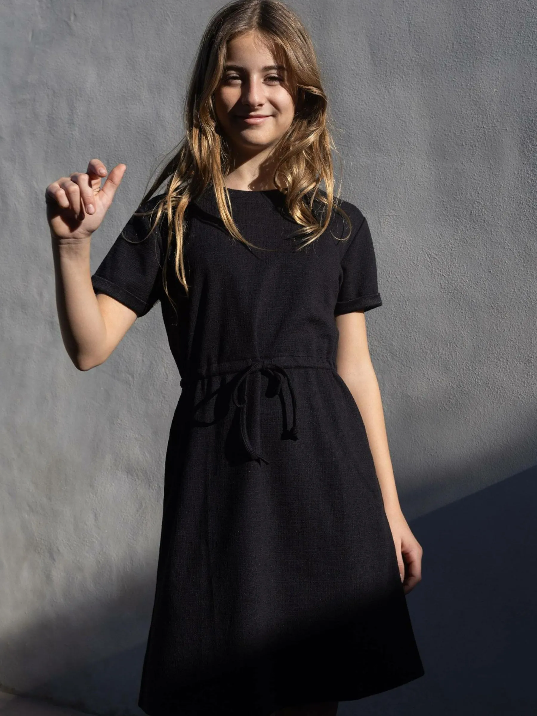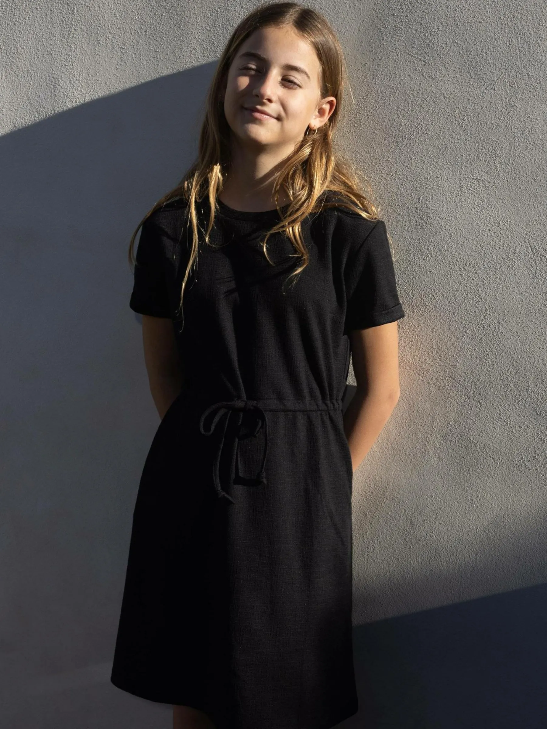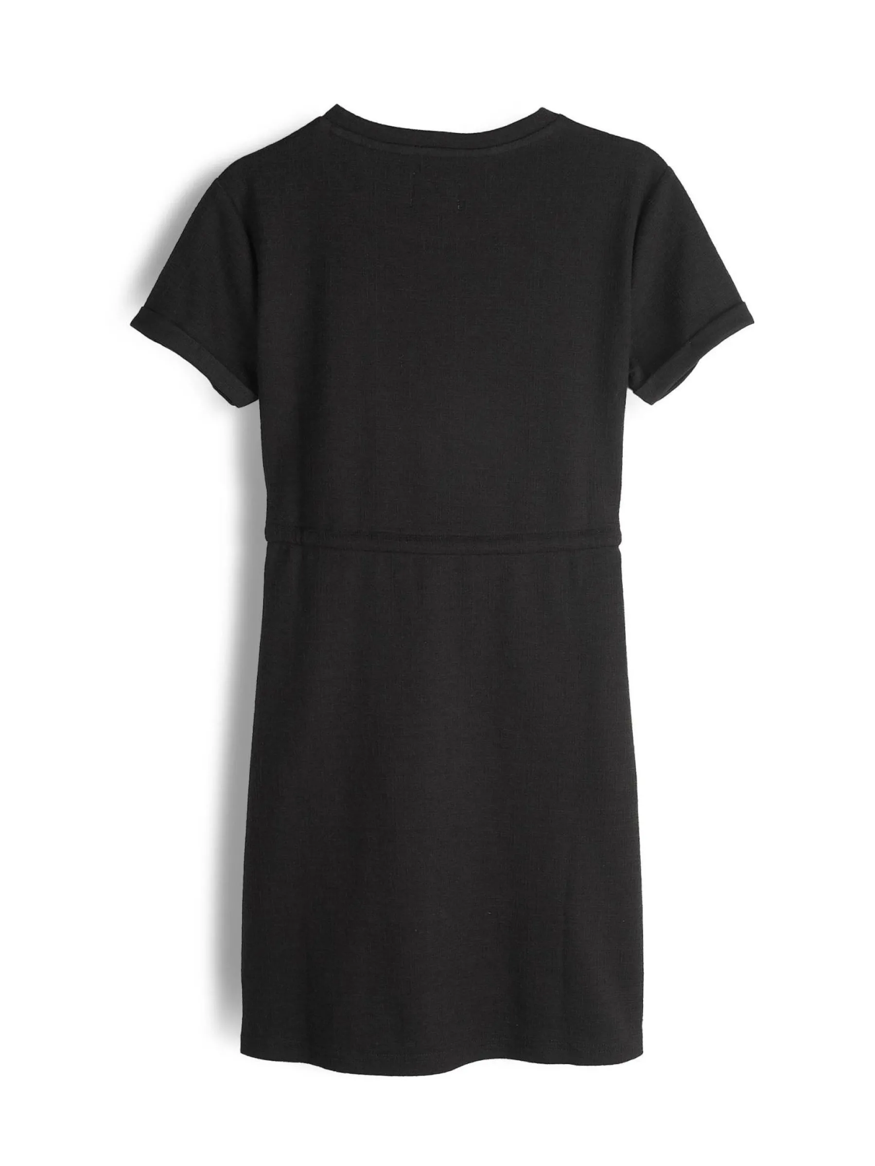 Kolor: czarnyKrój: regularTyp: sukienkaRekaw: krótki rękawDługość: miniPattern style: pojedynczy kolorDetal: nad g…