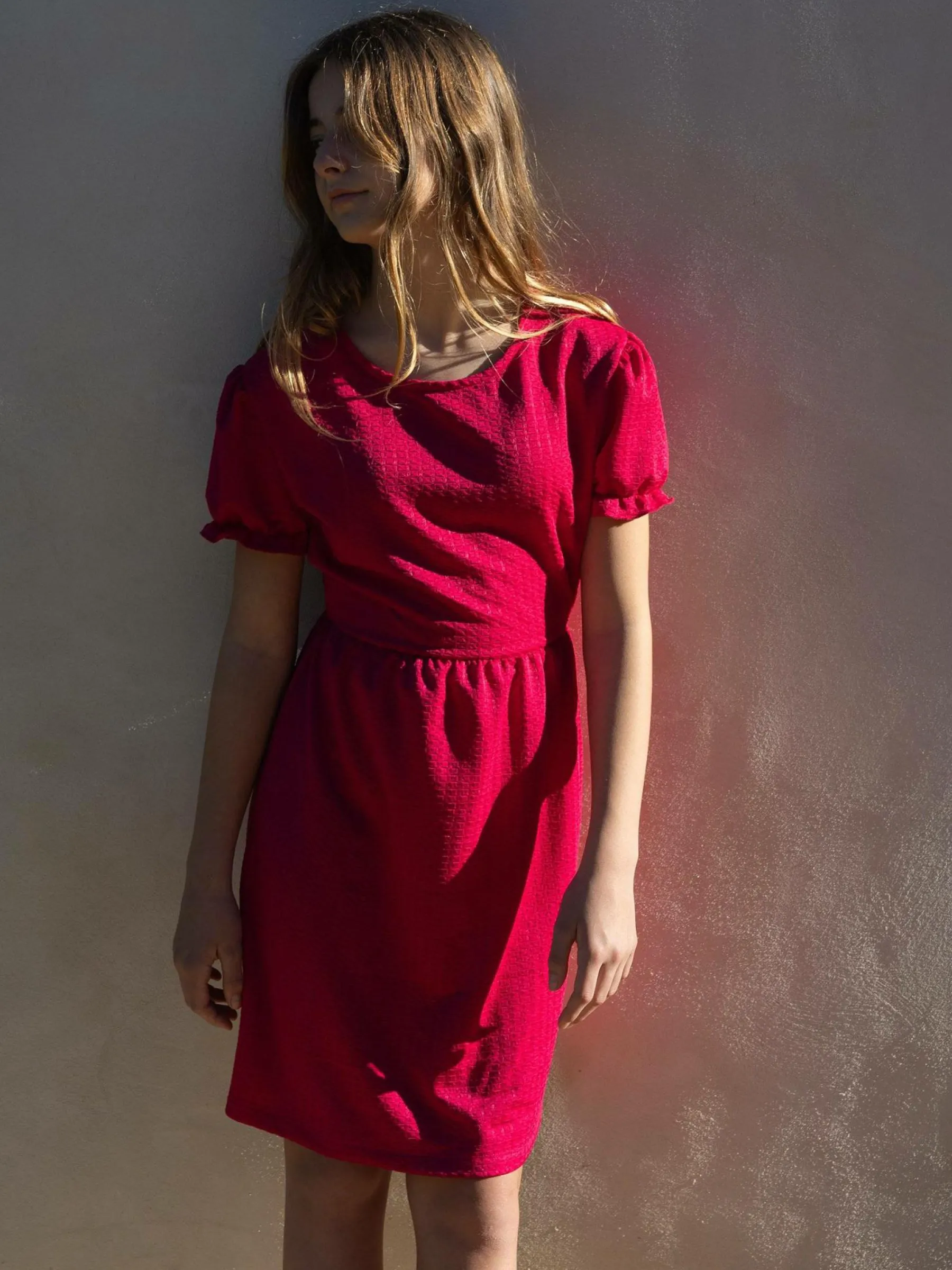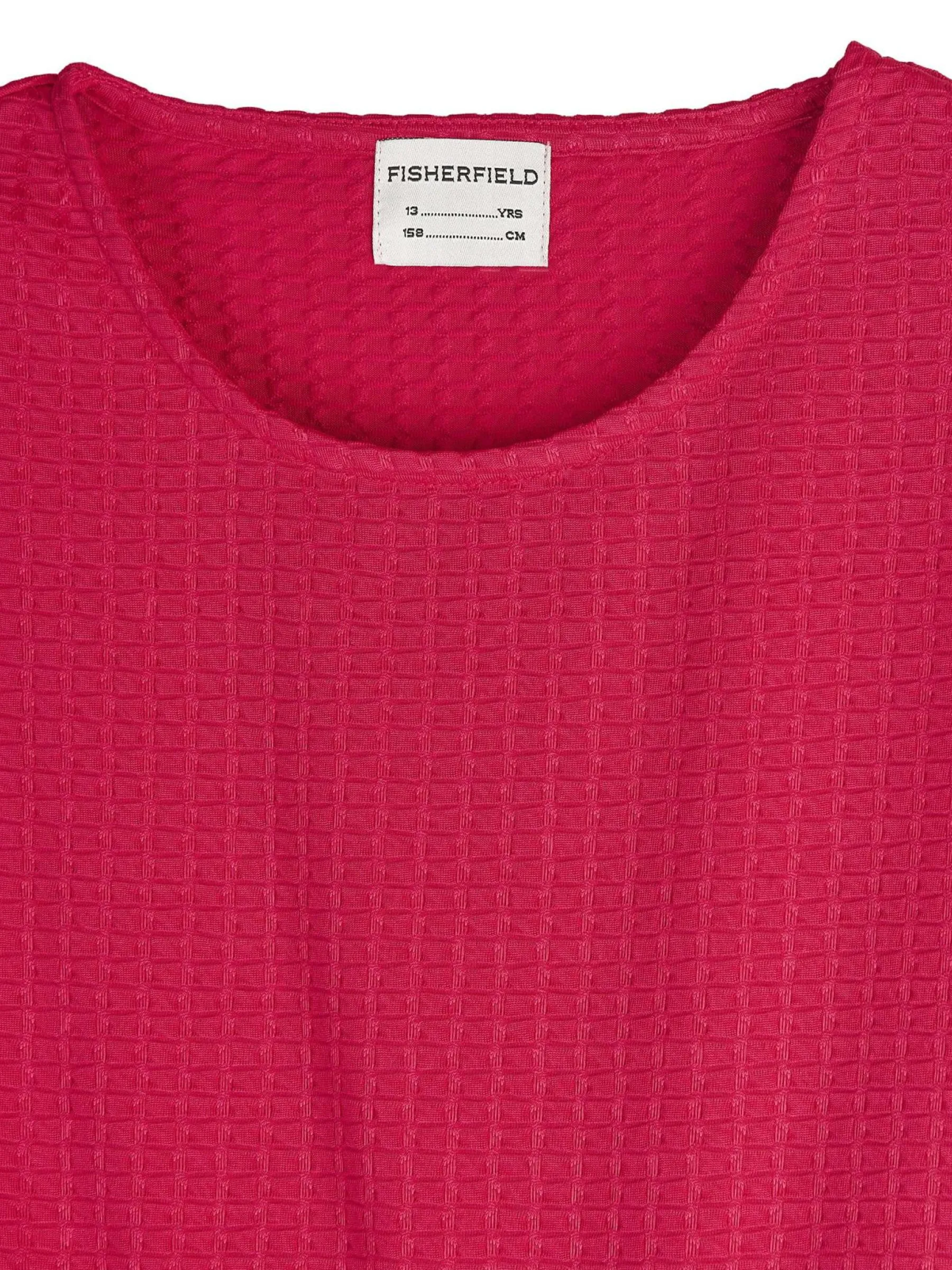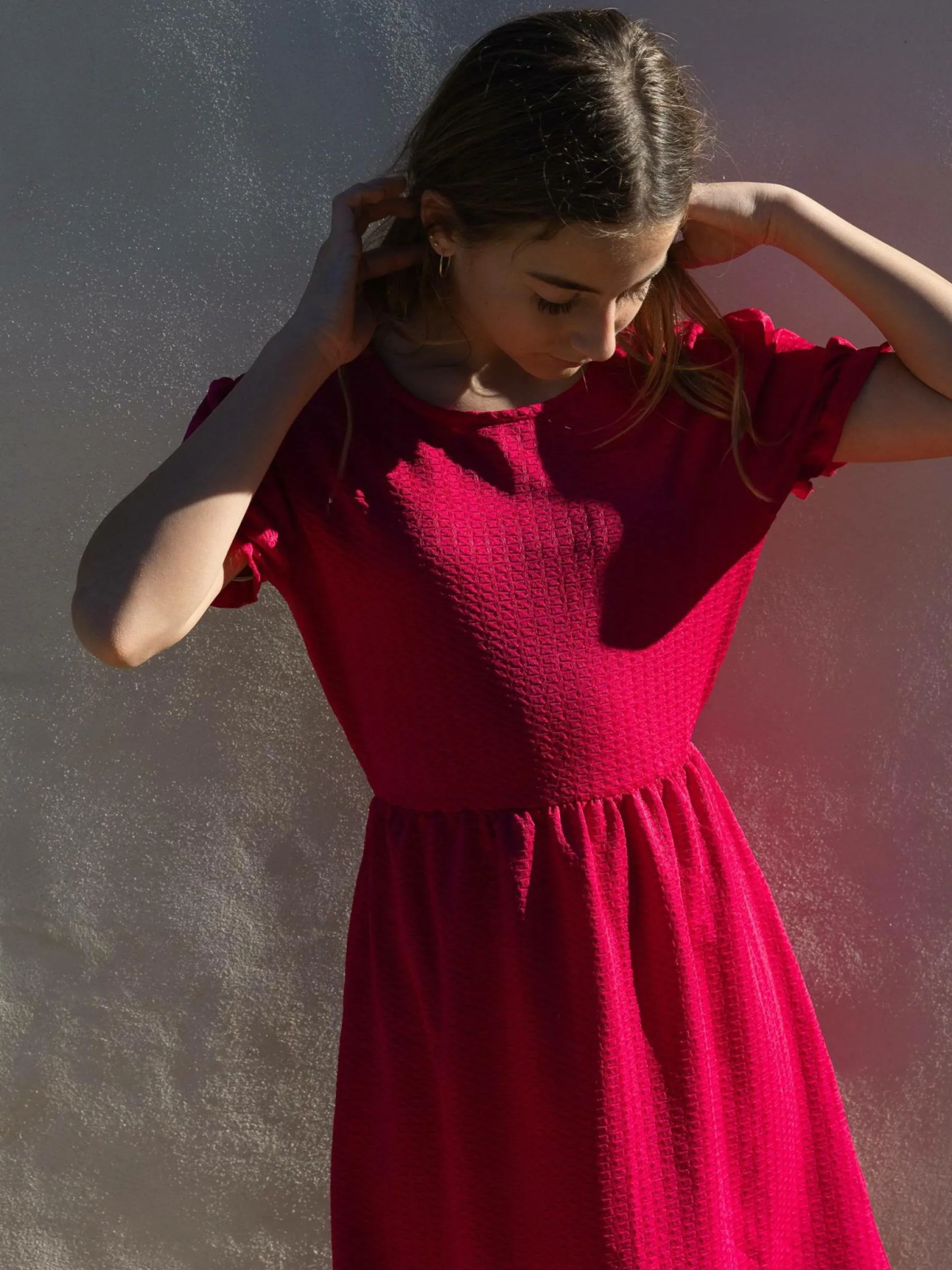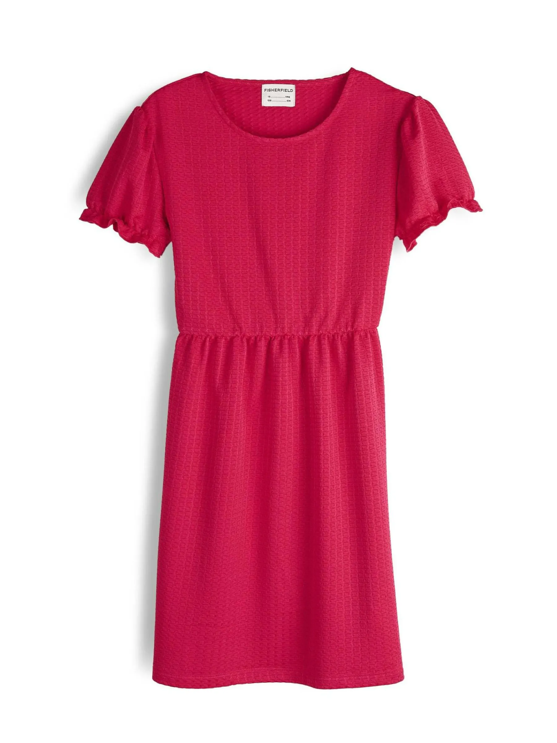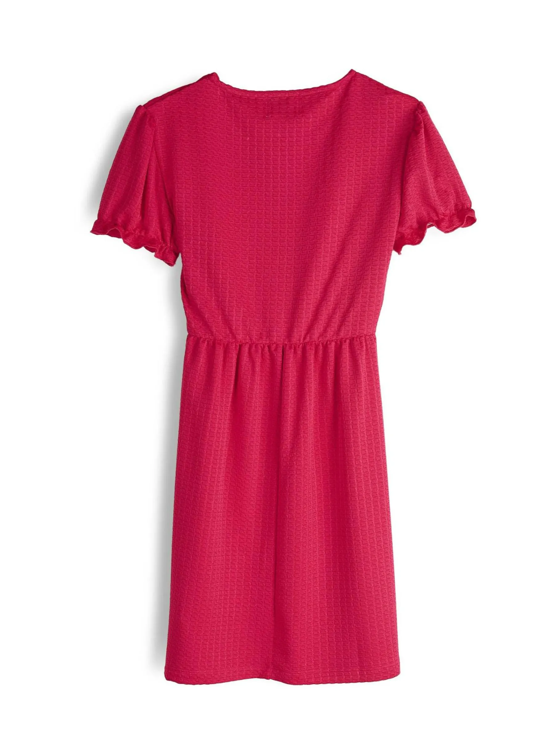 Kolor: różowyKrój: asyTyp: sukienkaRekaw: krótki rękawDługość: miniPattern style: pojedynczy kolor, strukturowan…