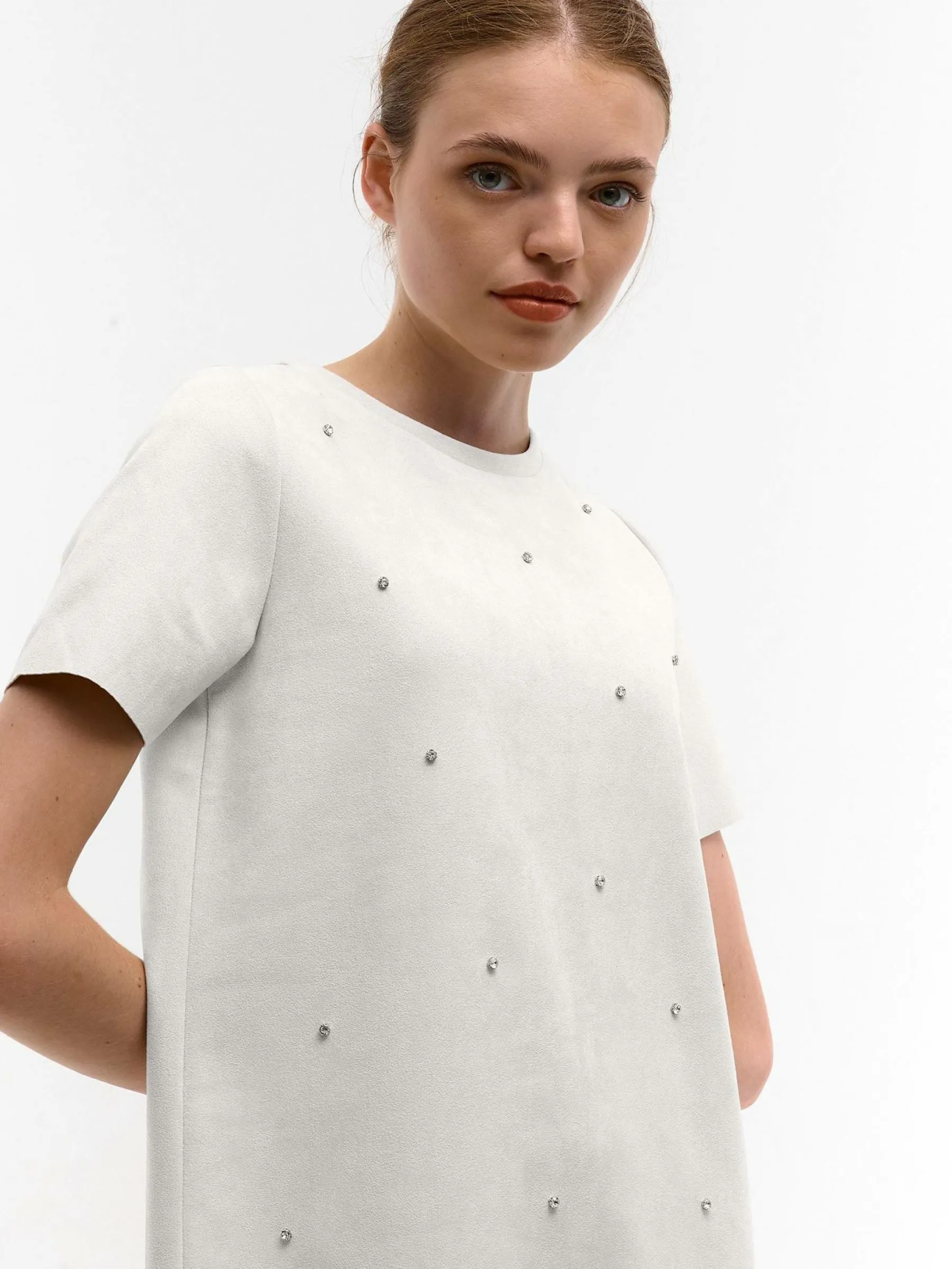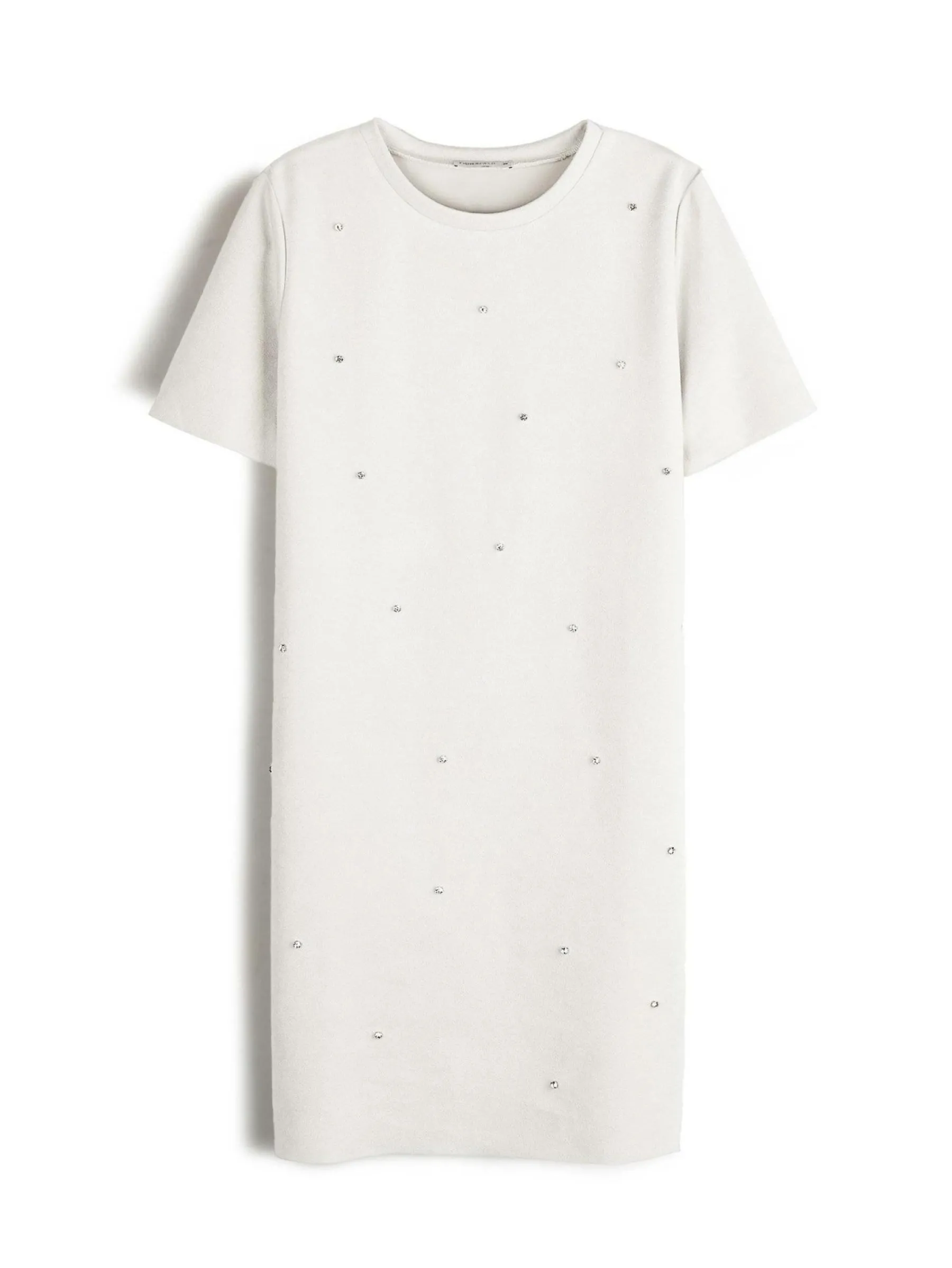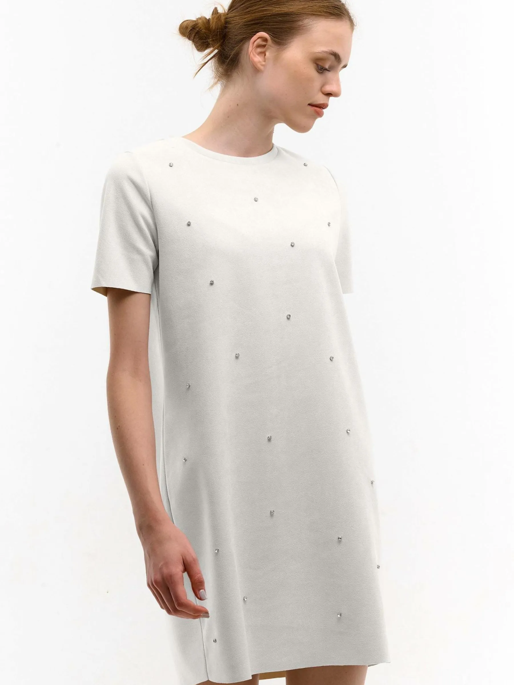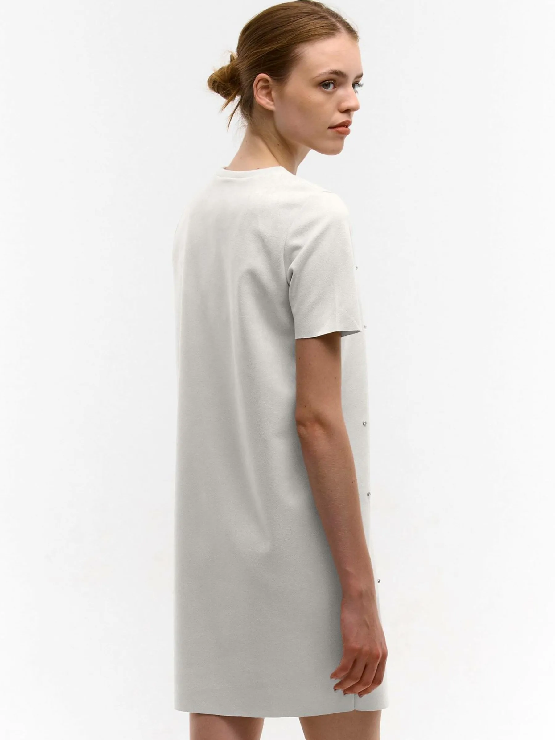 Kolor: beżowyKrój: regularTyp: sukienkaRekaw: krótki rękawDługość: miniPattern style: pojedynczy kolorDetal: z ka…