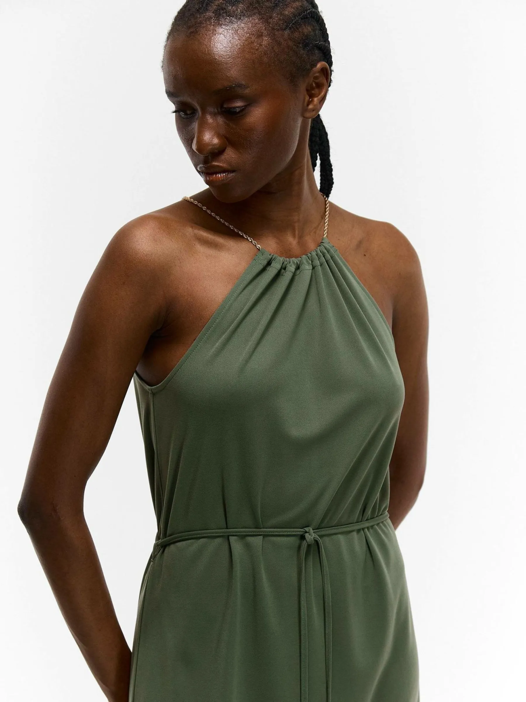 Zdjęcia z modelką mogą nie odpowiadać rzeczywistemu kolorowi produktu.Kolor: khakiKrój: regularTyp: sukienkaRekaw: …