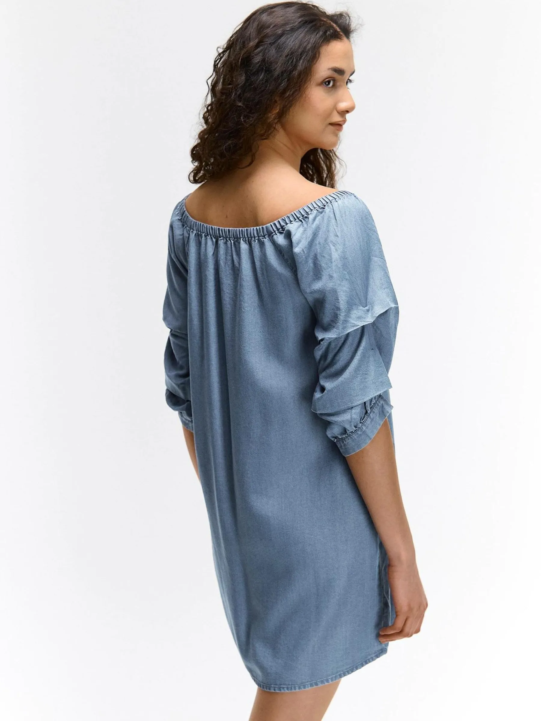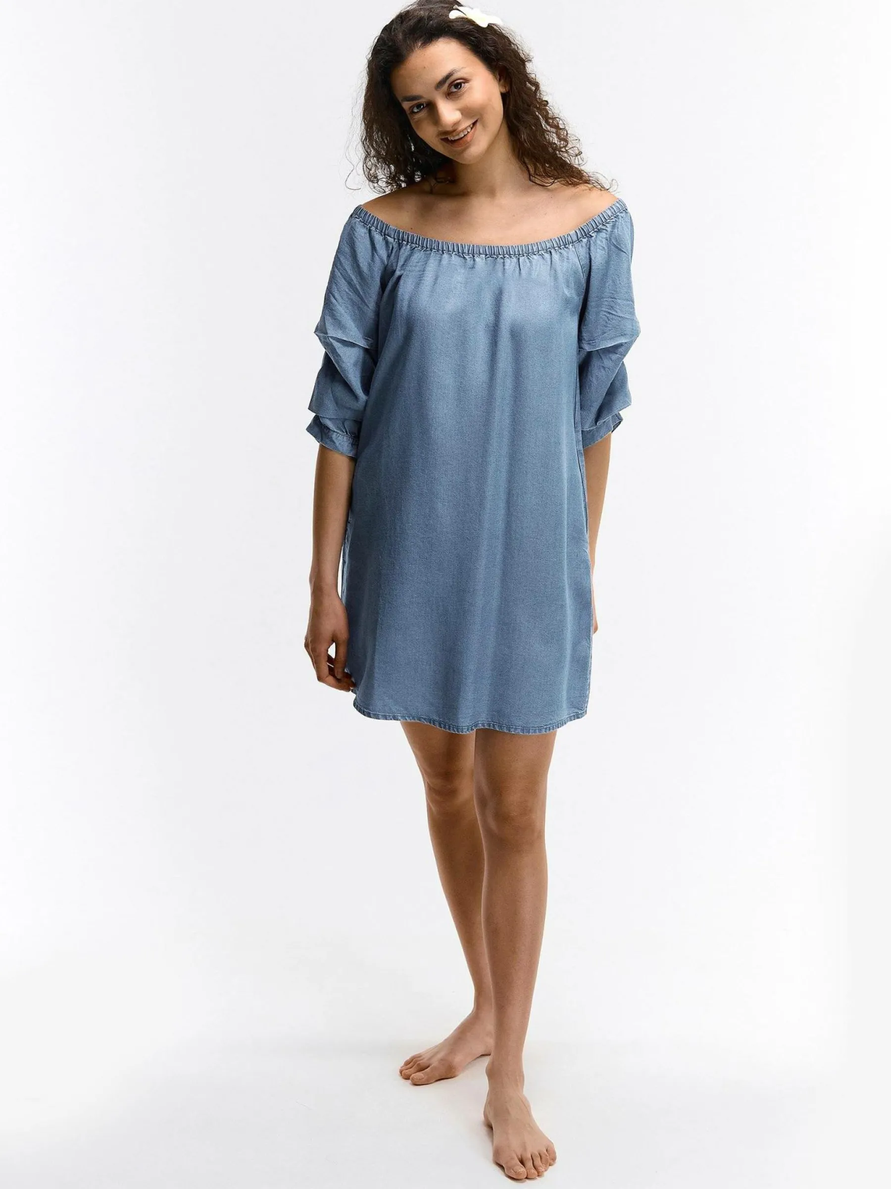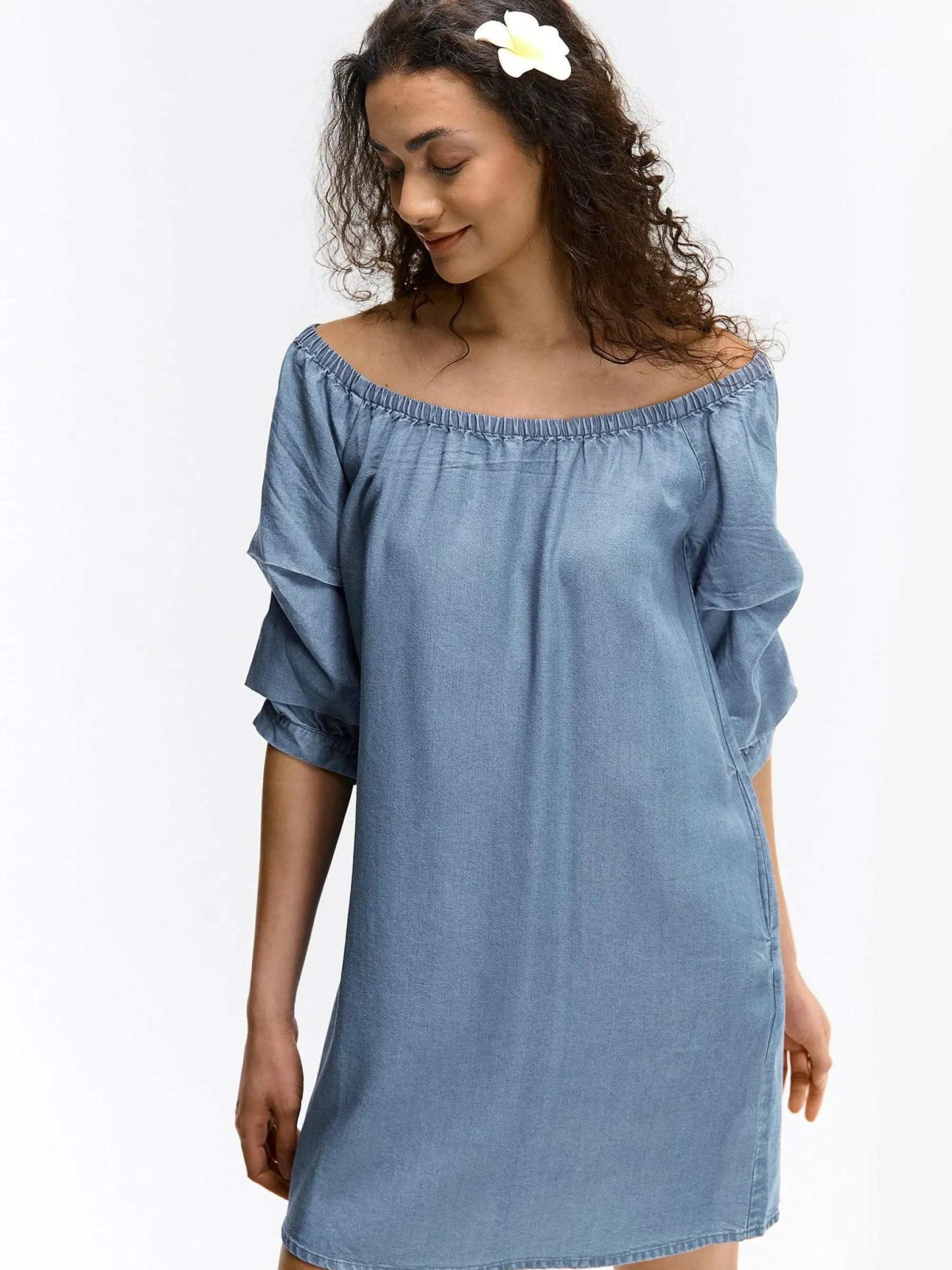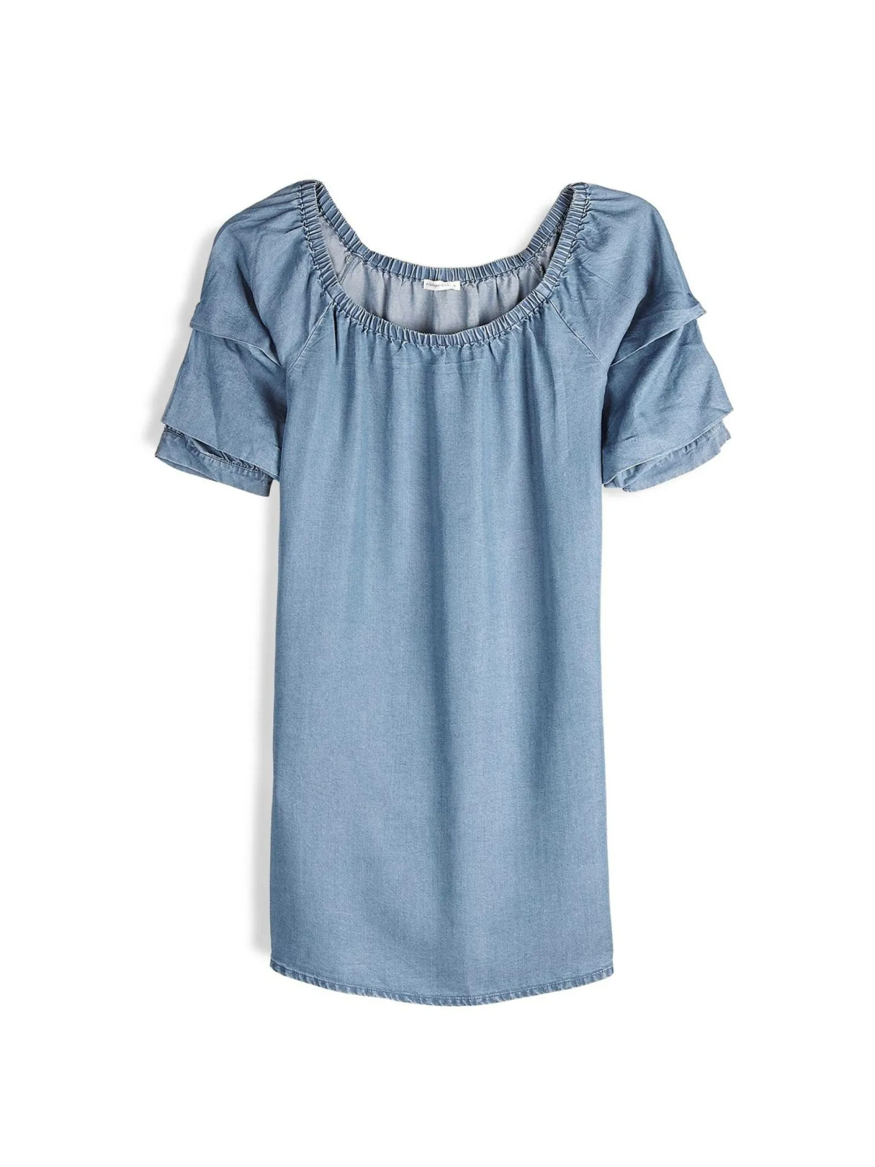 Kolor: niebieskiKrój: regularTyp: sukienkaRekaw: krótki rękawDługość: miniPattern style: pojedynczy kolorDetal: na…