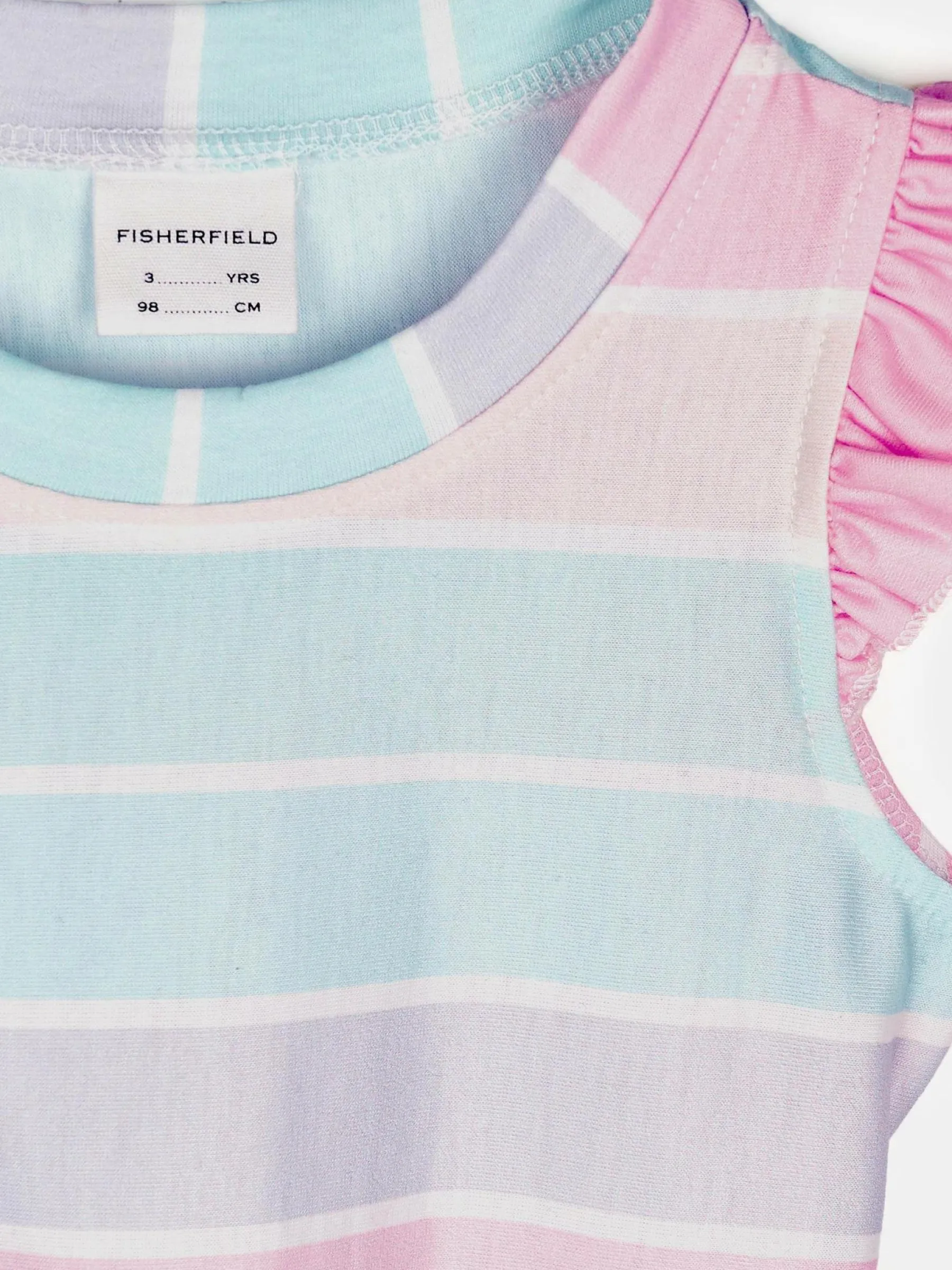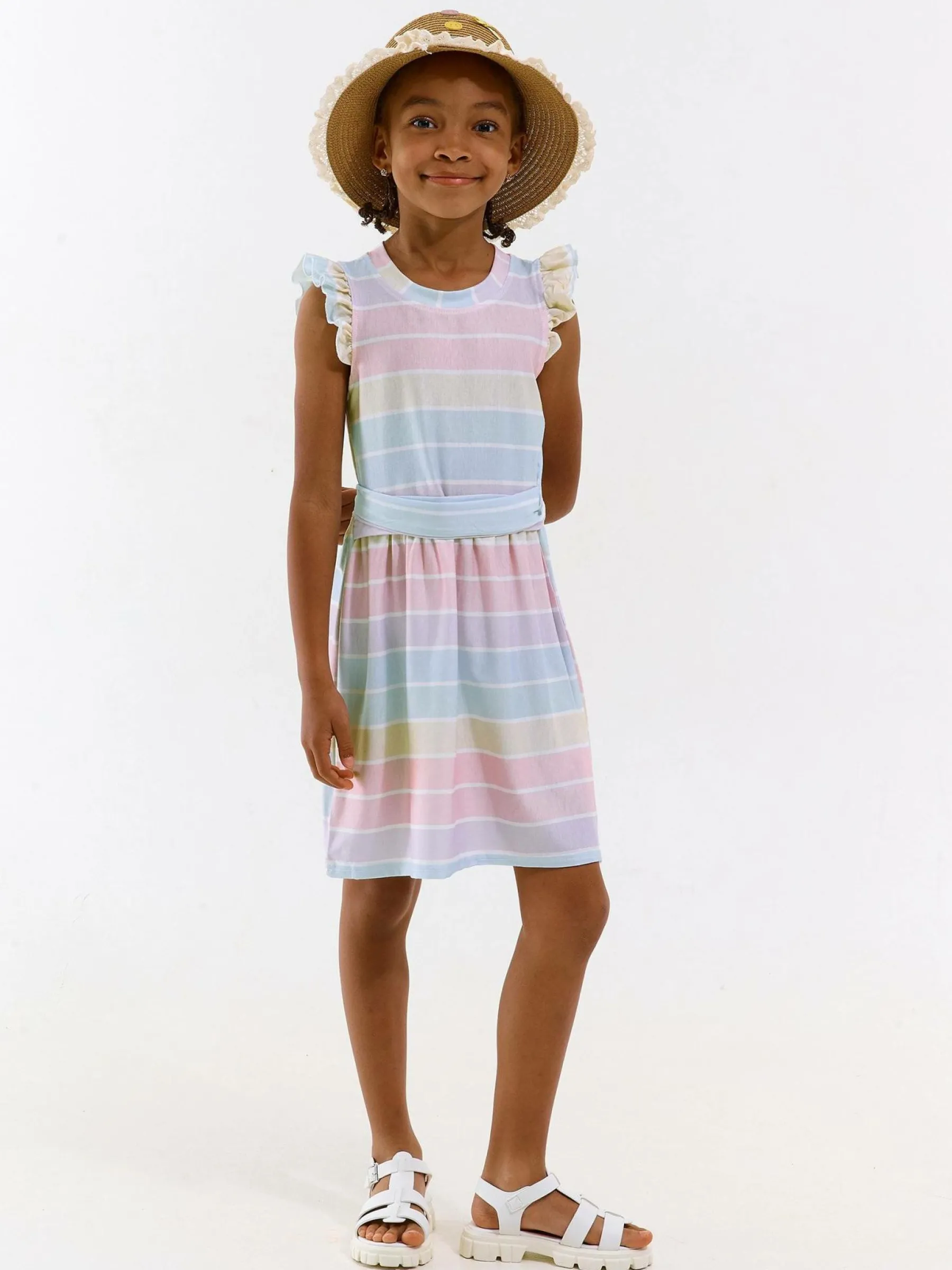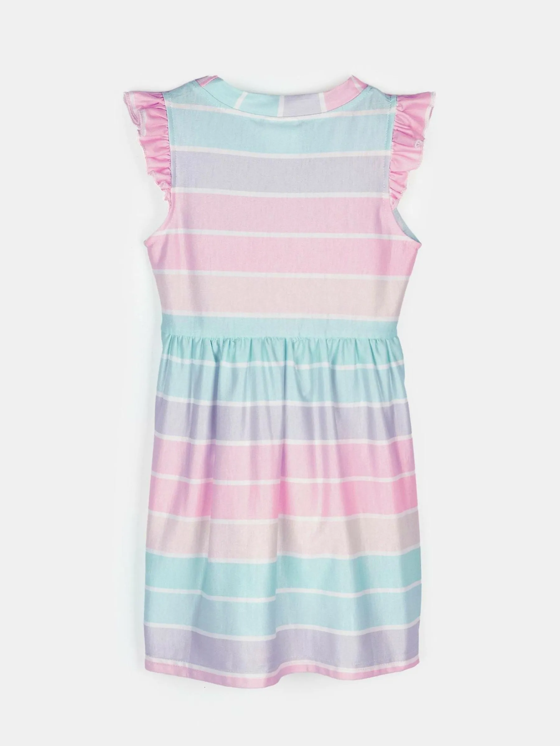 Kolor: różowyKrój: z falbanąTyp: sukienkaRekaw: bez rękawówDługość: miniPattern style: w prążkiDetal: z paski…