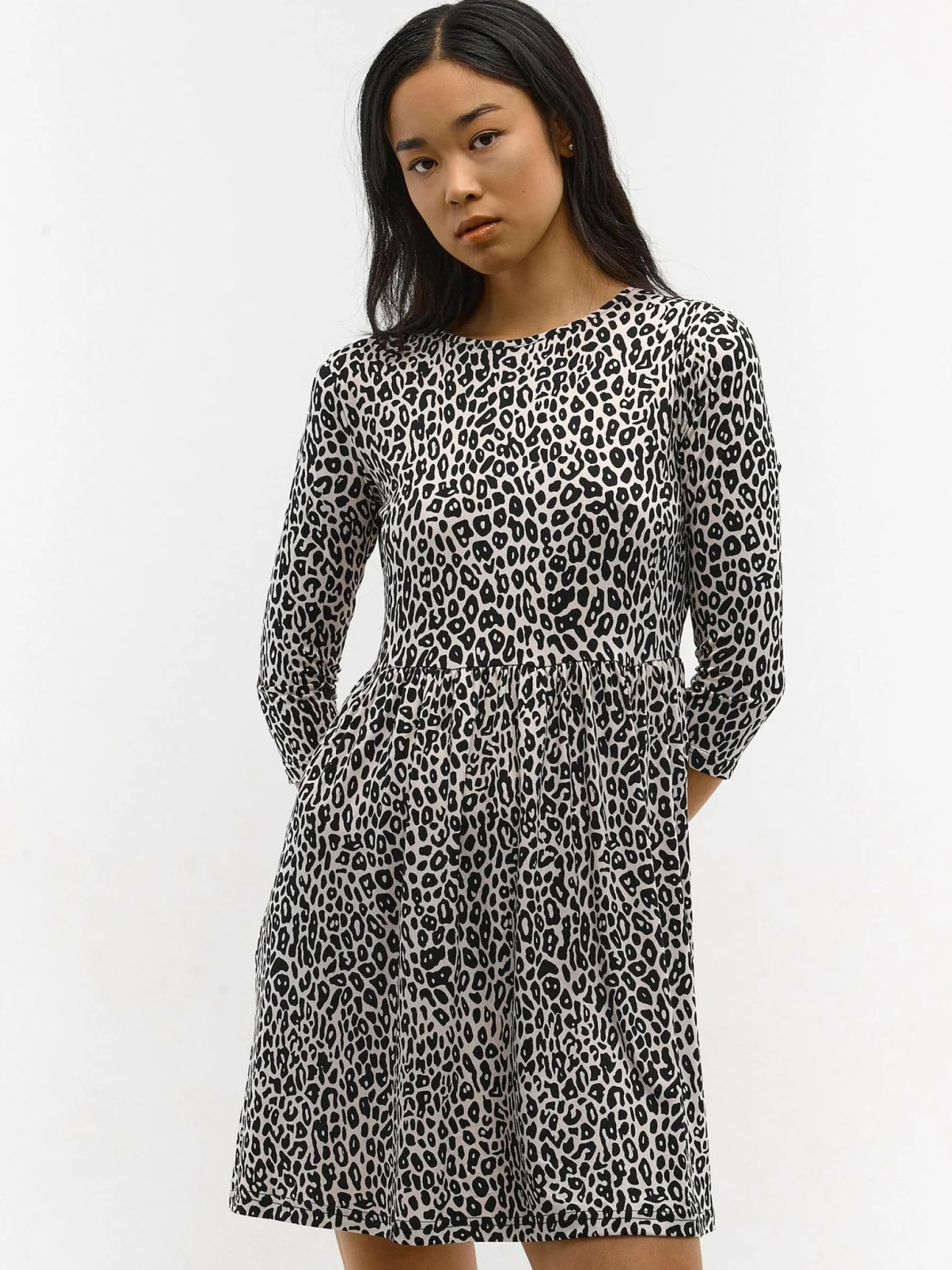 Kolor: beżowyKrój: z marszczeniemTyp: sukienkaRekaw: rękaw 3/4Długość: miniPattern style: z nadrukiem, zwierzecyDe…