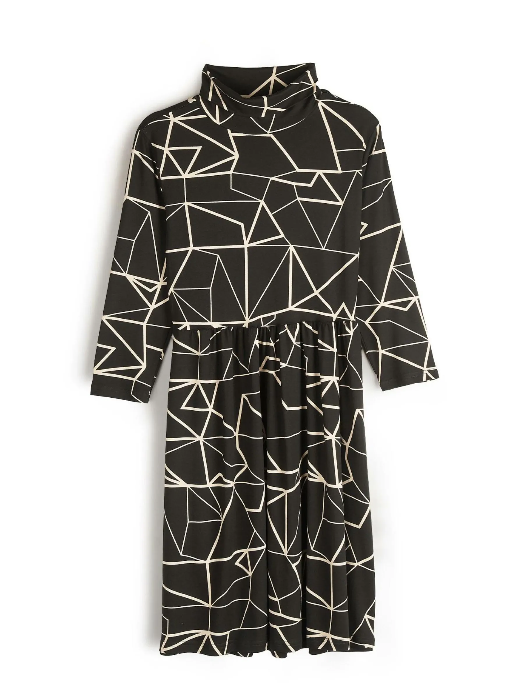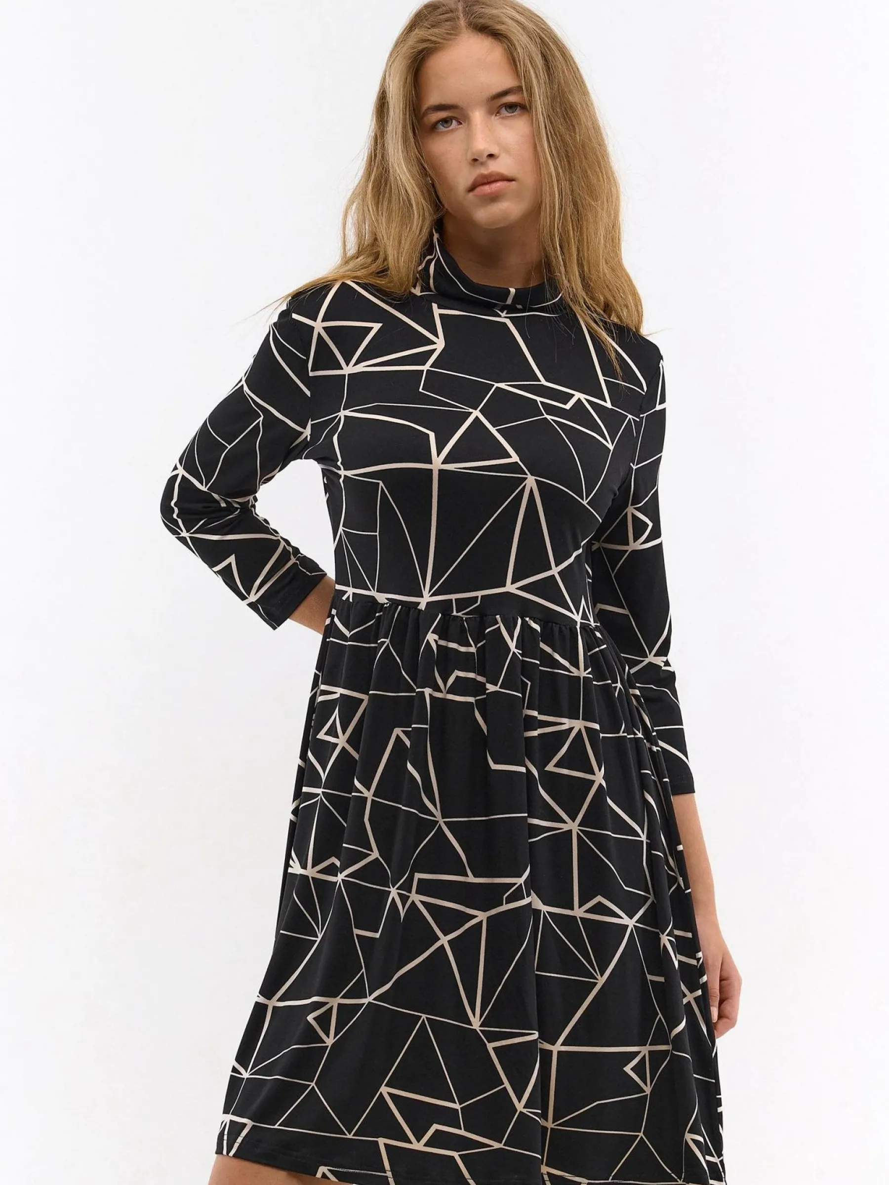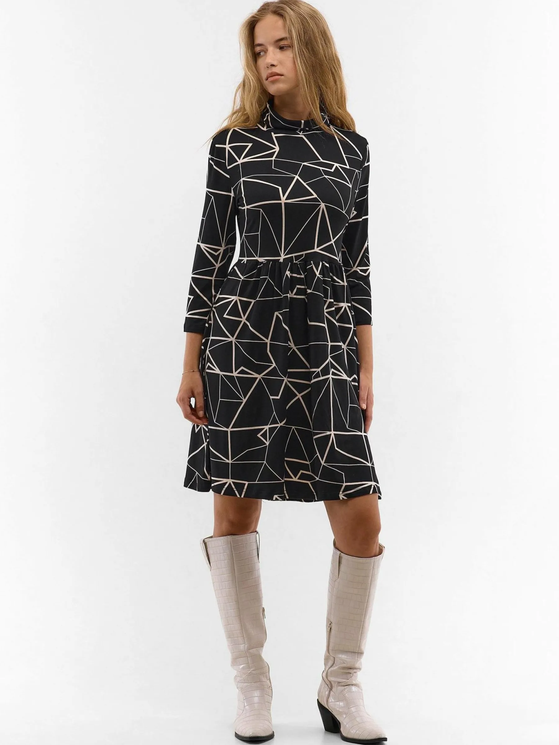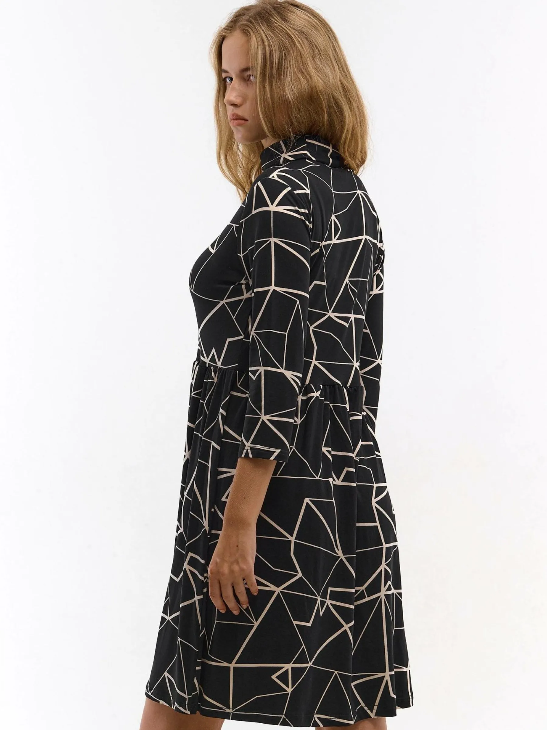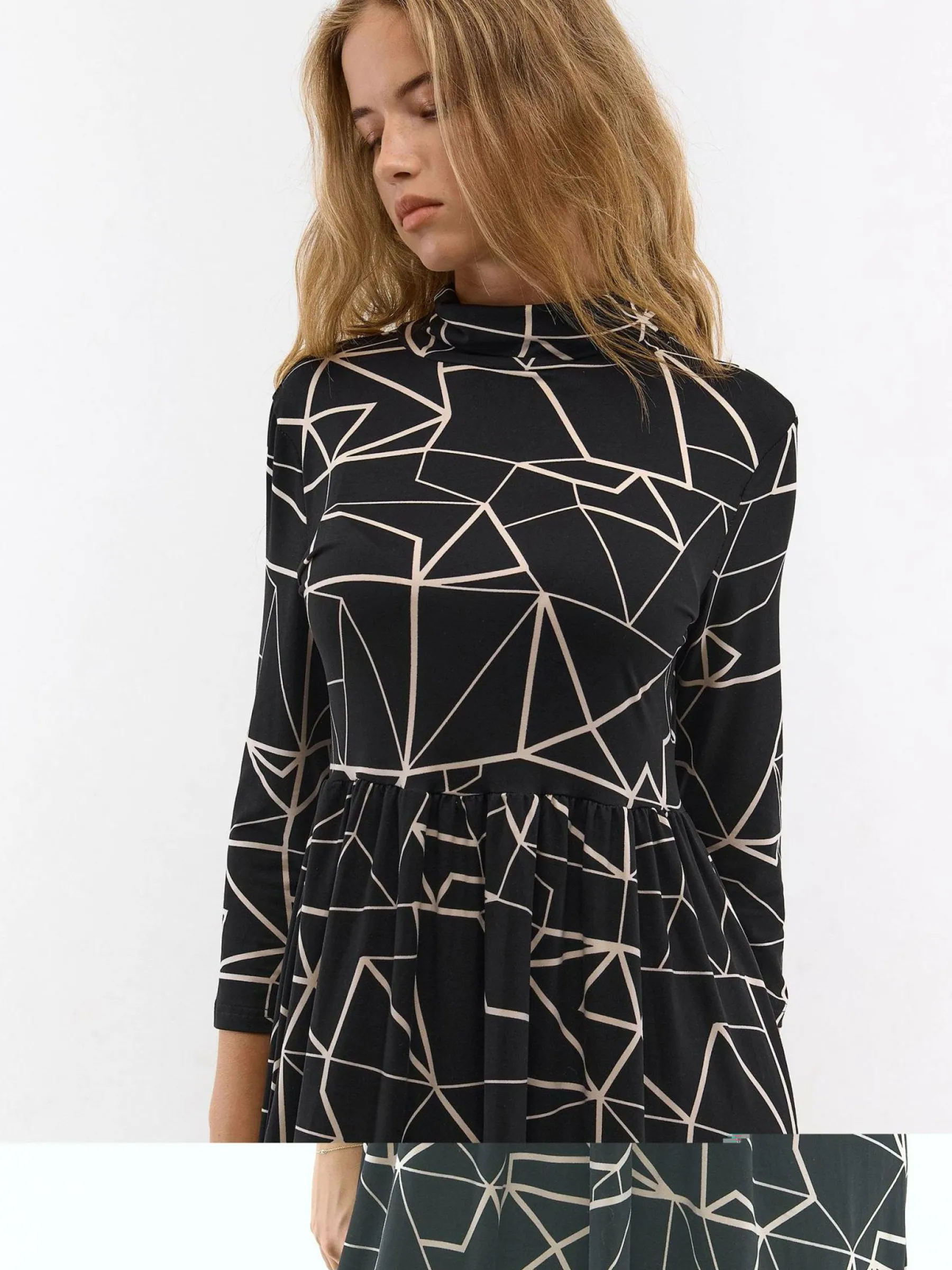 Kolor: czarnyKrój: asyTyp: sukienkaRekaw: długi rękawDługość: miniPattern style: geometryczny, z nadrukiemDetal: n…