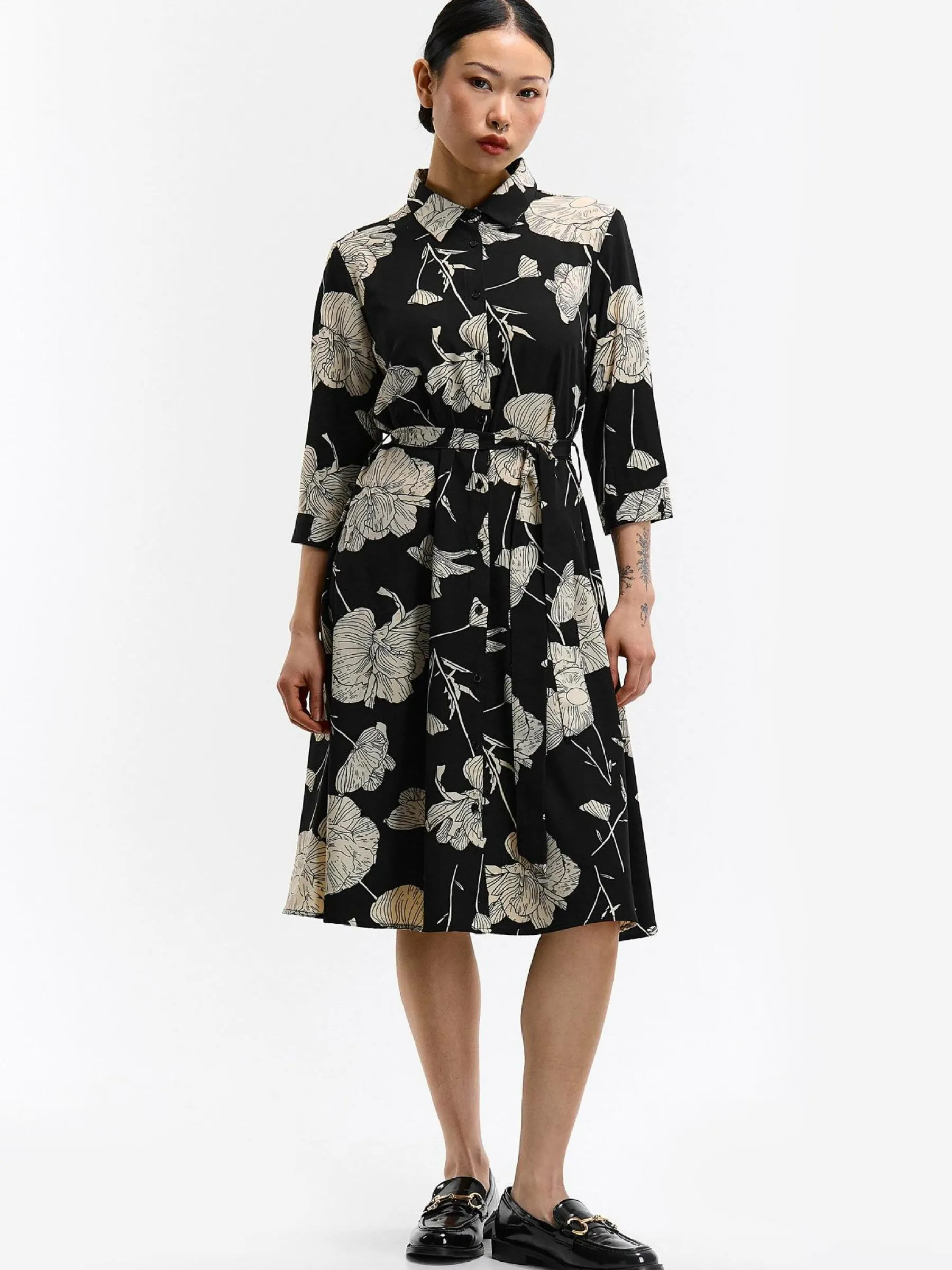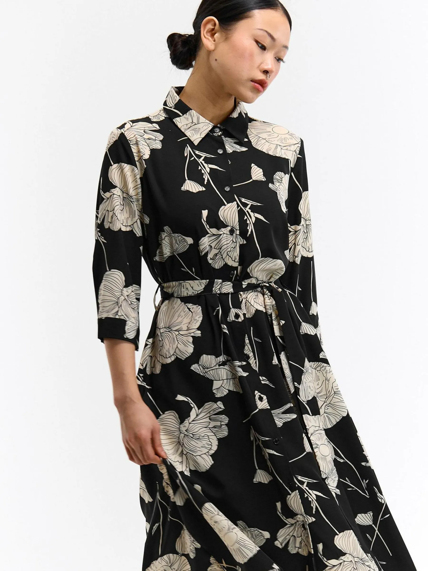 Kolor: czarnyKrój: koszuloweTyp: sukienkaRekaw: rękaw 3/4Długość: midiPattern style: z nadrukiem, kwiatoweDetal: na…