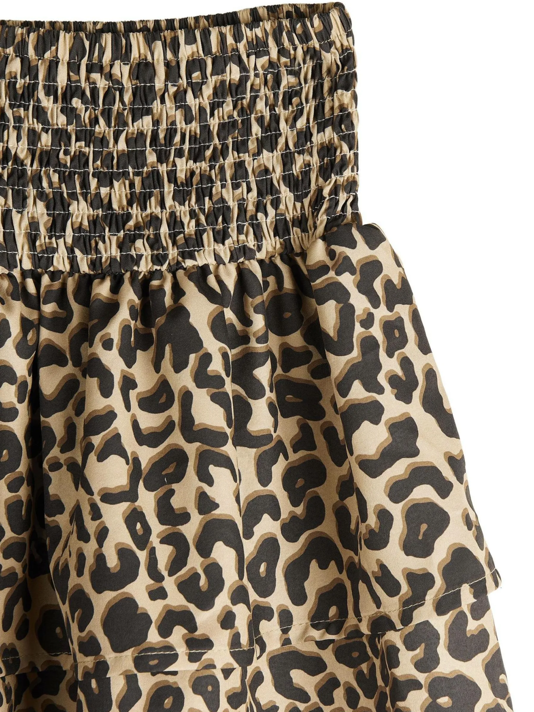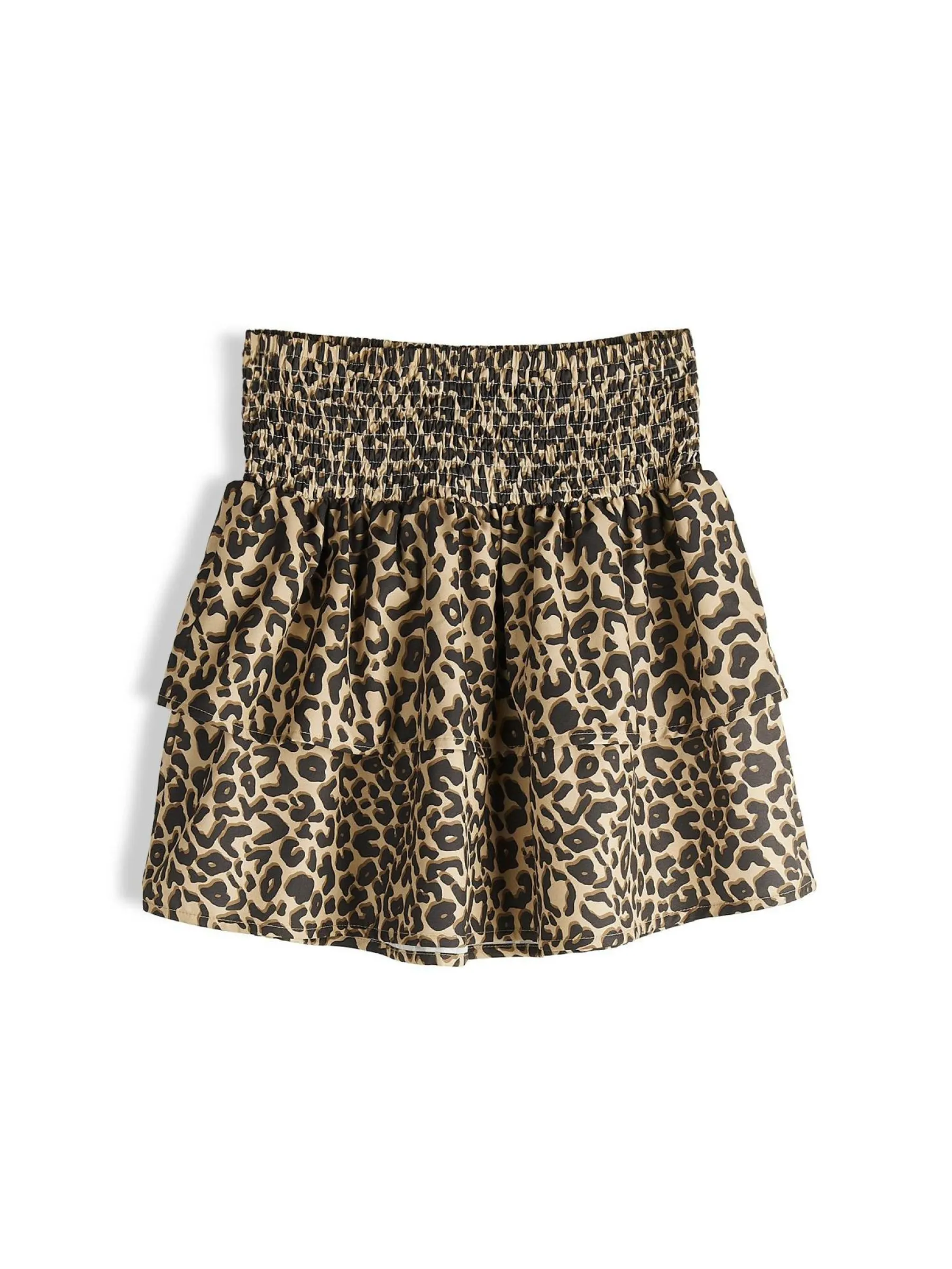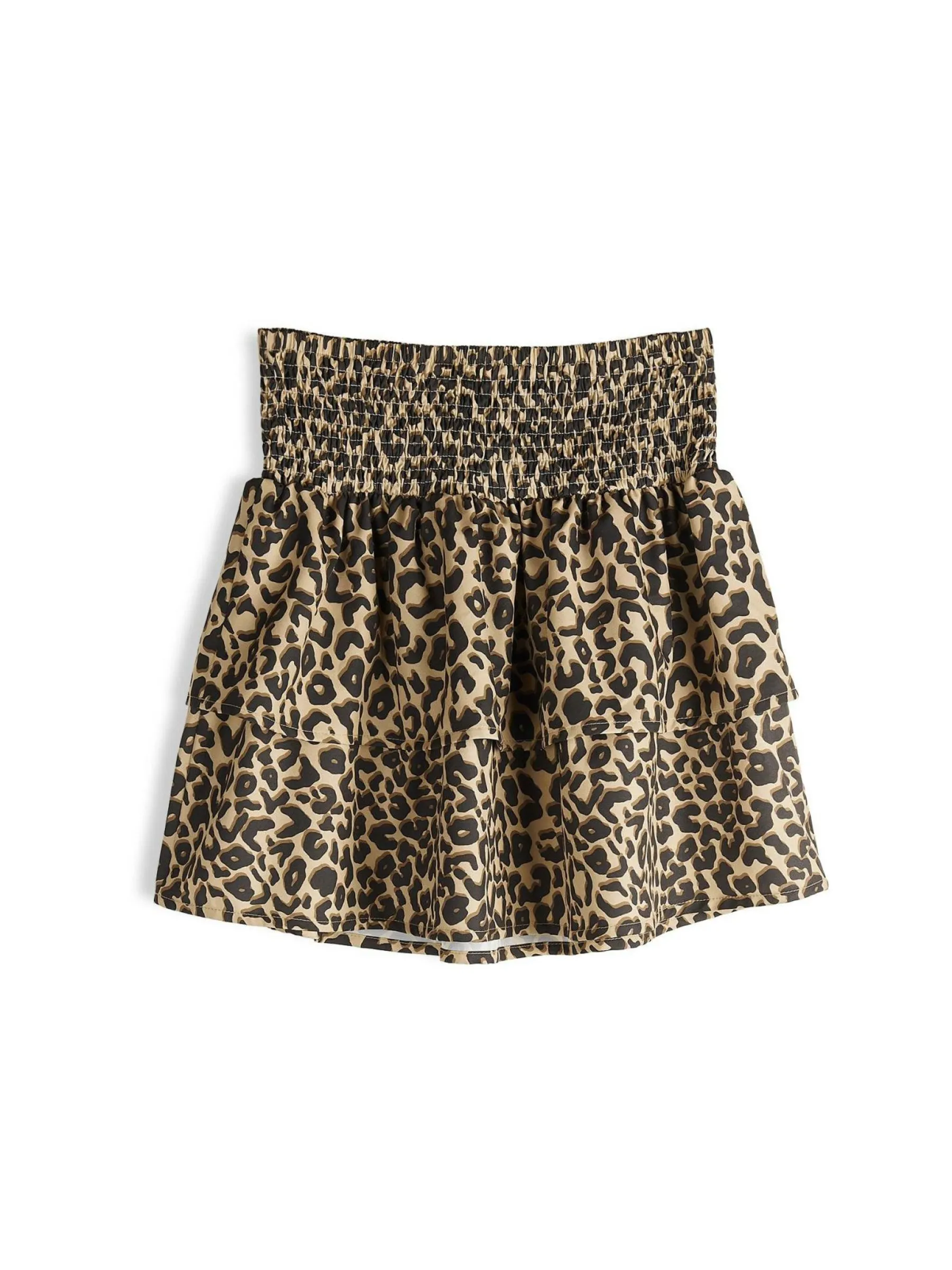 Kolor: brązowyKrój: z falbanąTyp: spódnicaDługość: miniPattern style: zwierzecyDetal: z elastyczną opaską, z fa…