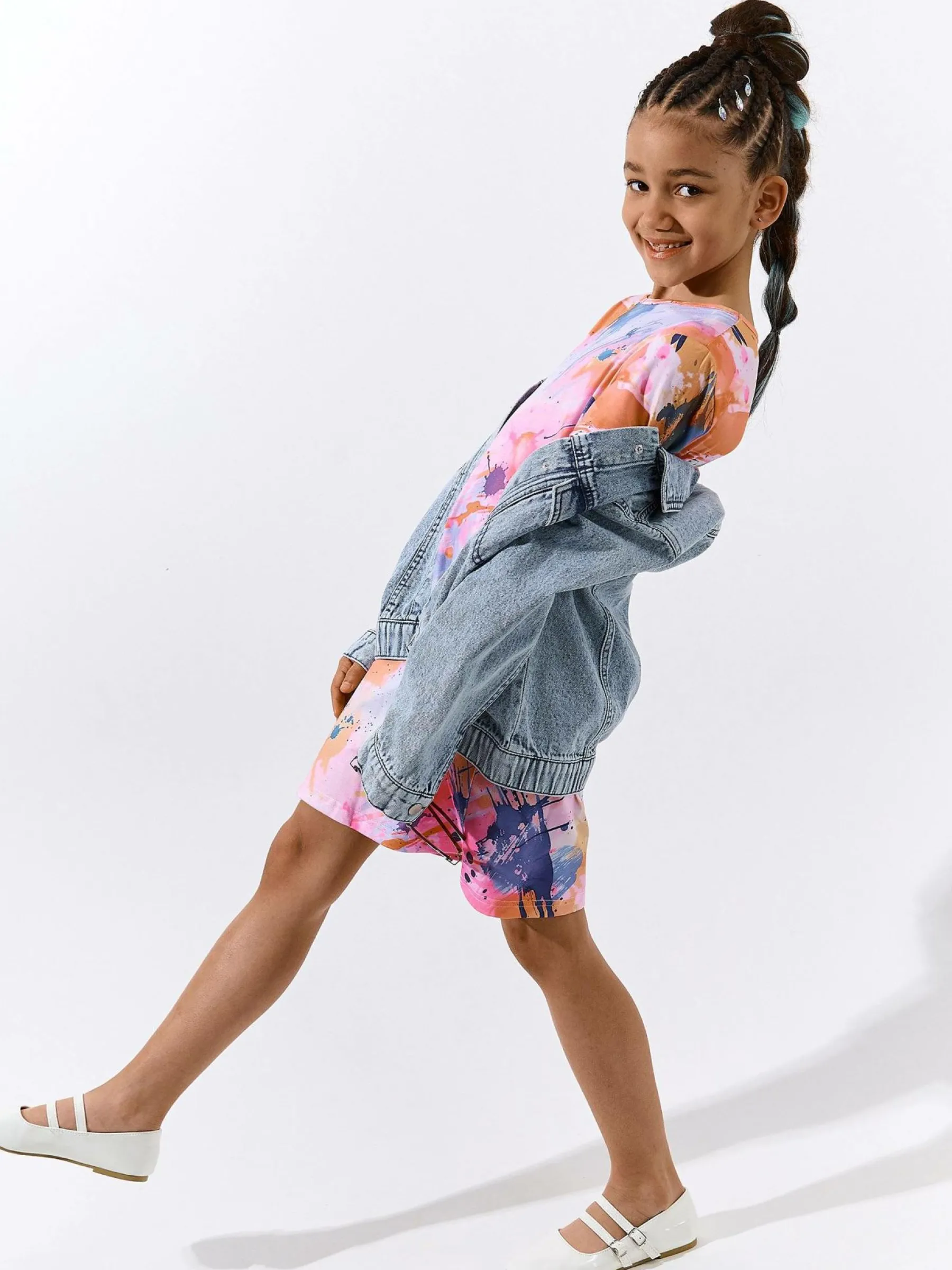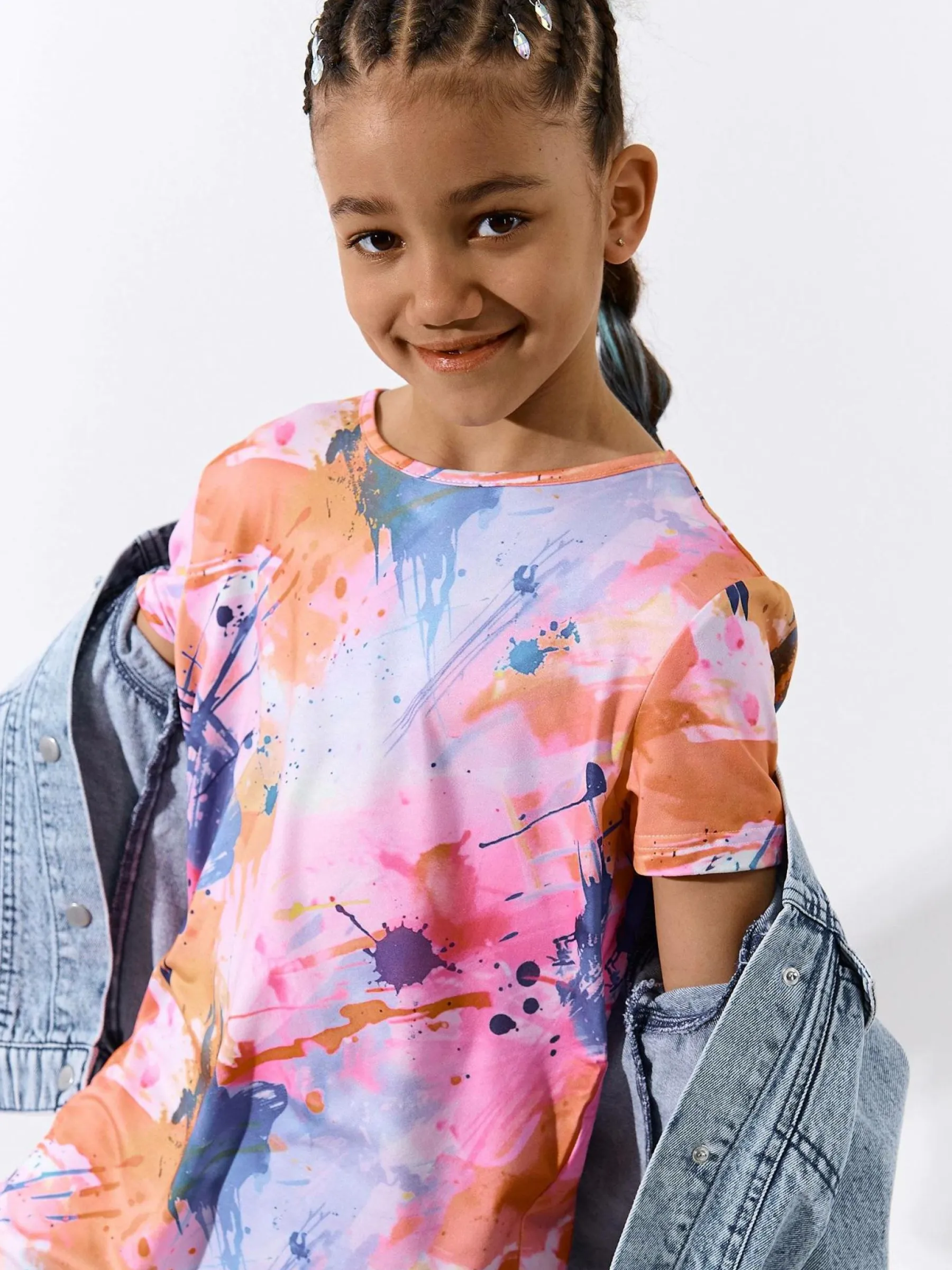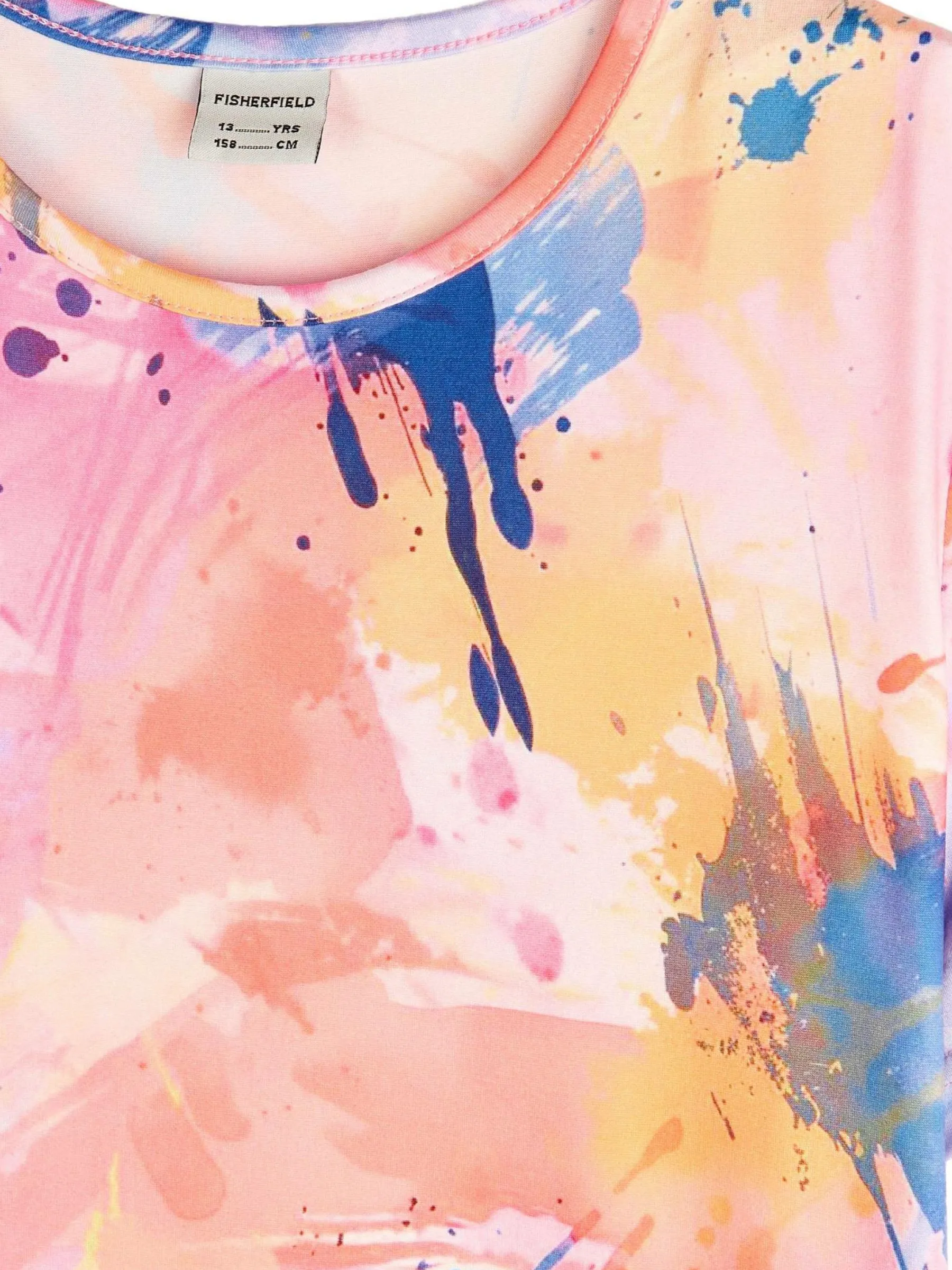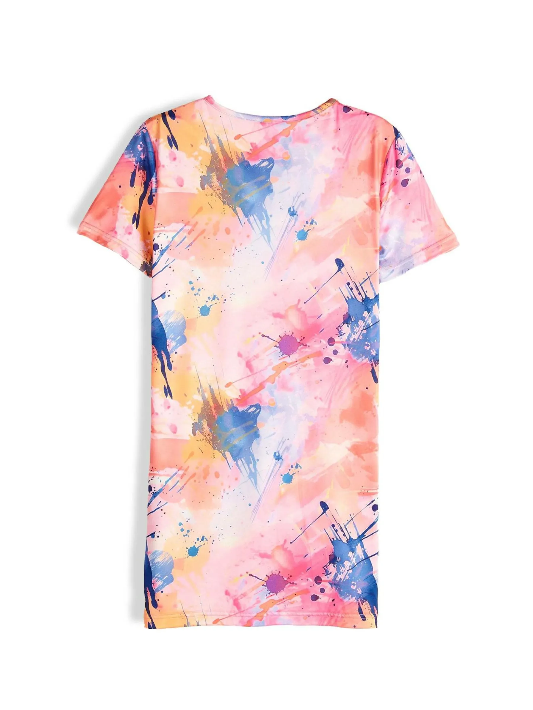 Kolor: różowyKrój: regularTyp: sukienkaRekaw: krótki rękawDługość: miniPattern style: z nadrukiemDetal: nad gło…