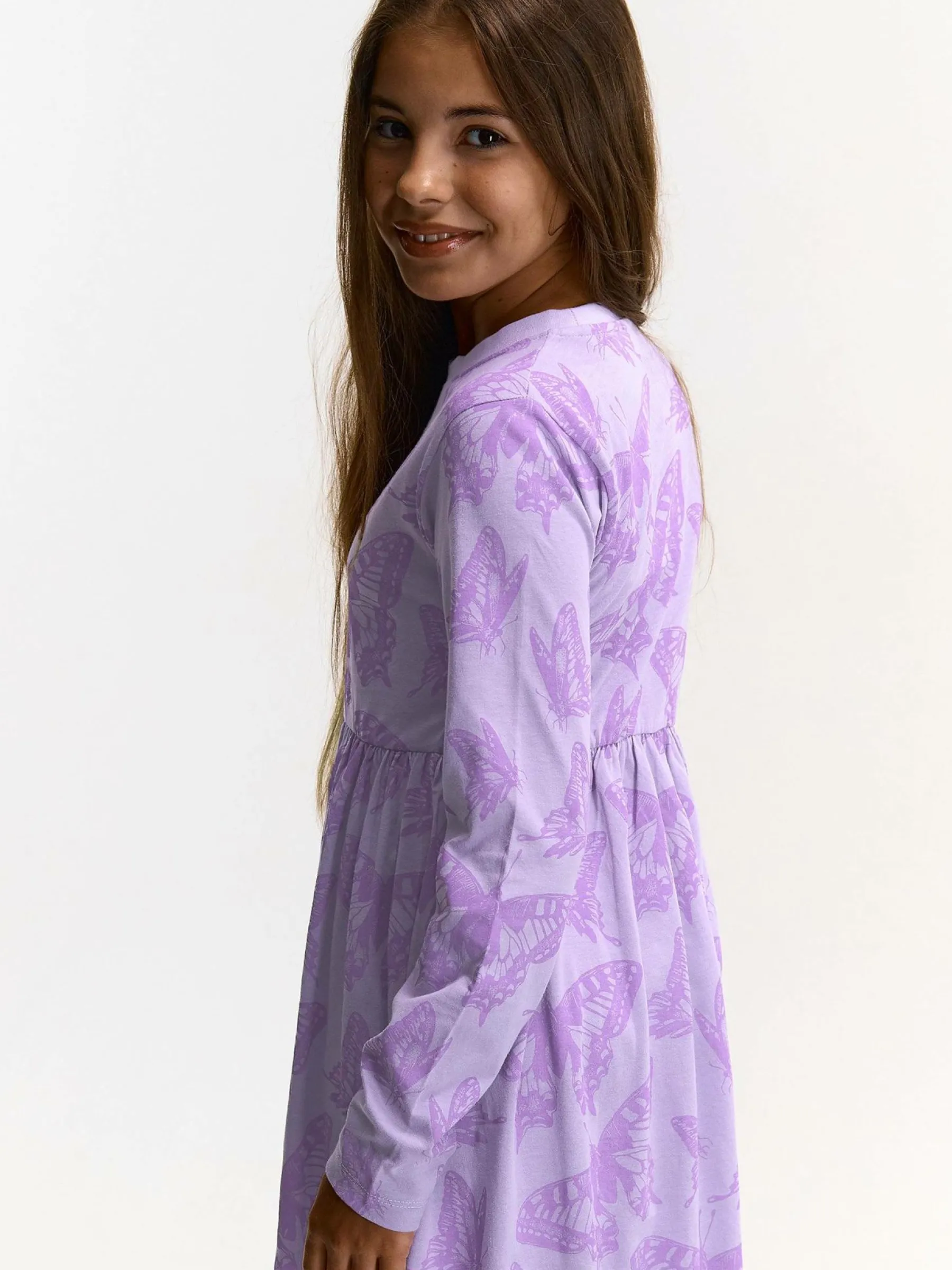 Kolor: purpurowyKrój: asyTyp: sukienkaRekaw: długi rękawDługość: miniPattern style: z nadrukiemDetal: nad głowąM…