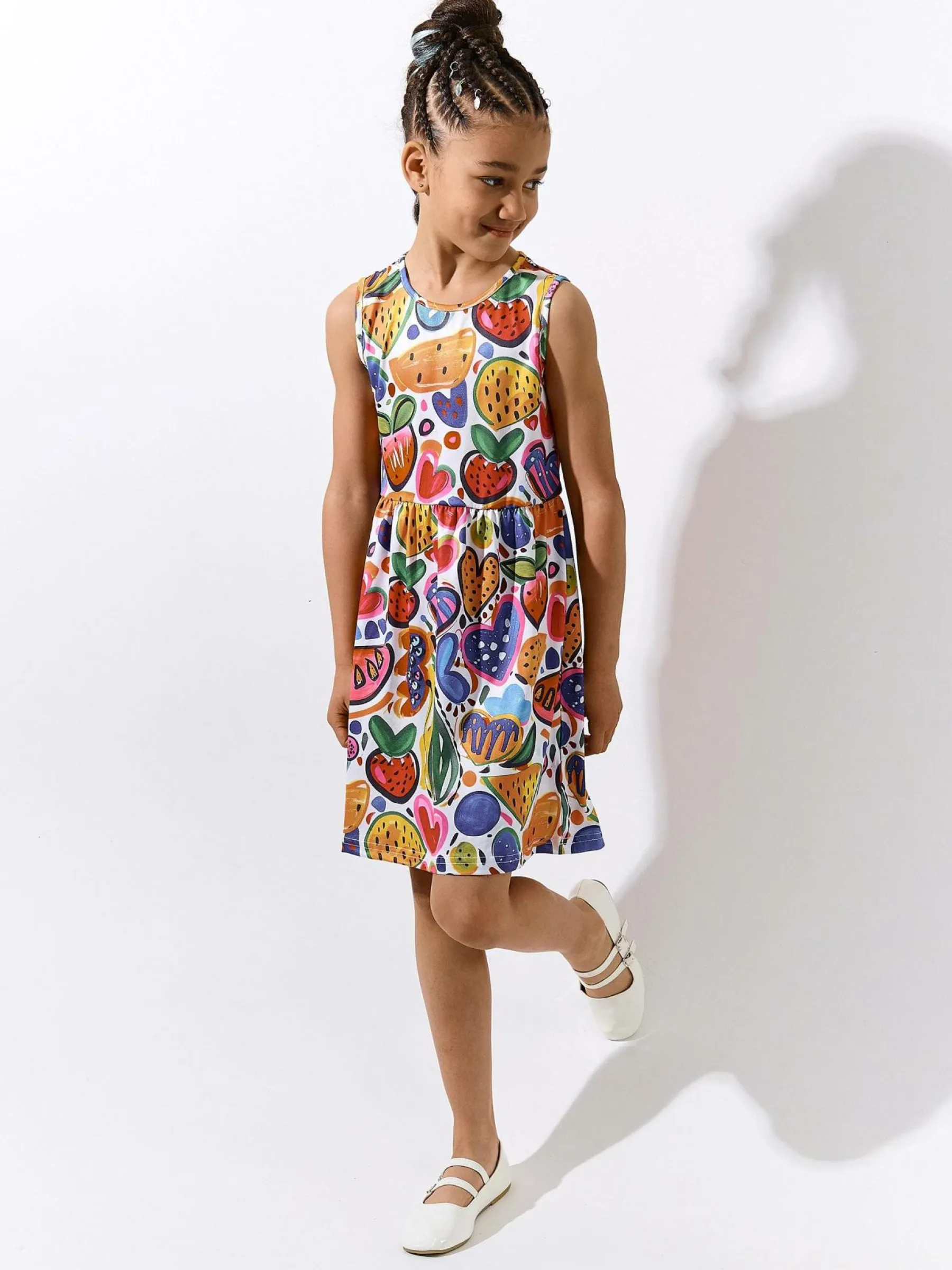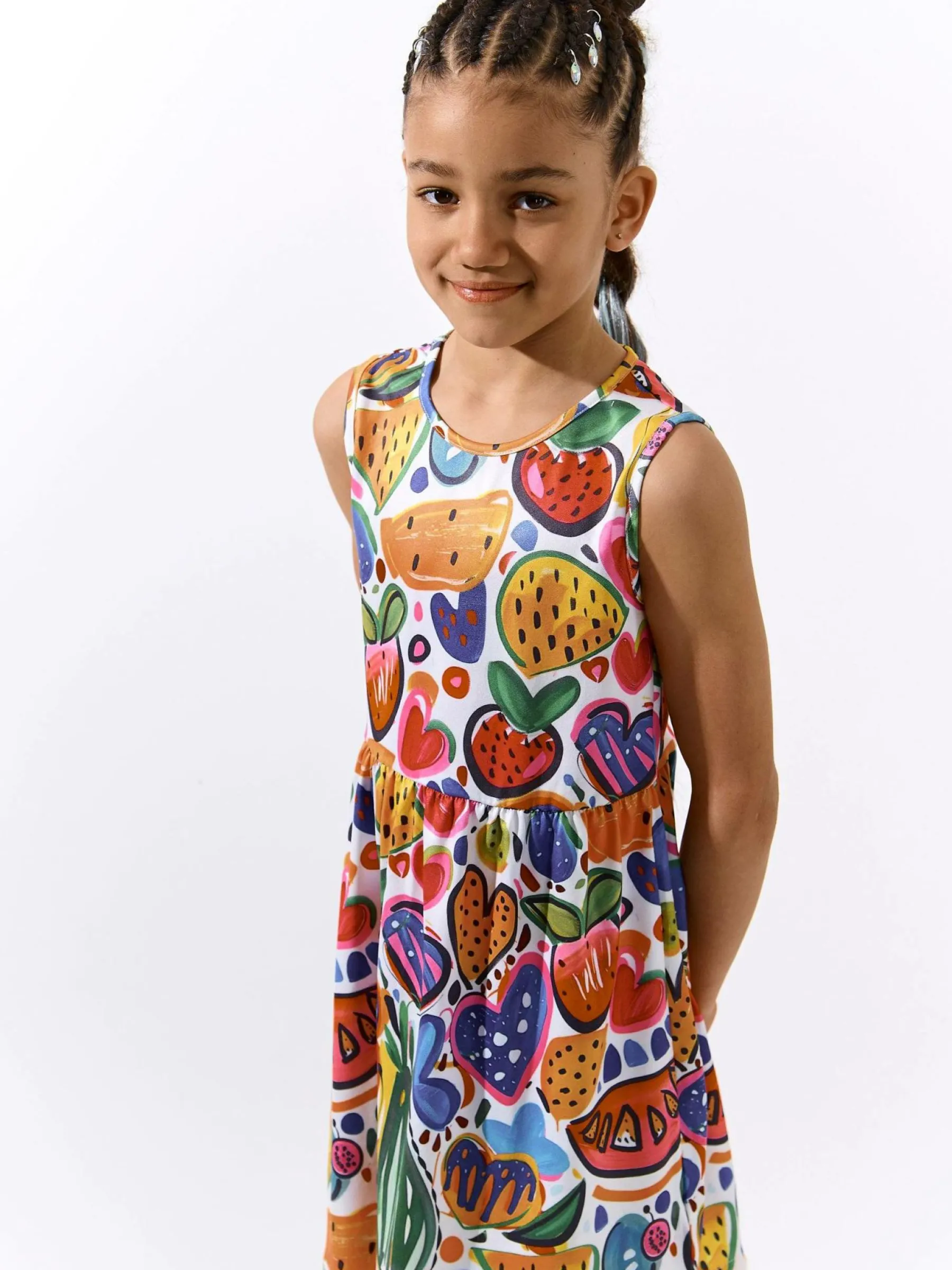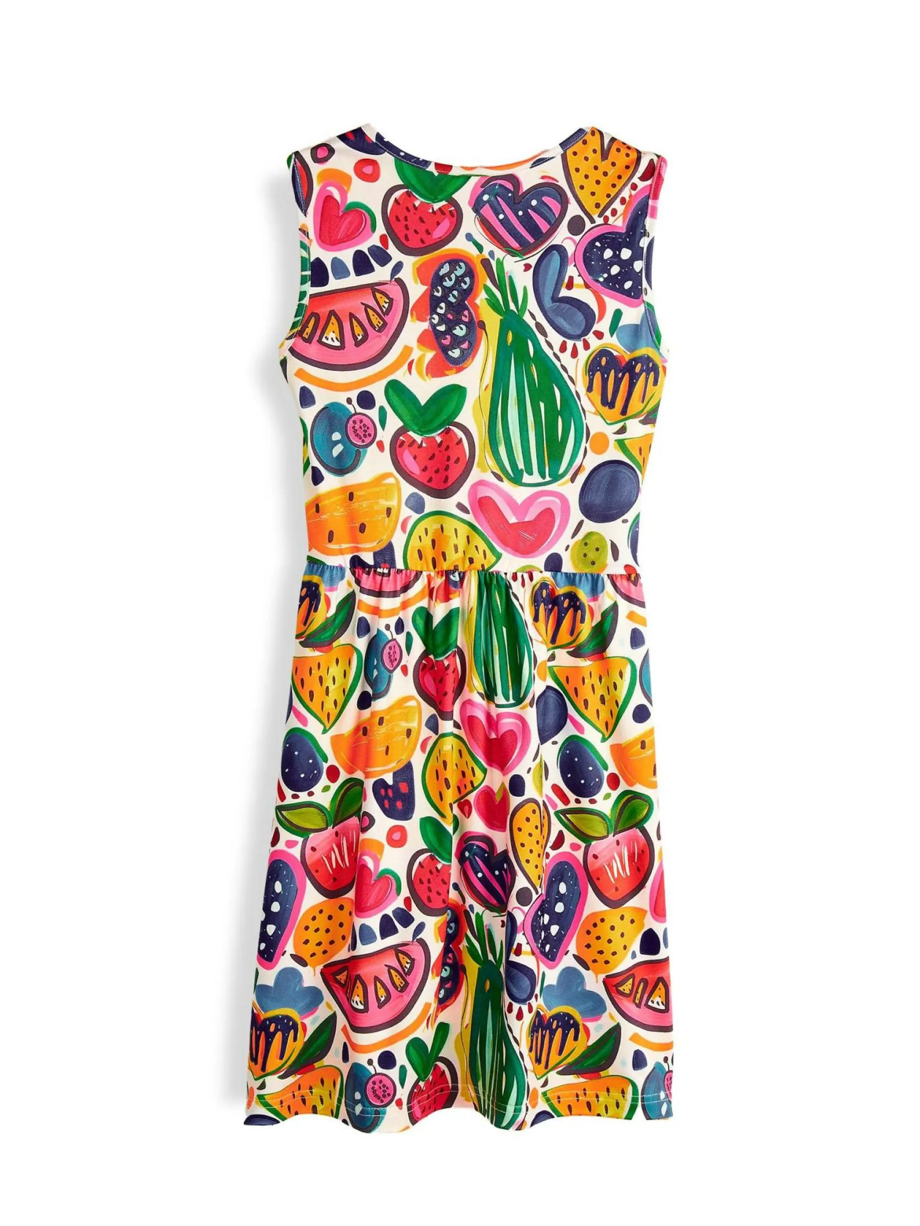 Kolor: białyKrój: asyTyp: sukienkaRekaw: bez rękawówDługość: miniPattern style: z nadrukiemDetal: nad głowąMate…