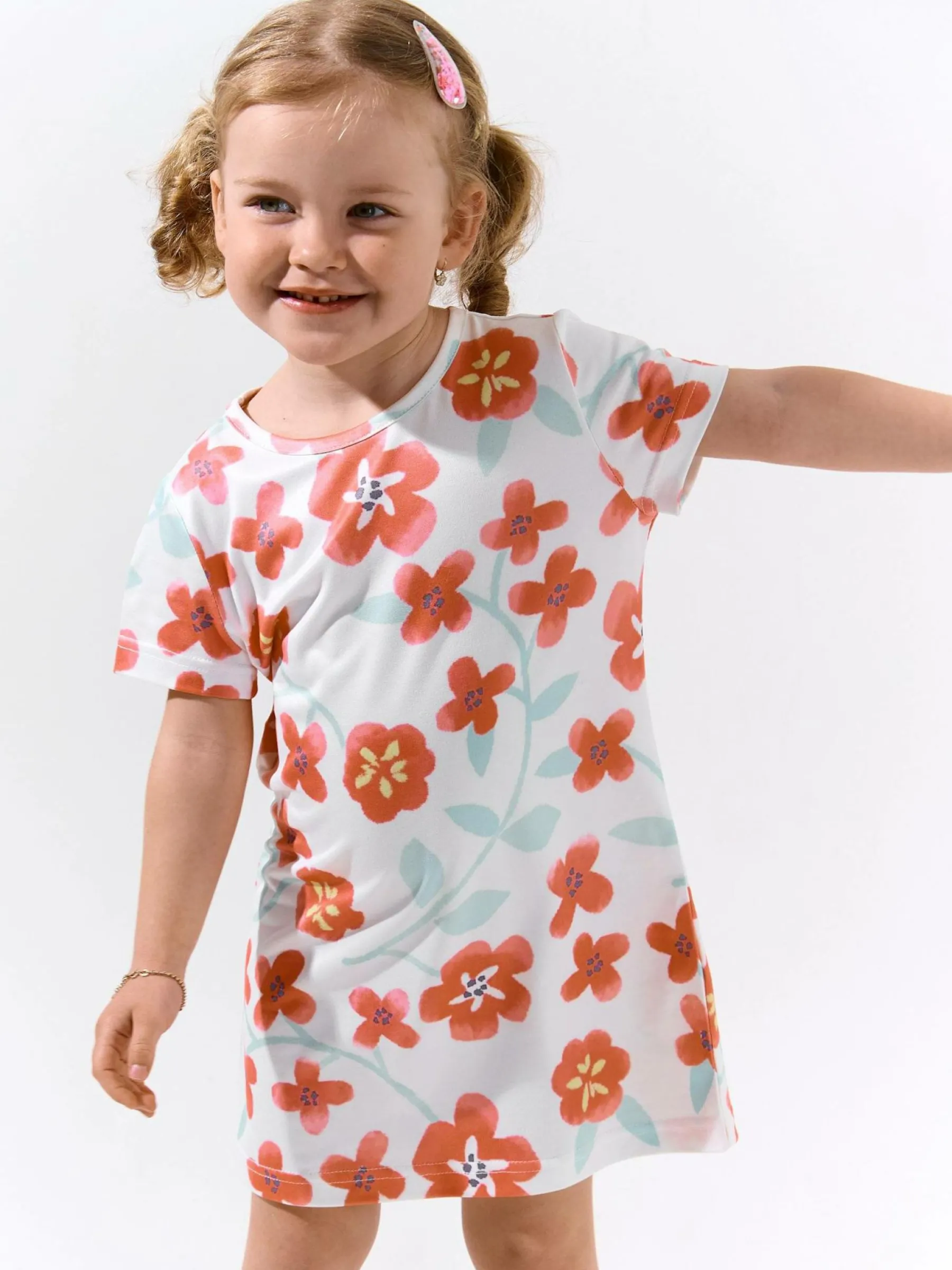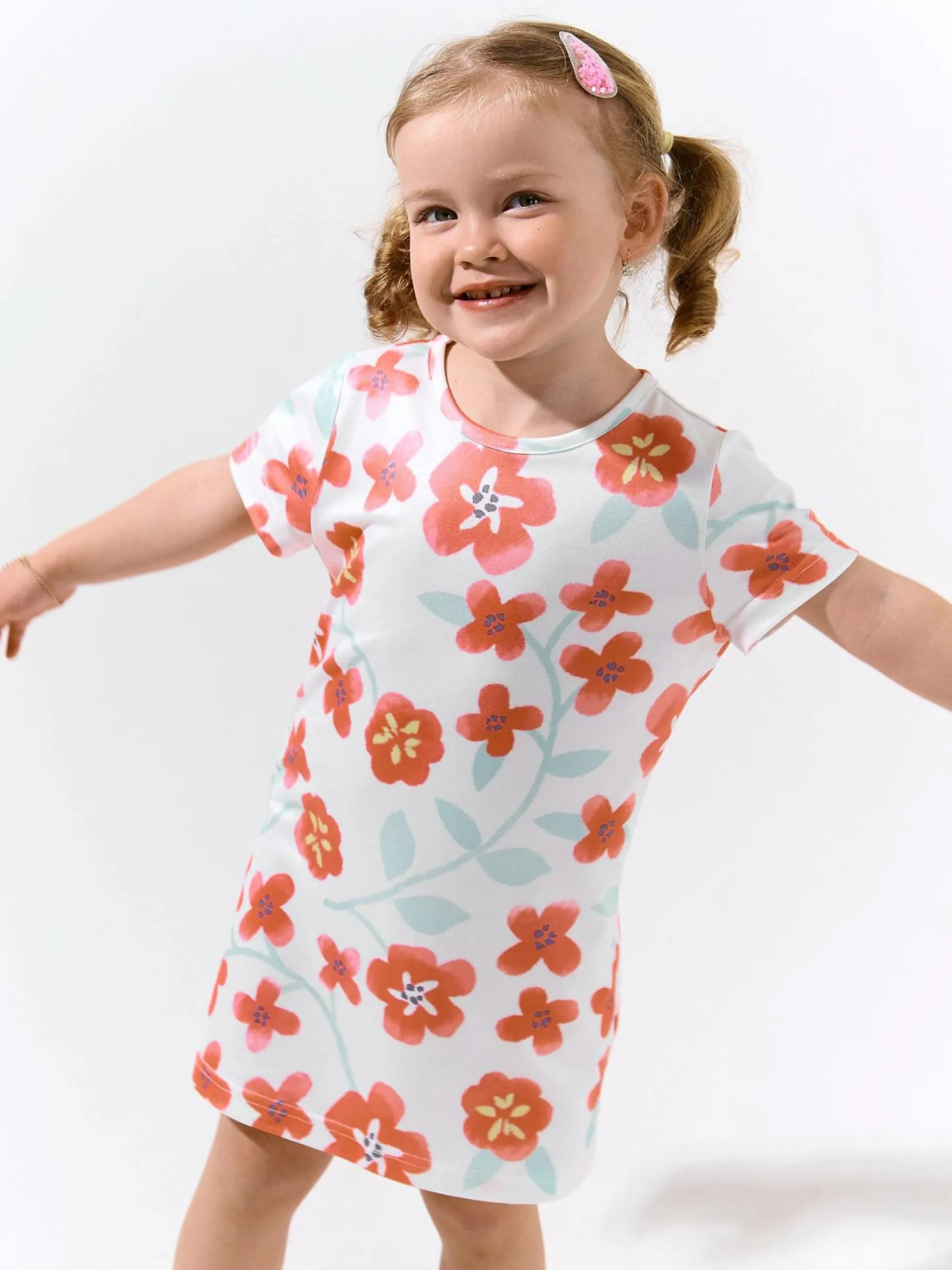 Kolor: białyKrój: regularTyp: sukienkaRekaw: krótki rękawDługość: miniPattern style: kwiatoweDetal: nad głowąMa…