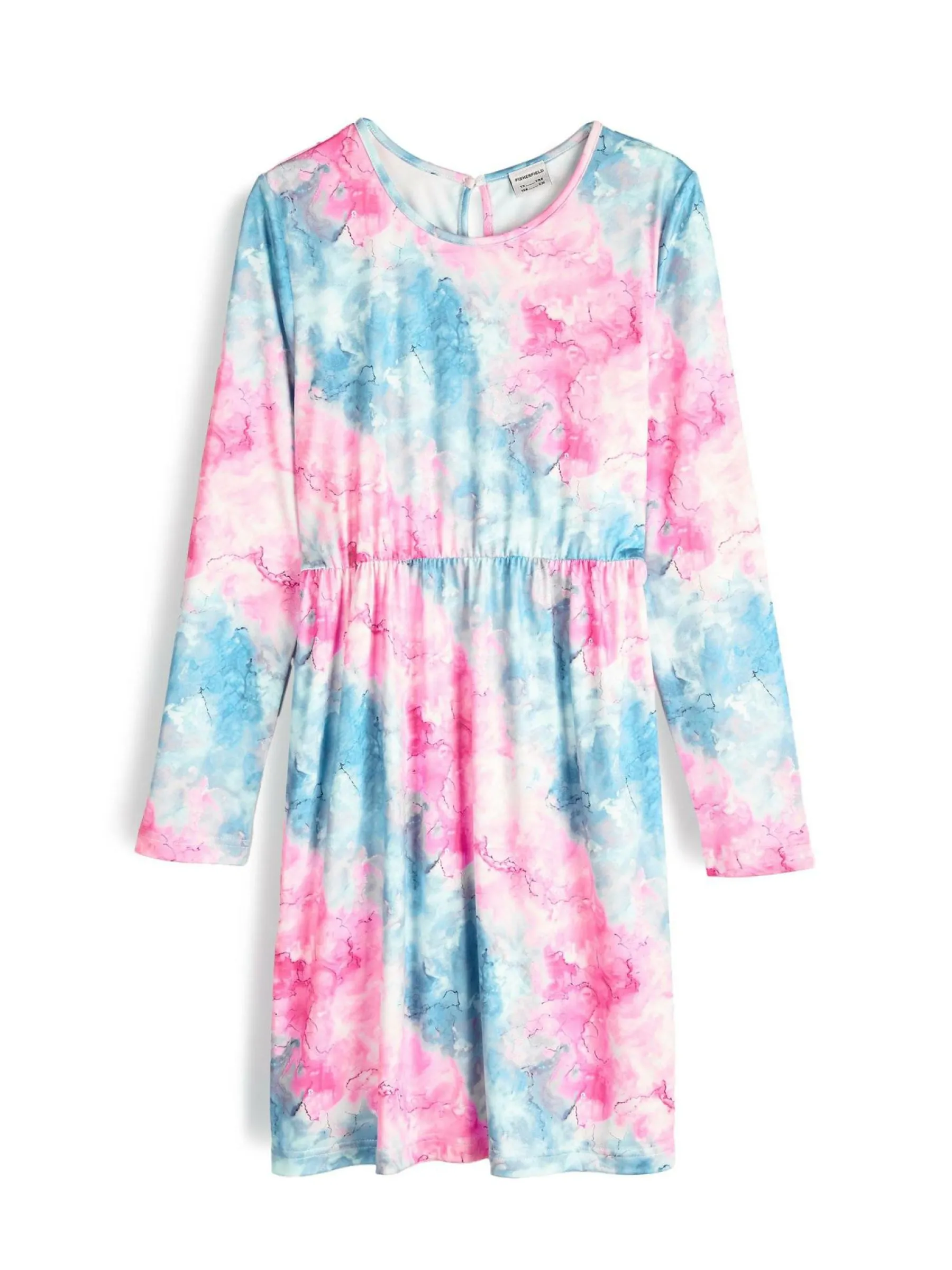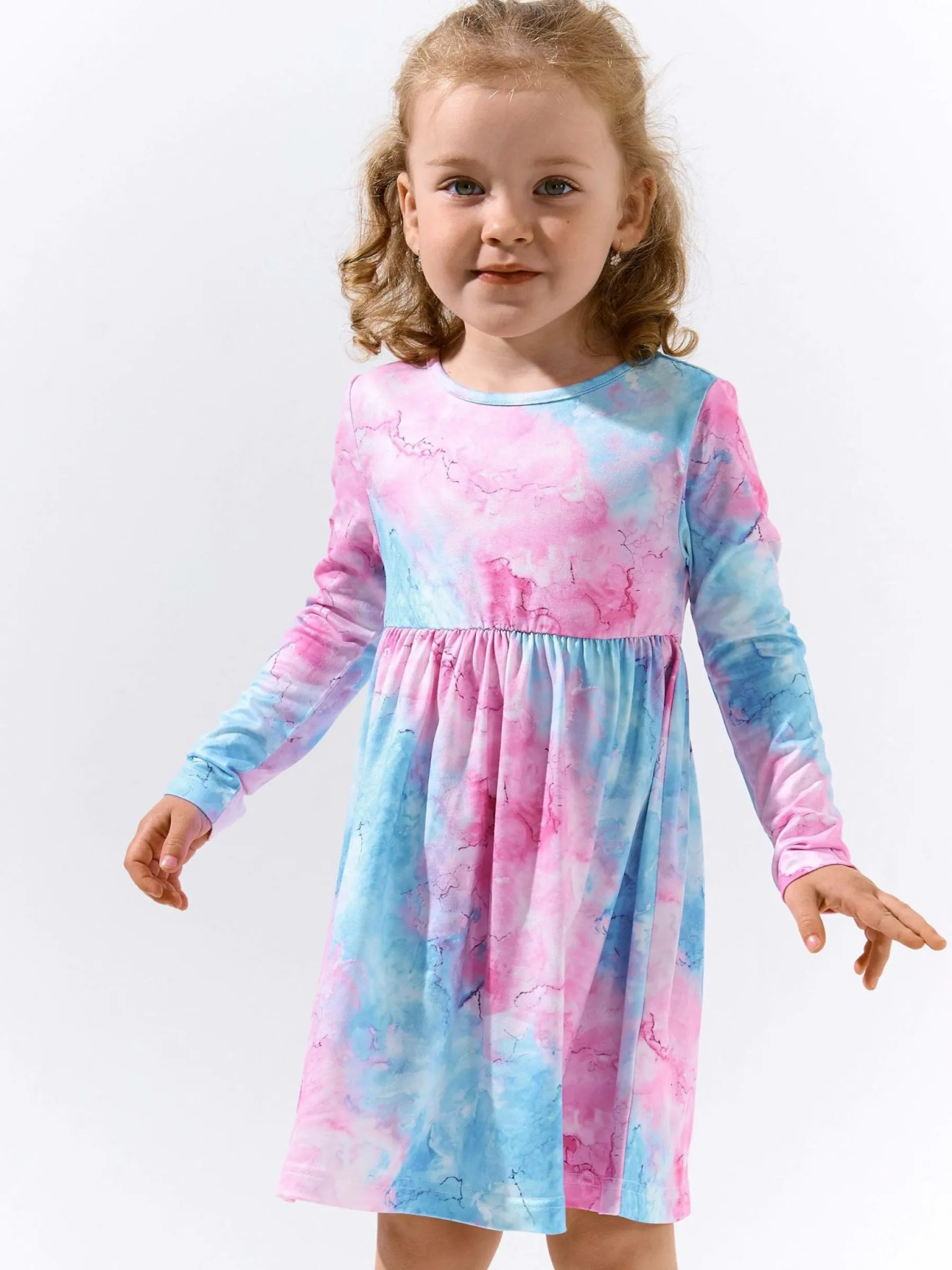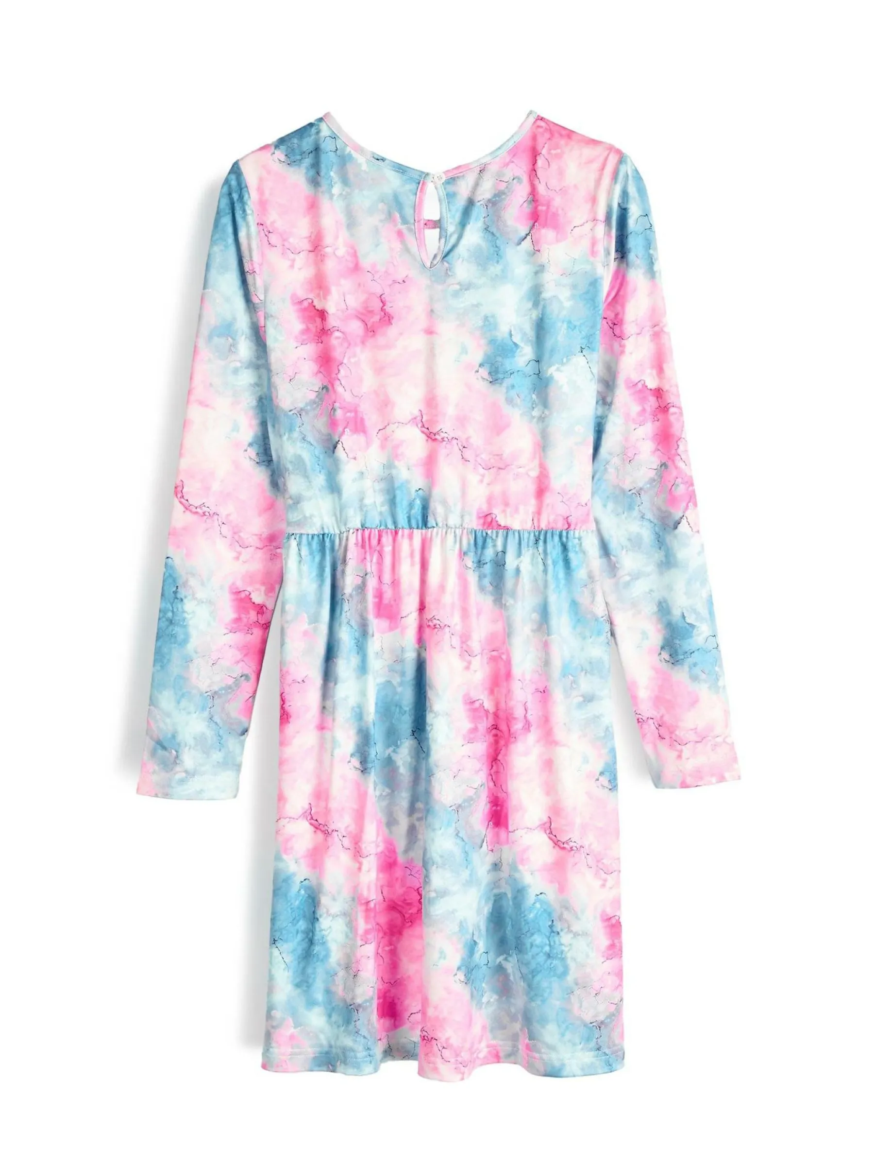 Kolor: różowyKrój: asyTyp: sukienkaRekaw: długi rękawDługość: miniPattern style: tie dyeDetal: nad głowąMateri…