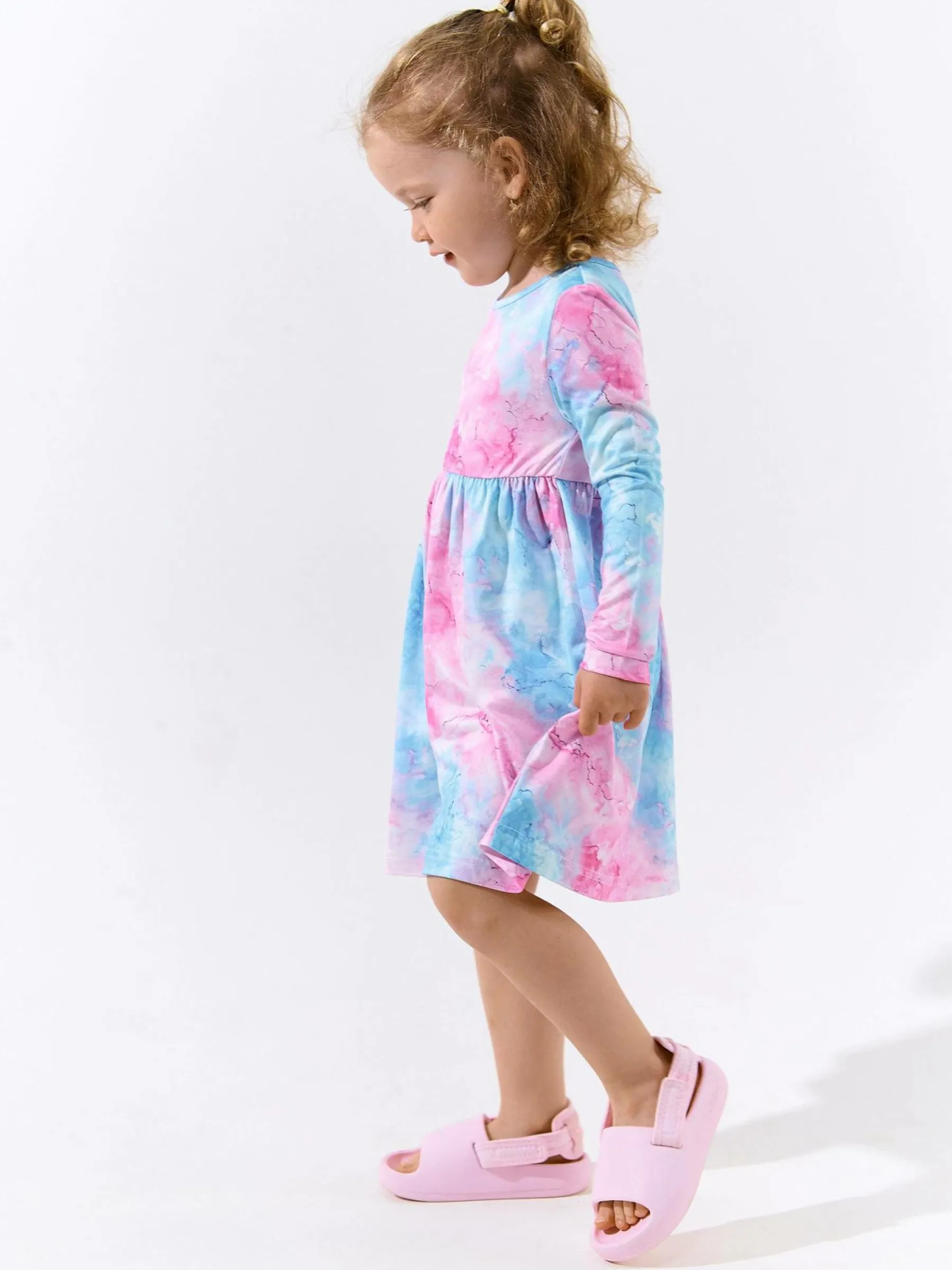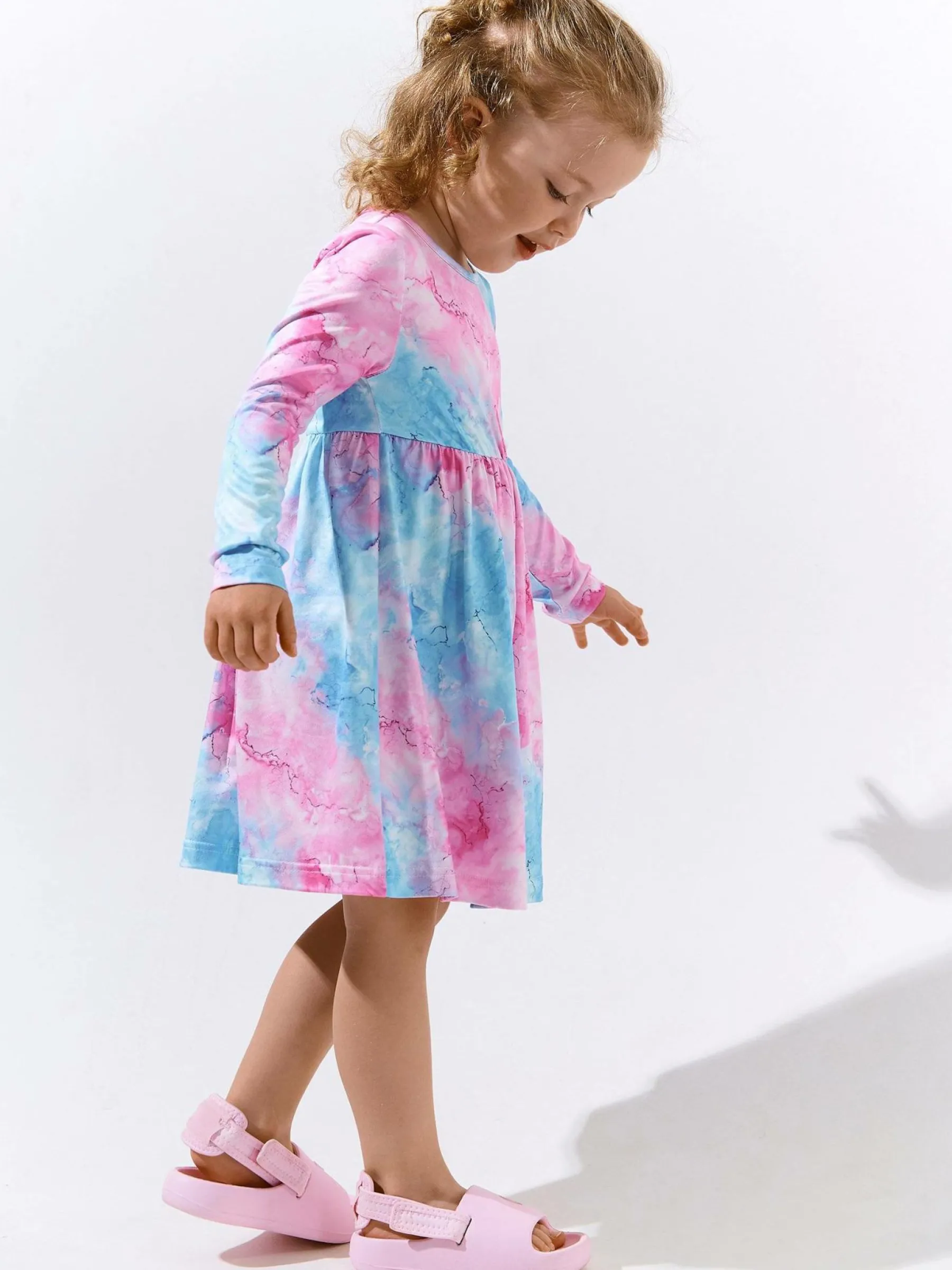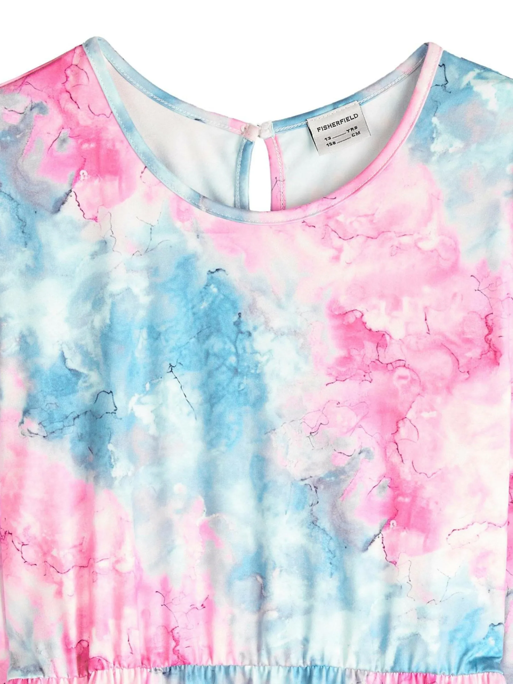 Kolor: różowyKrój: asyTyp: sukienkaRekaw: długi rękawDługość: miniPattern style: tie dyeDetal: nad głowąMateri…