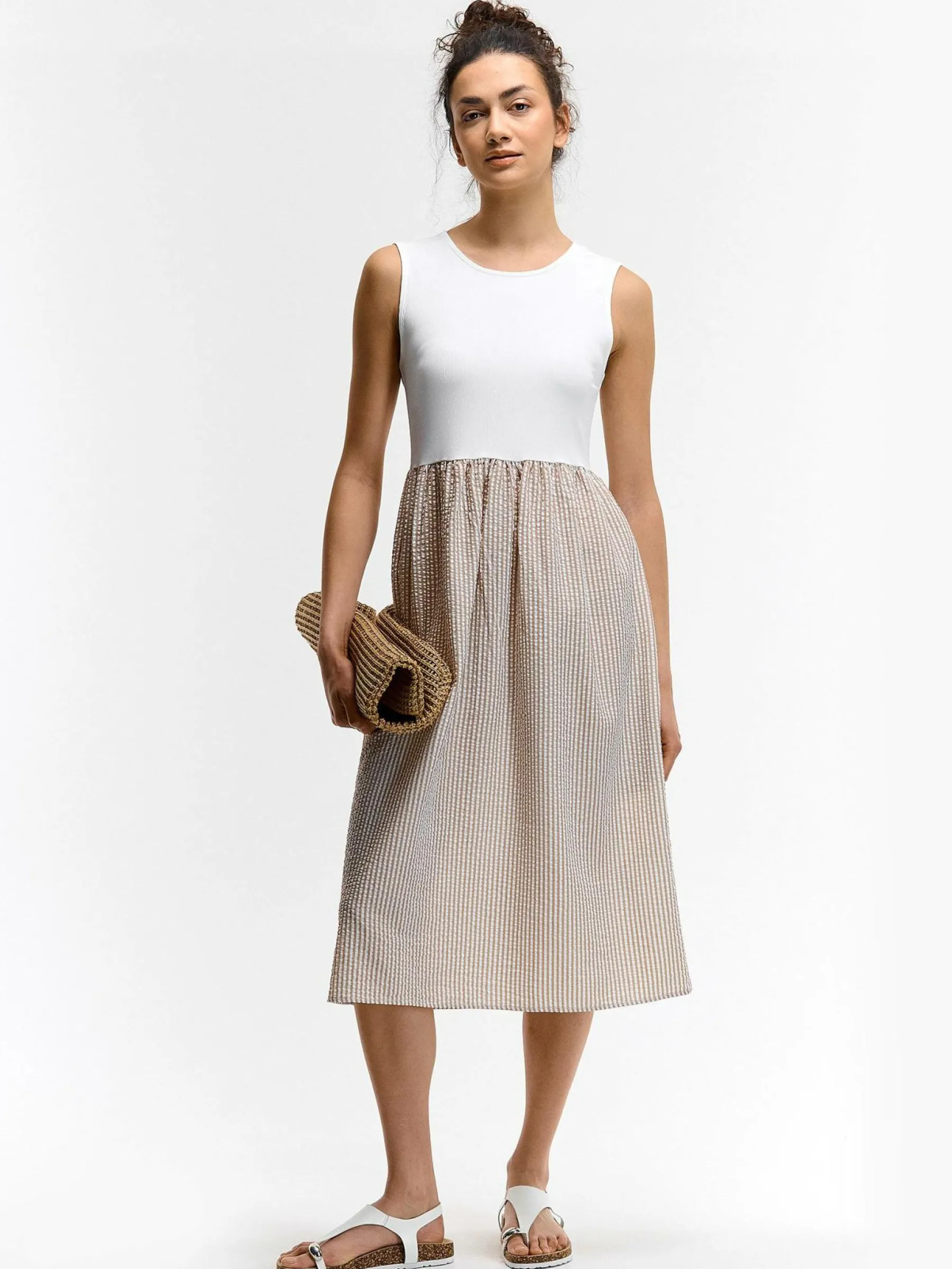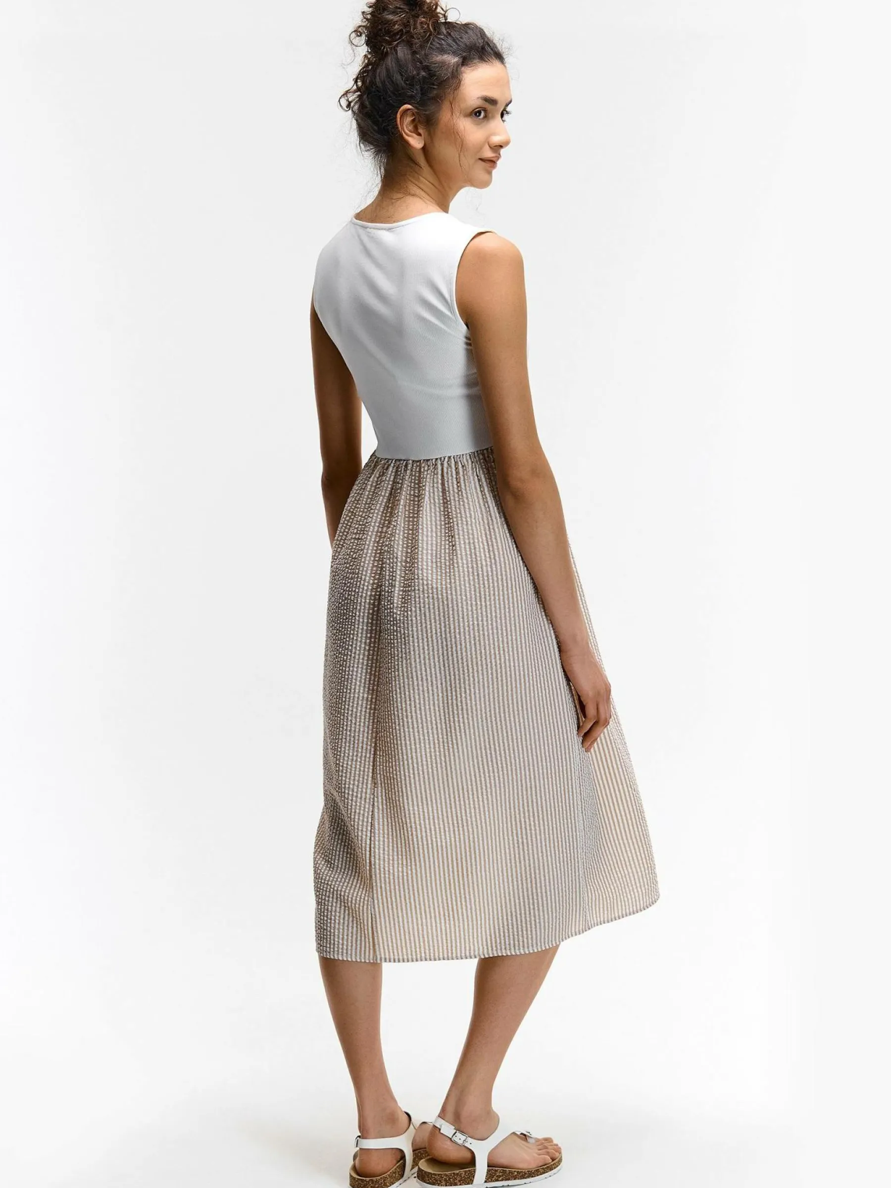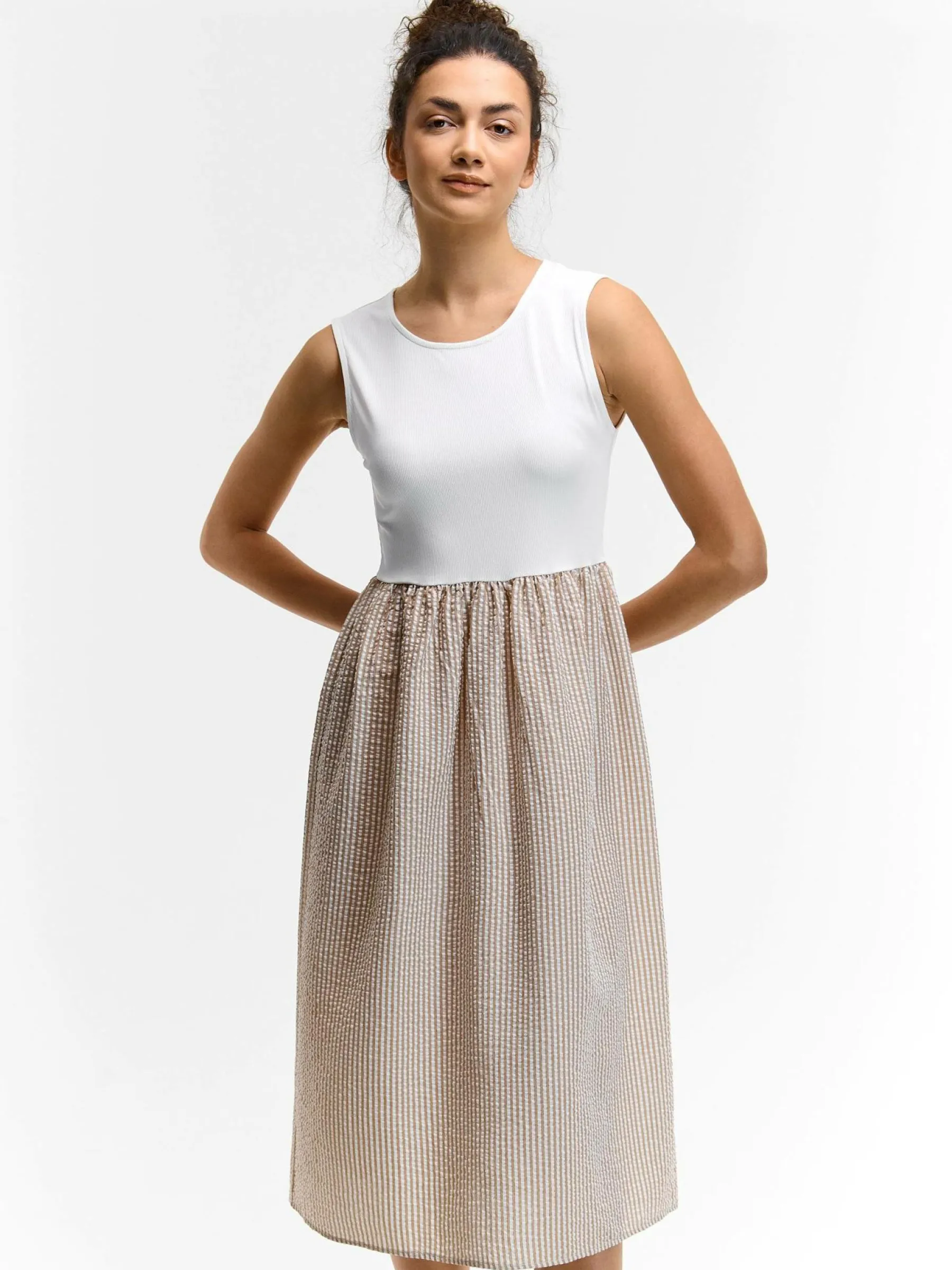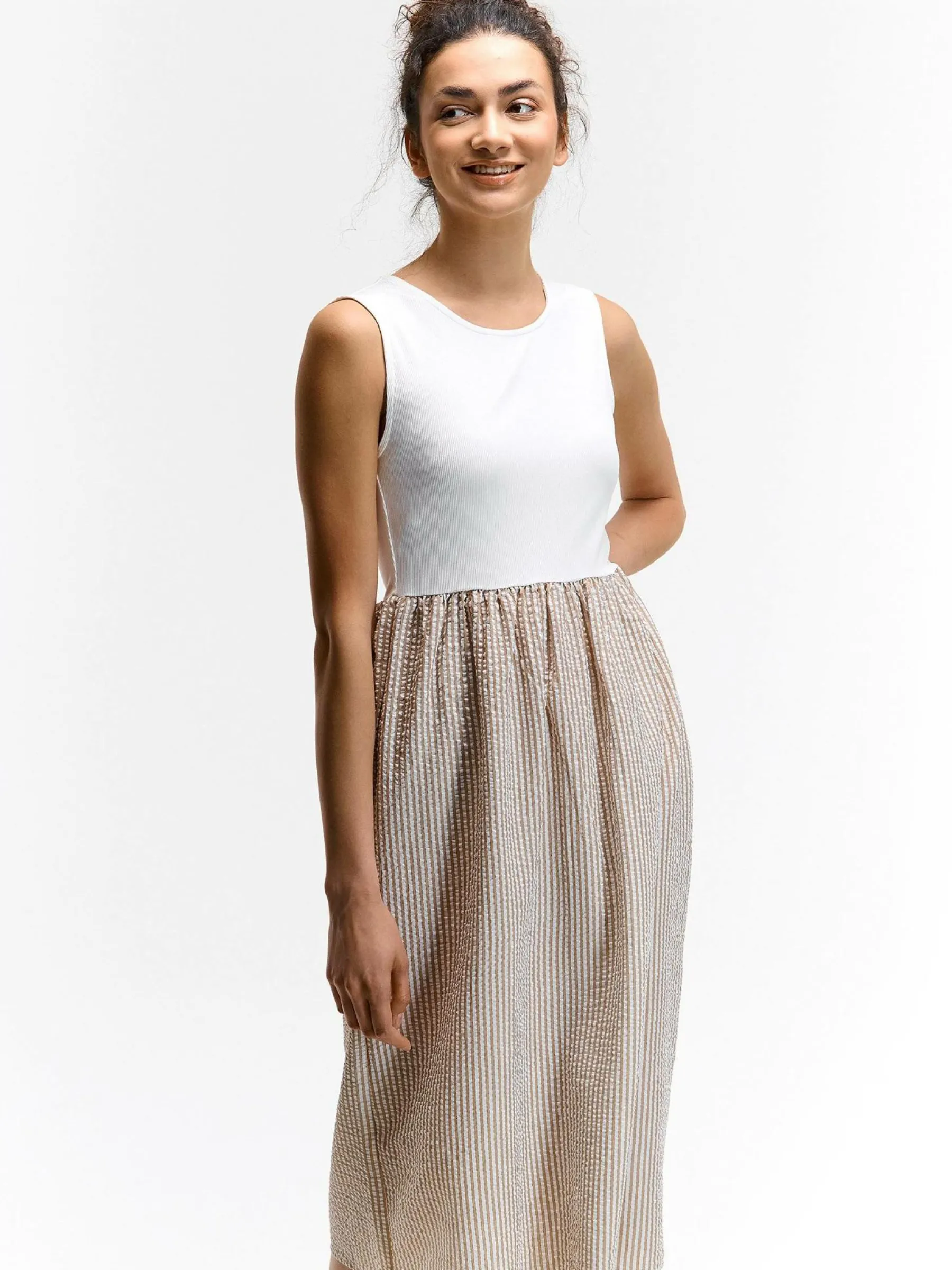 Zdjęcia z modelką mogą nie odpowiadać rzeczywistemu kolorowi produktu.Kolor: beżowyKrój: asyTyp: sukienkaRekaw: be…