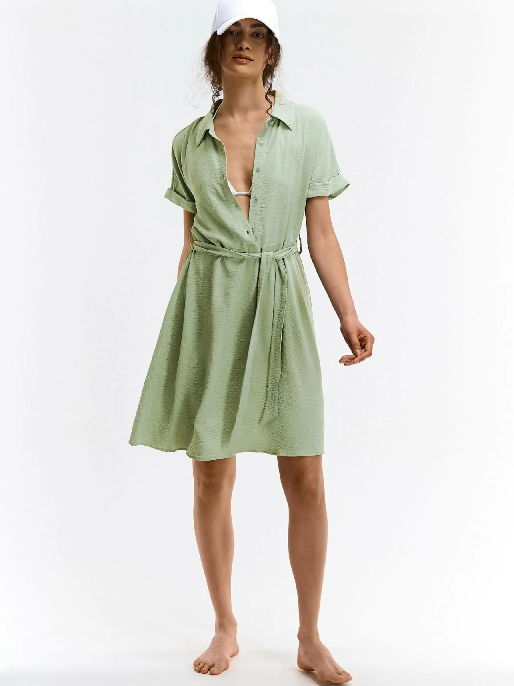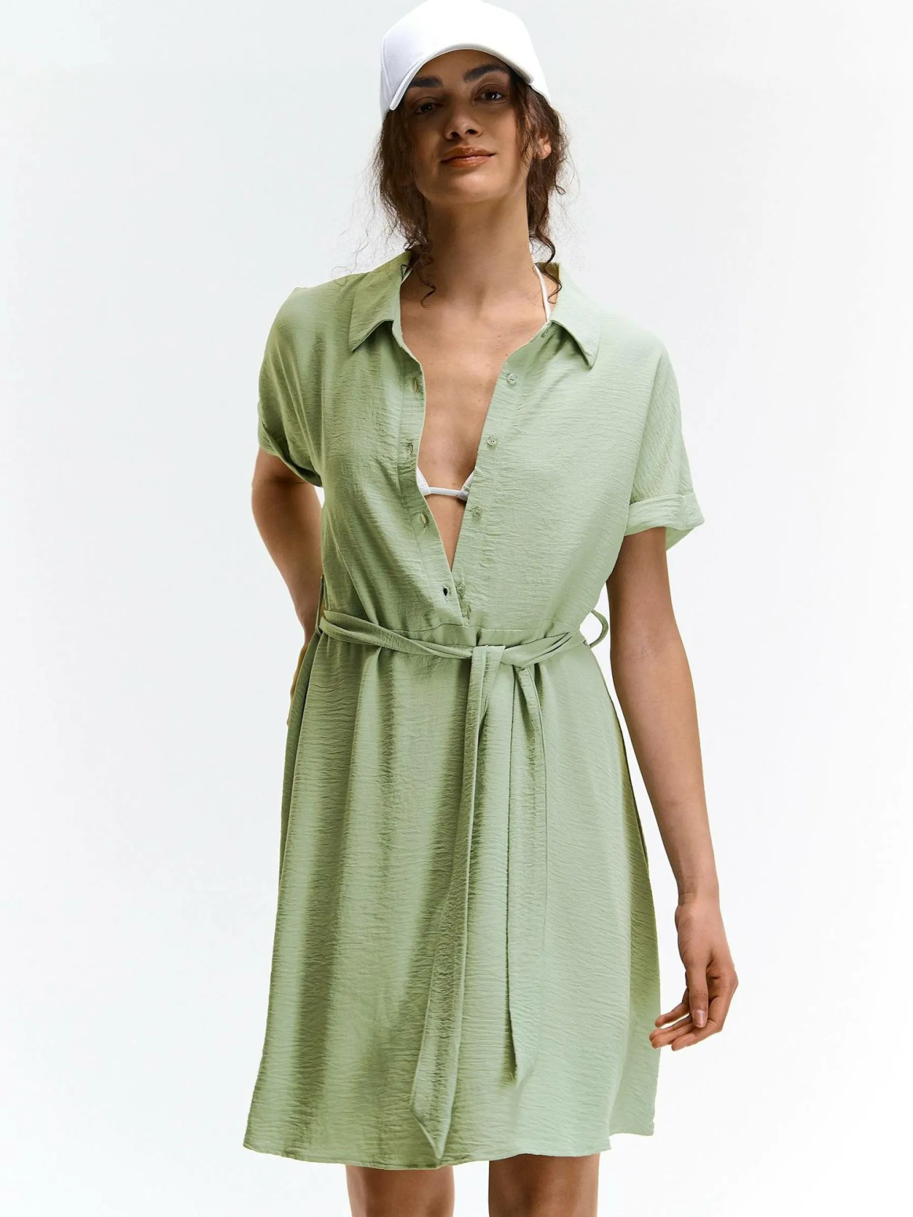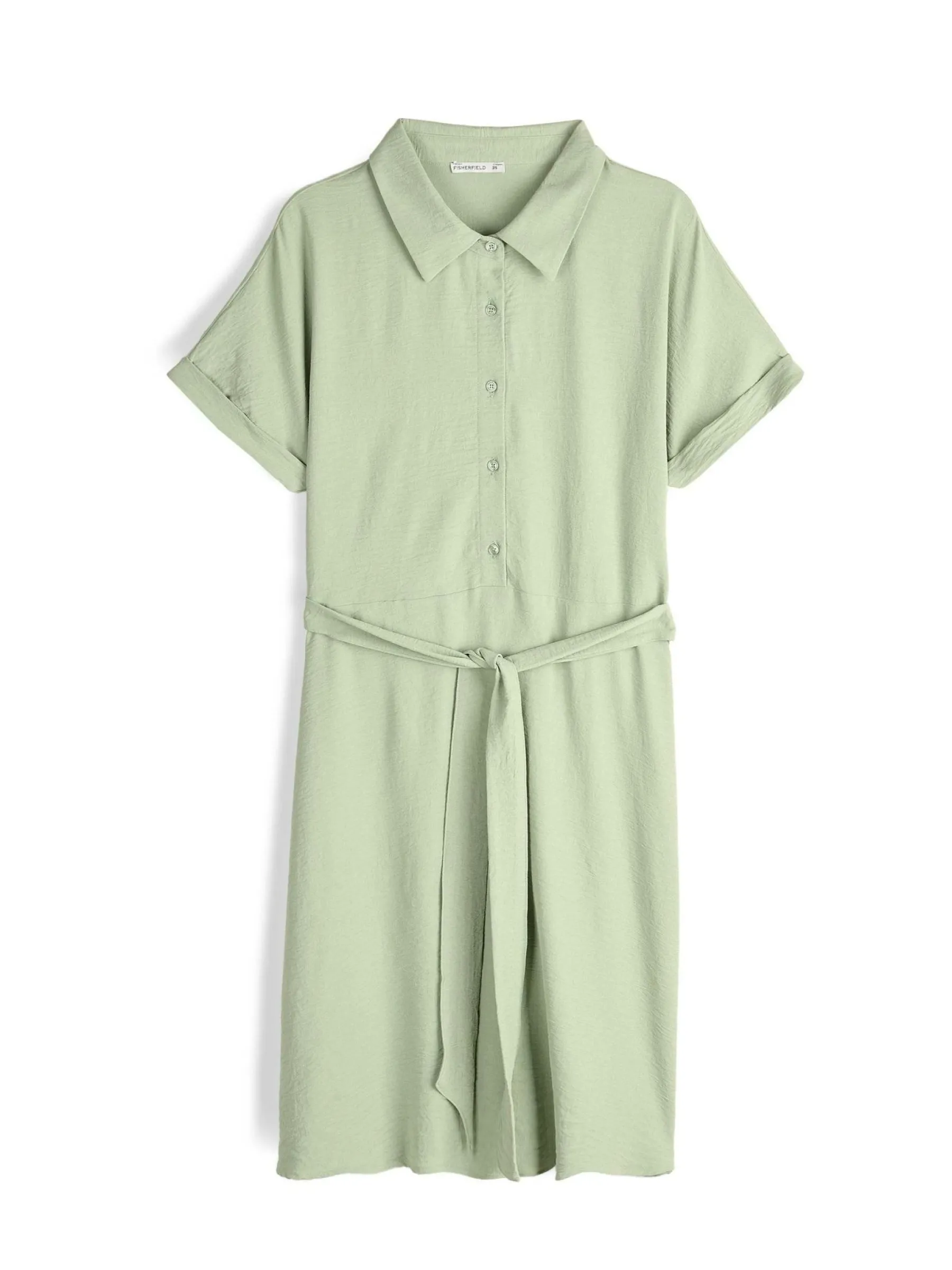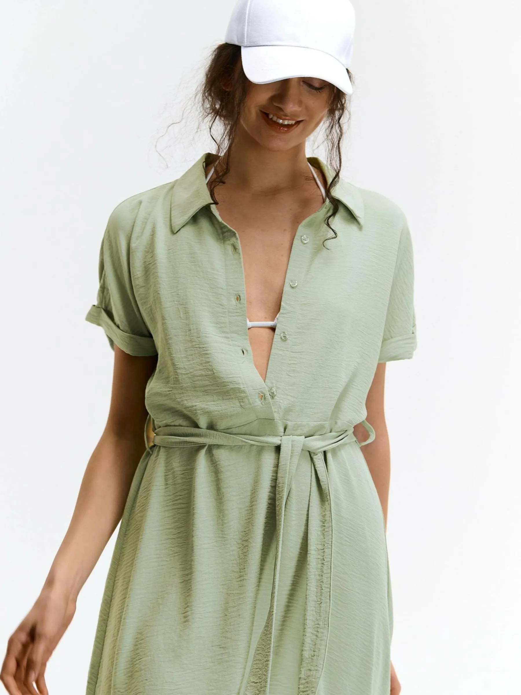 Kolor: zielonyKrój: koszuloweTyp: sukienkaRekaw: krótki rękawDługość: miniPattern style: pojedynczy kolorDetal: na…