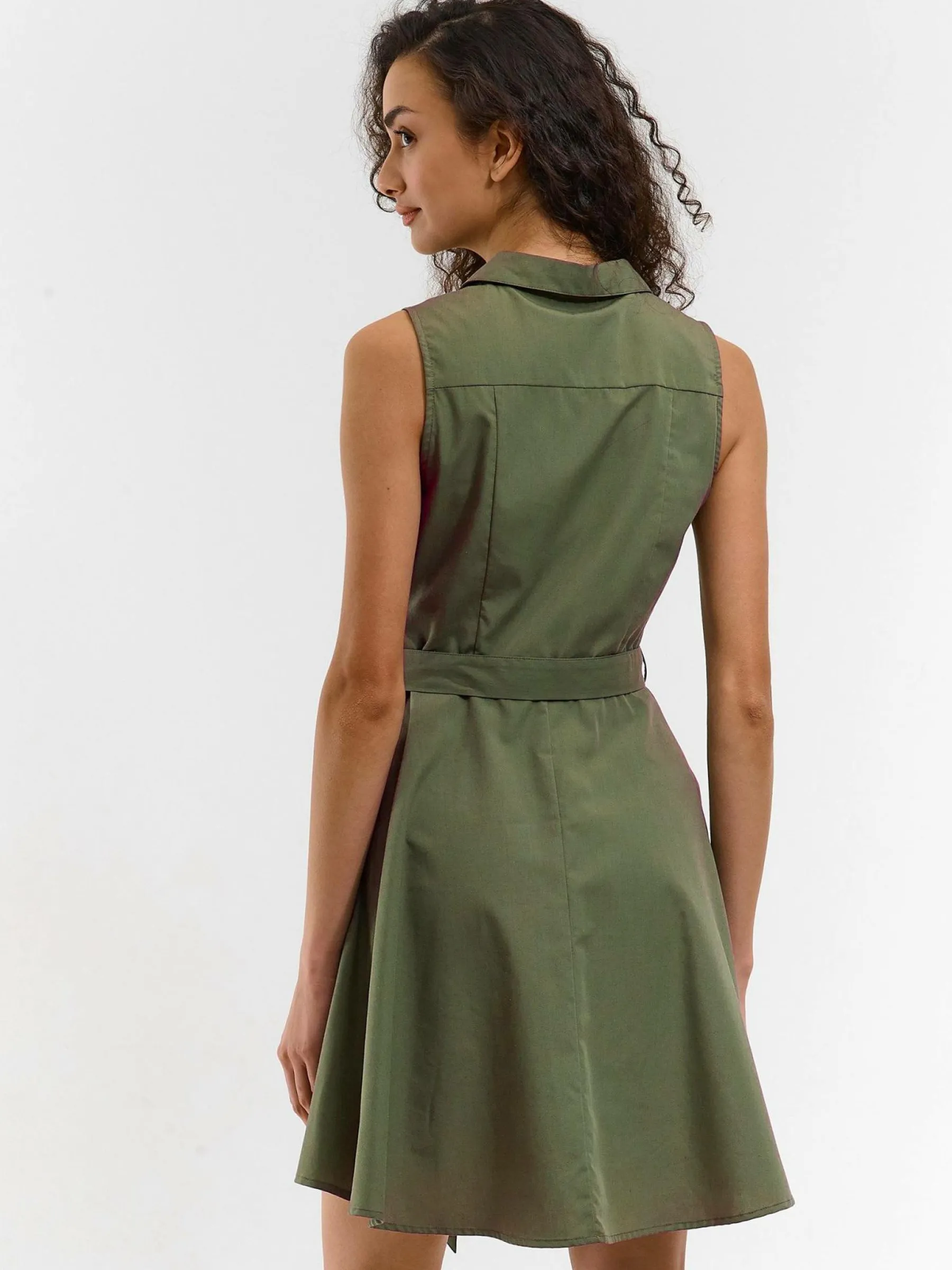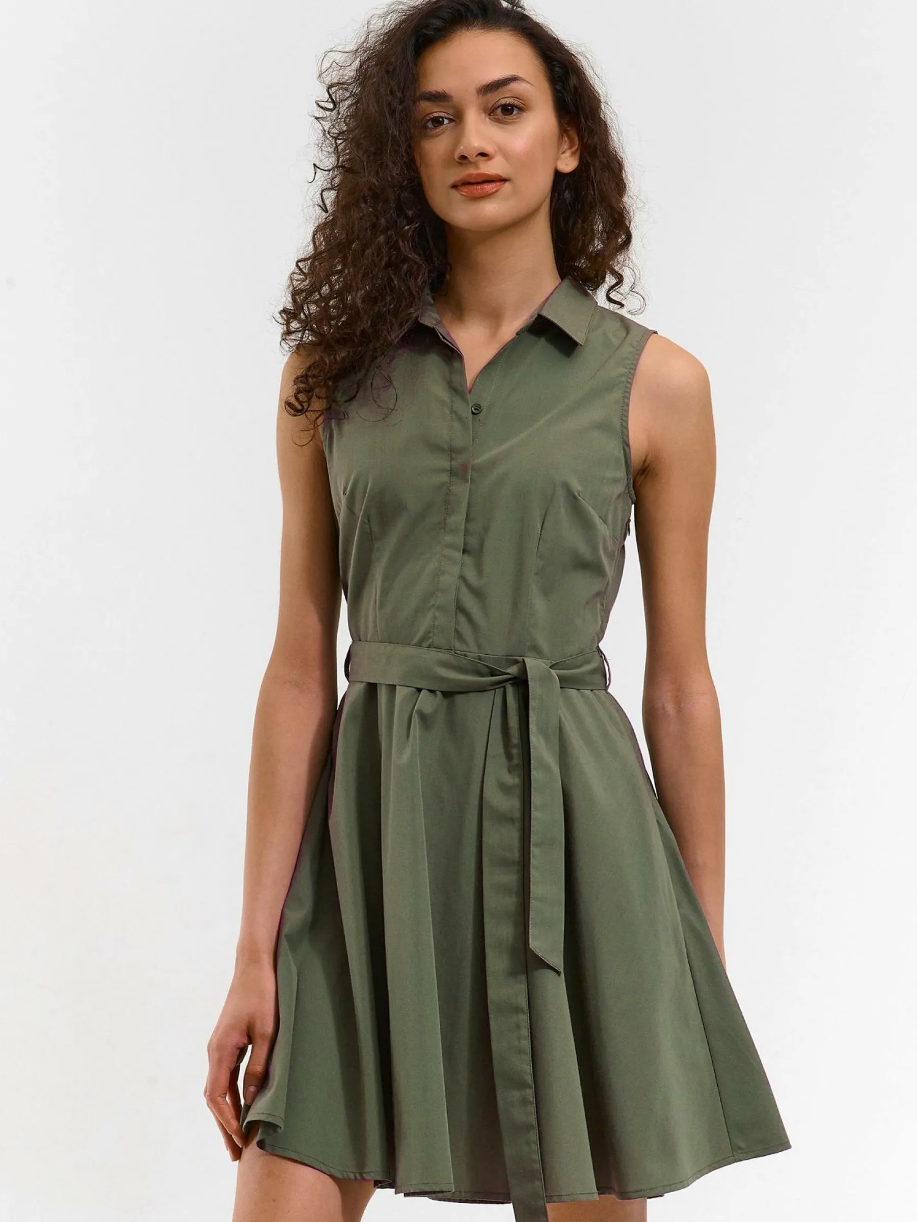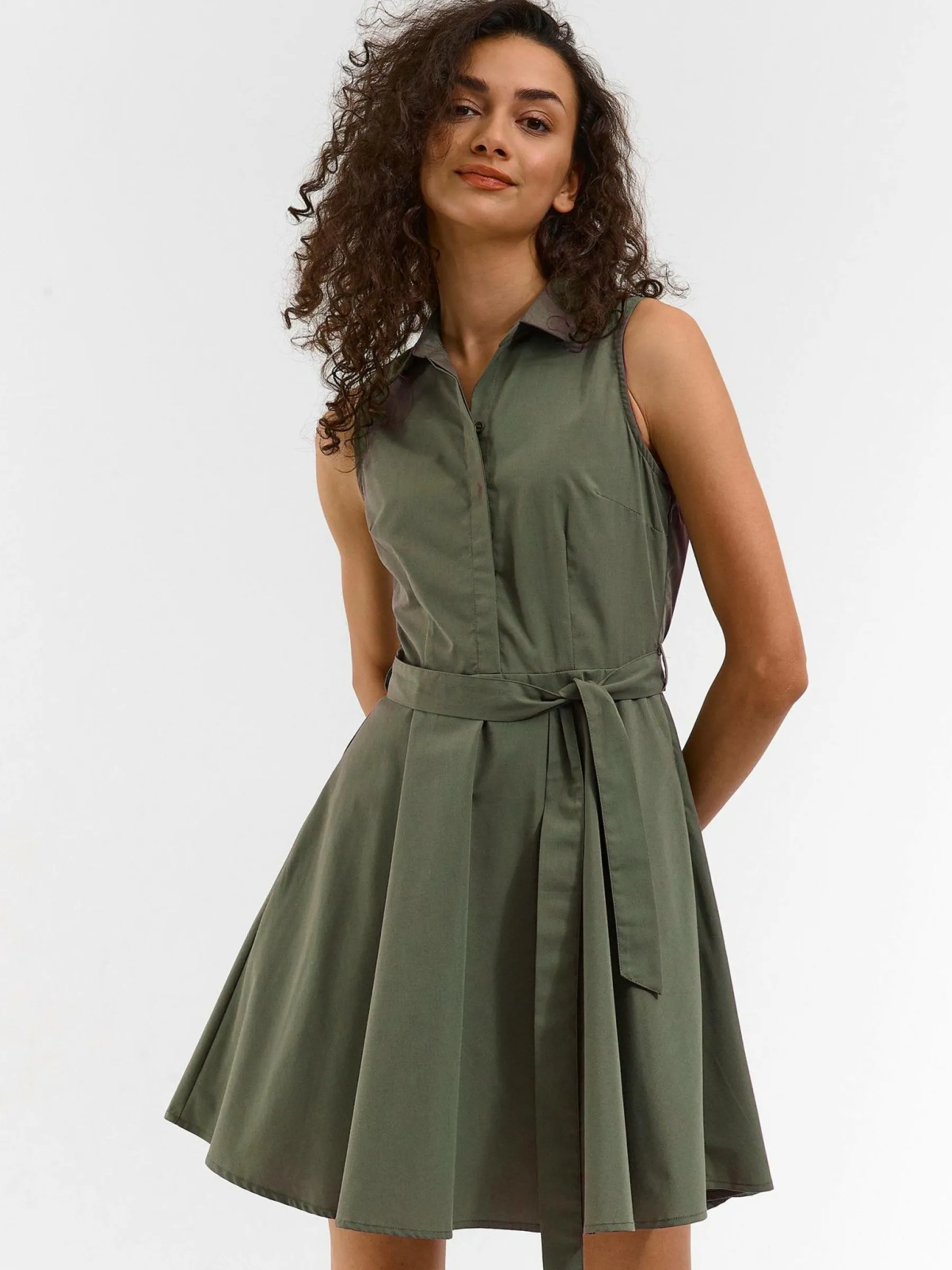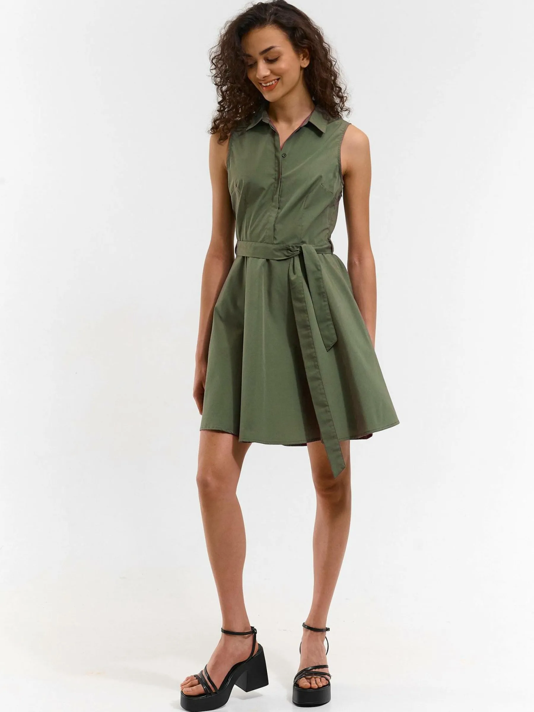 Zdjęcia z modelką mogą nie odpowiadać rzeczywistemu kolorowi produktu.Kolor: khakiKrój: asyTyp: sukienkaRekaw: bez …