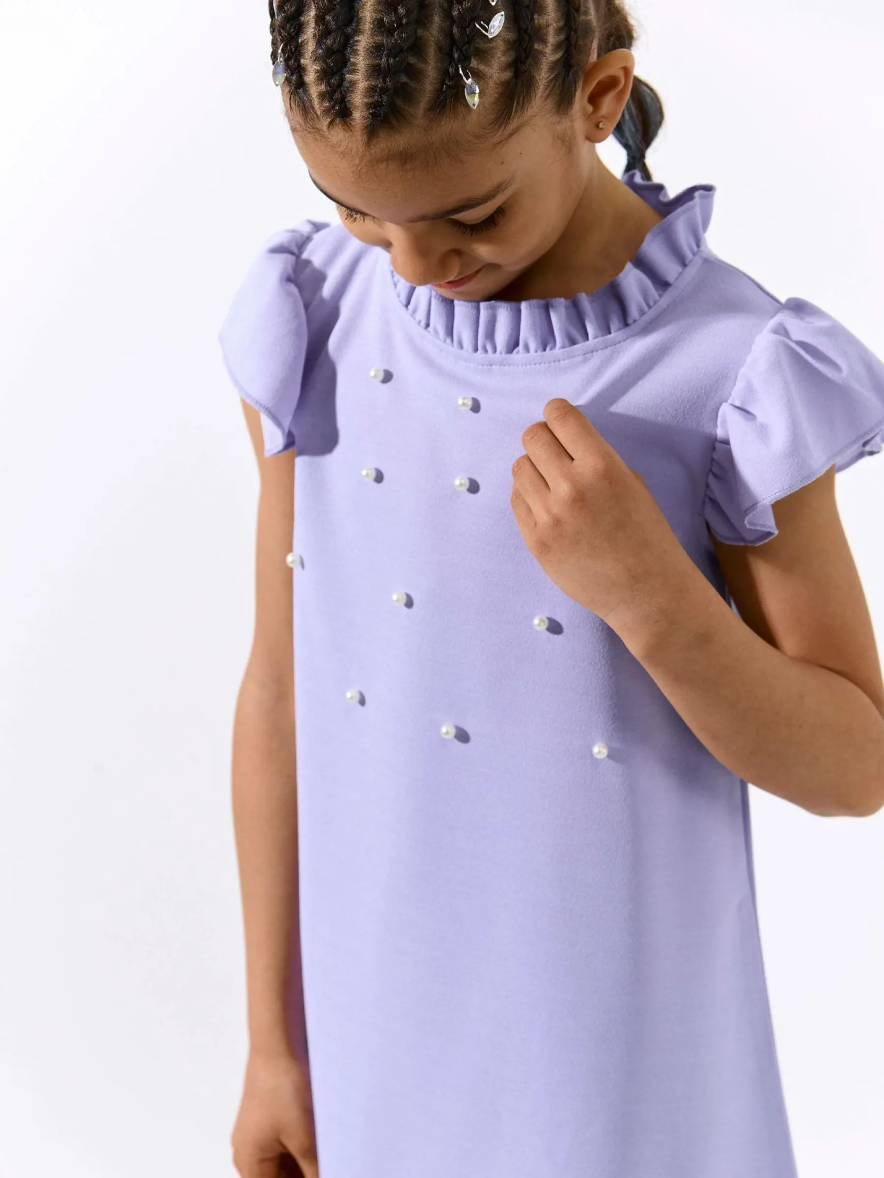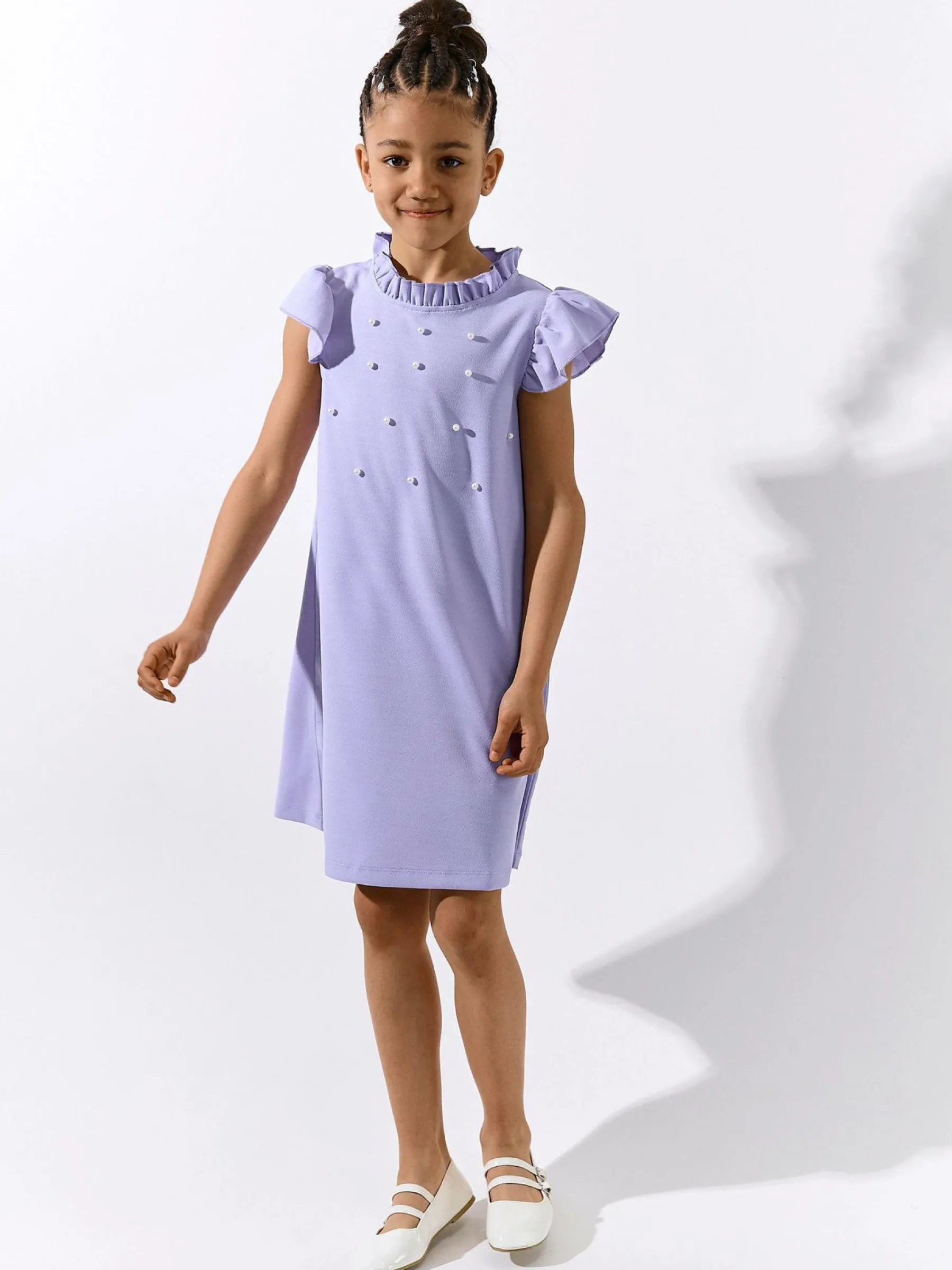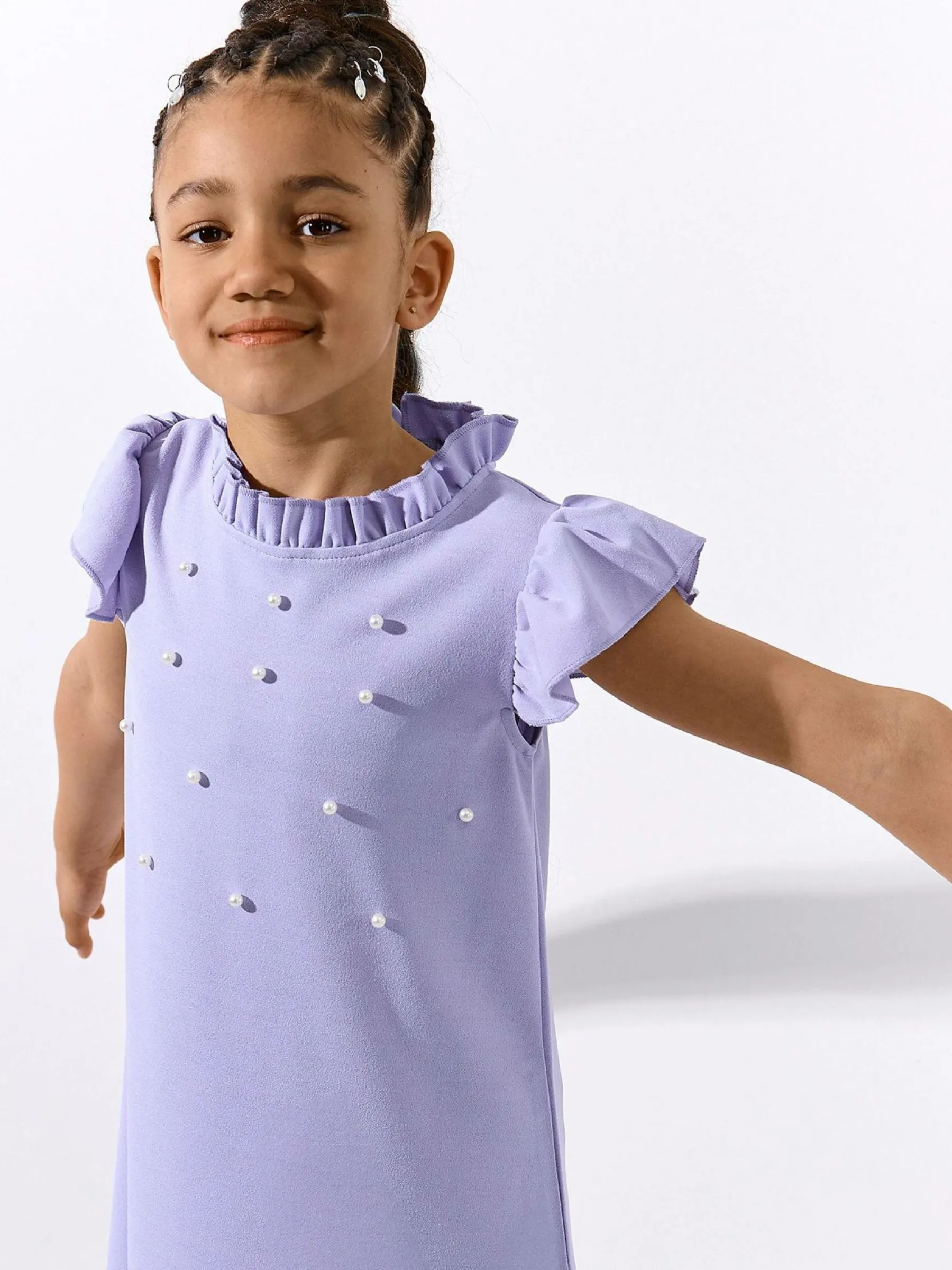 Kolor: purpurowyKrój: z falbanąTyp: sukienkaRekaw: krótki rękawDługość: miniPattern style: pojedynczy kolorDetal:…
