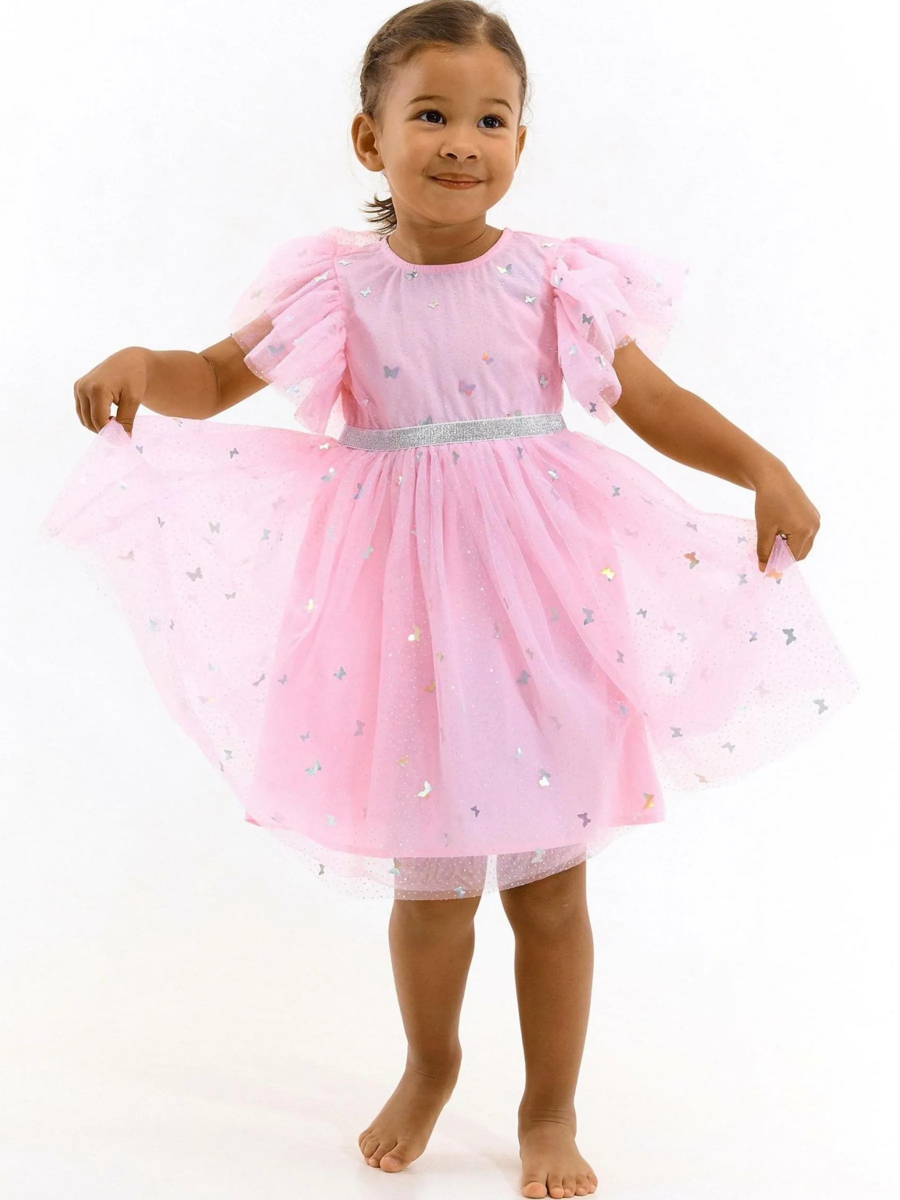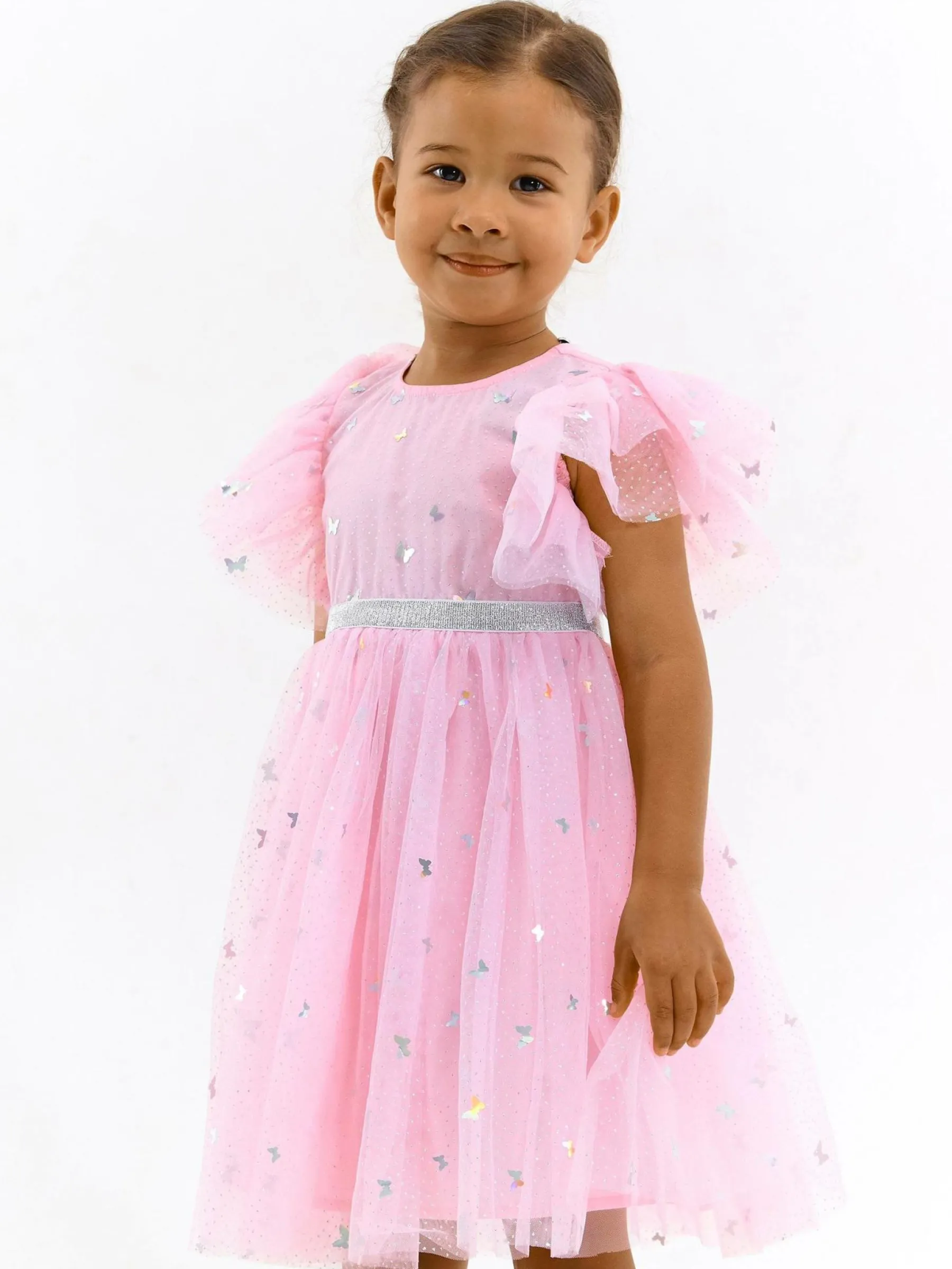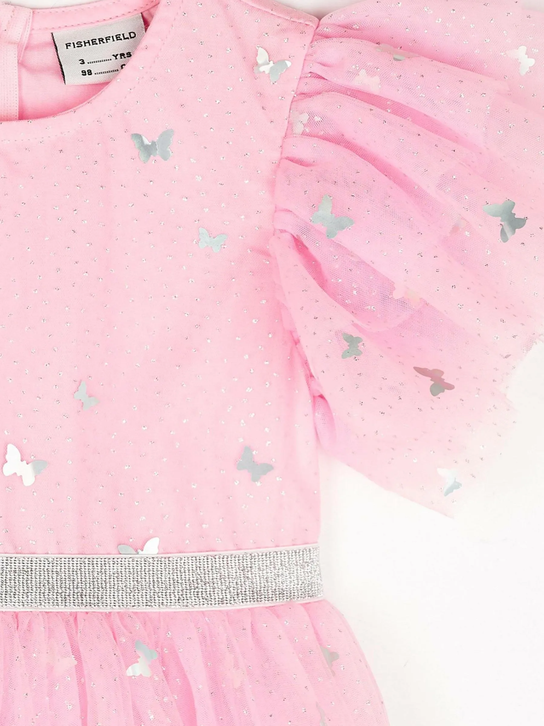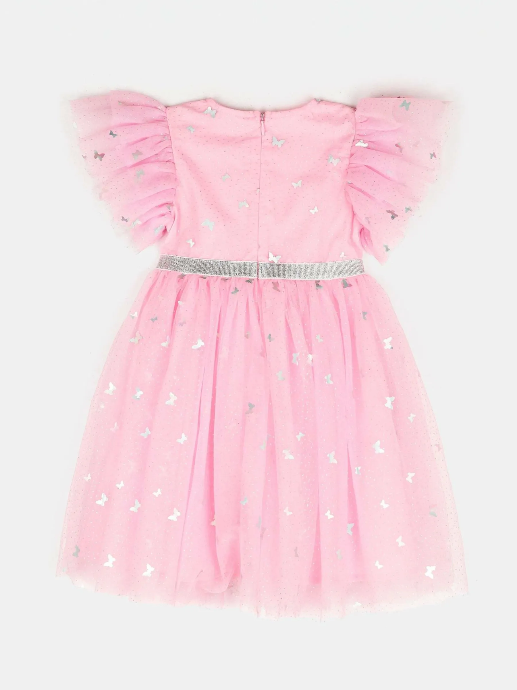 Kolor: różowyKrój: asy, z falbanąTyp: sukienkaRekaw: krótki rękawDługość: miniPattern style: pojedynczy kolorDe…