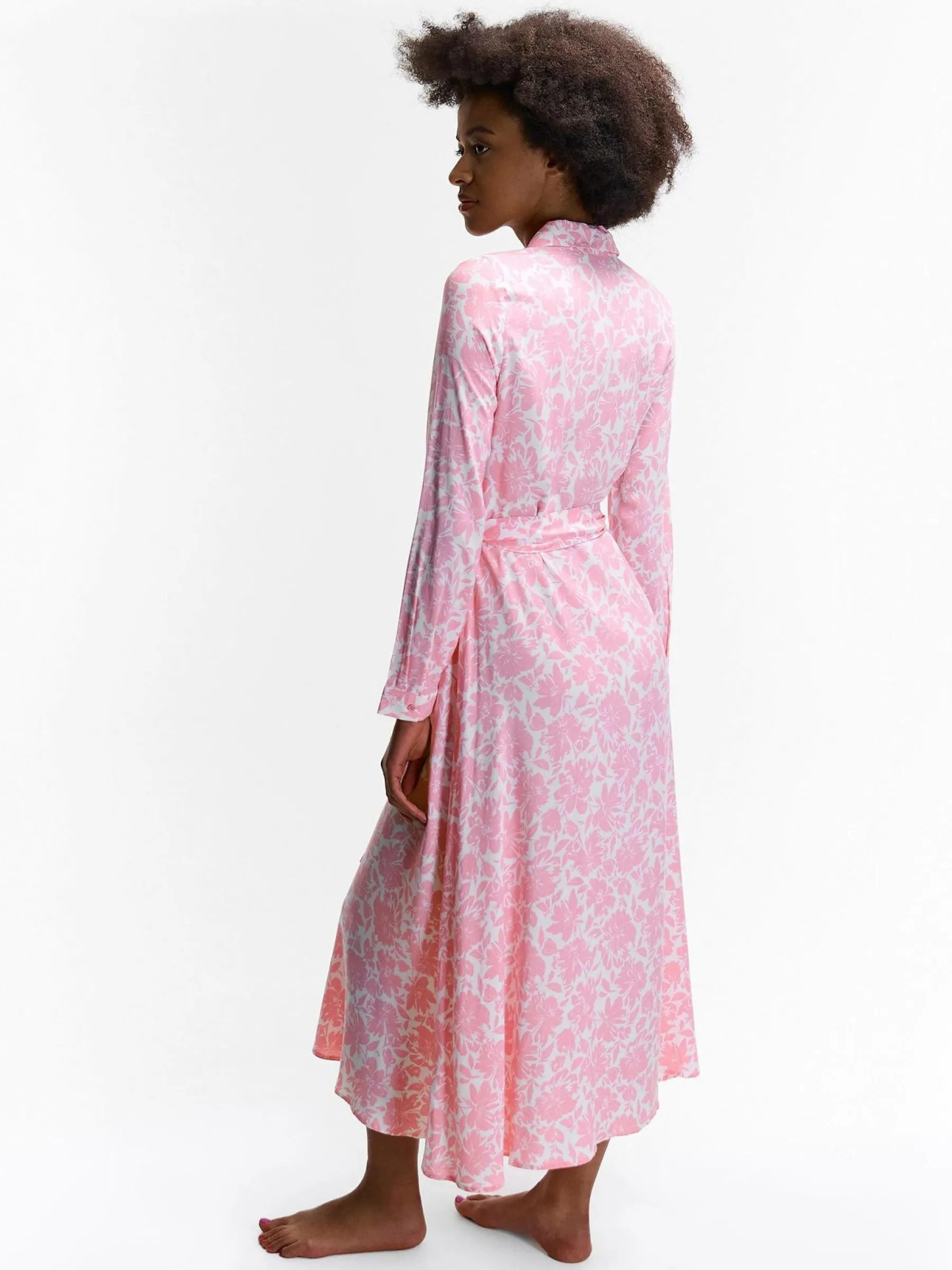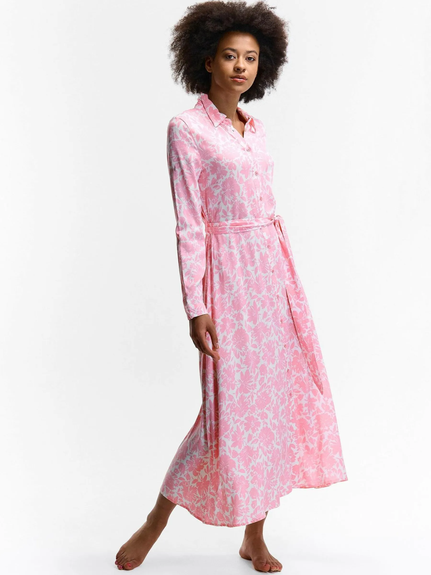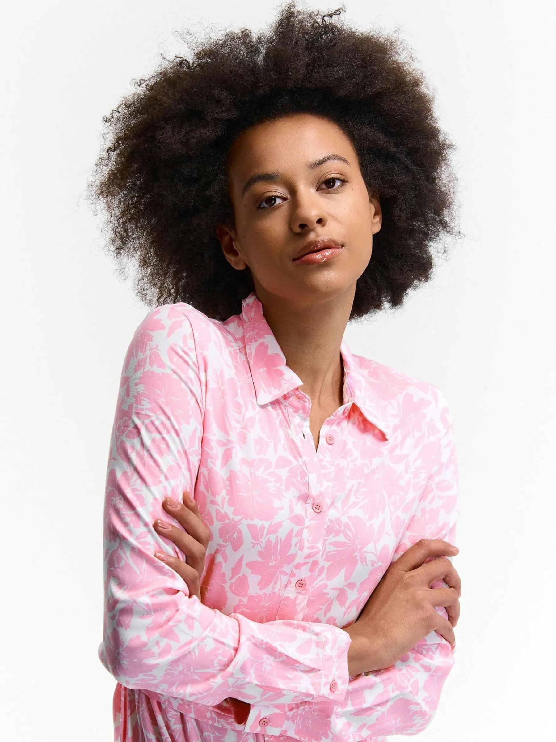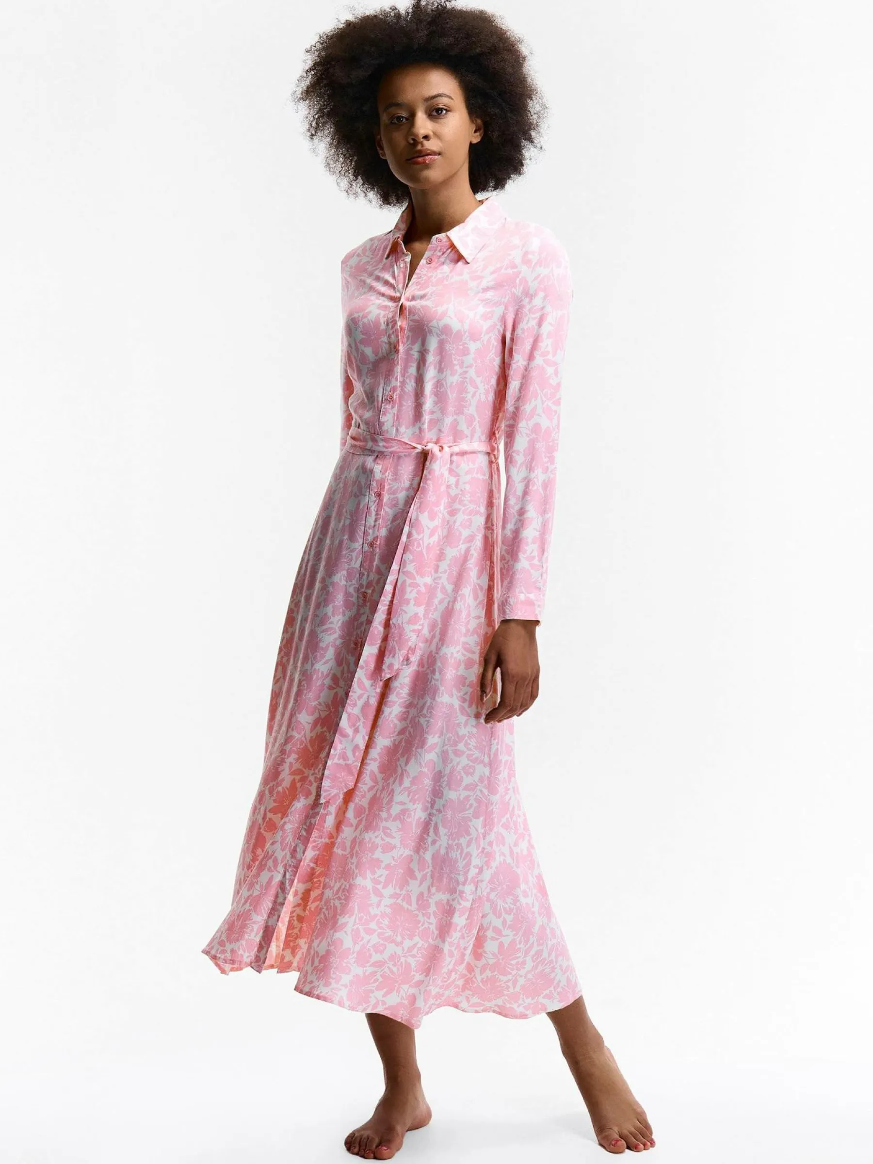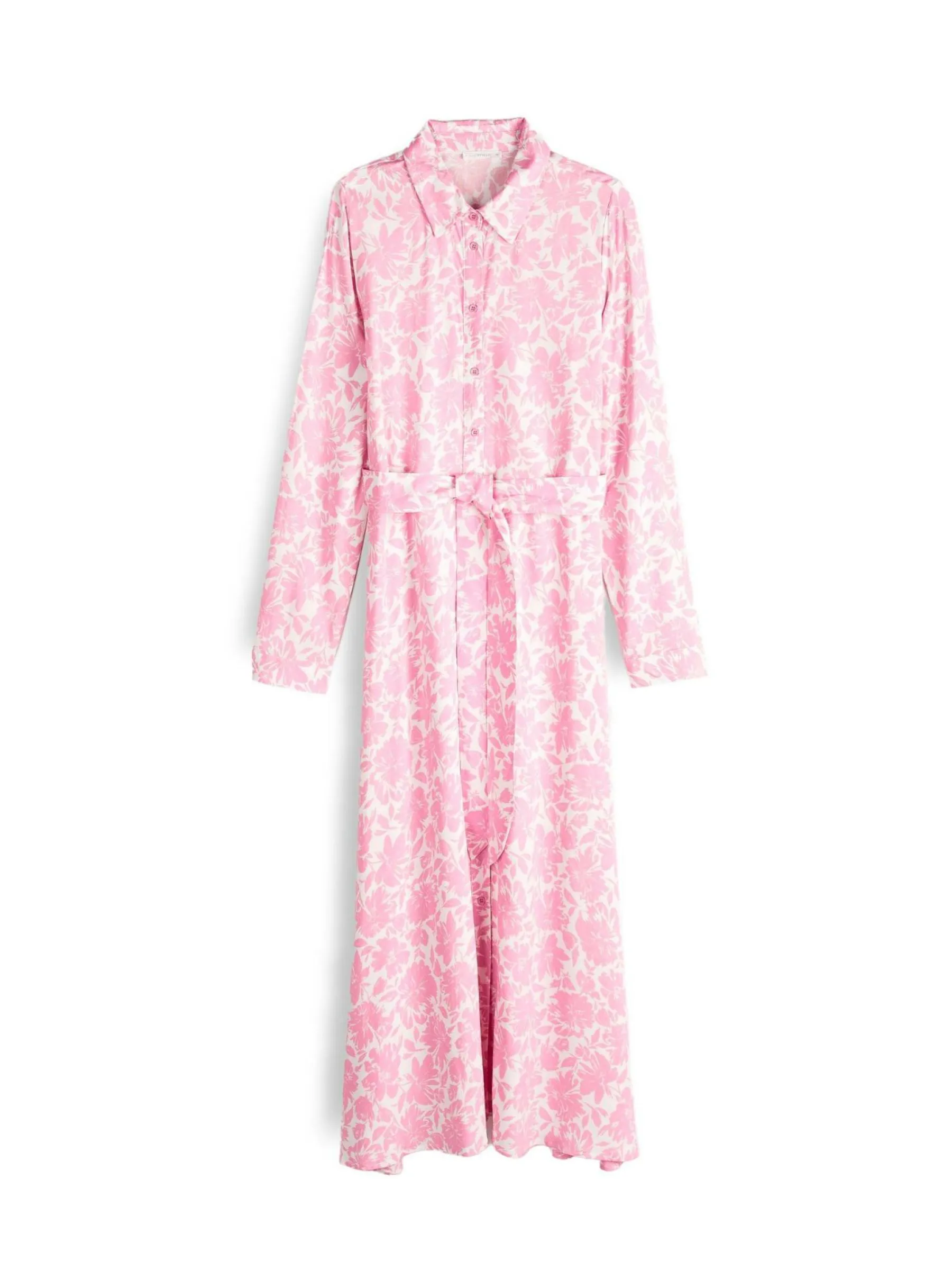 Kolor: różowyKrój: koszuloweTyp: sukienkaRekaw: długi rękawDługość: midiPattern style: z nadrukiem, kwiatoweDeta…