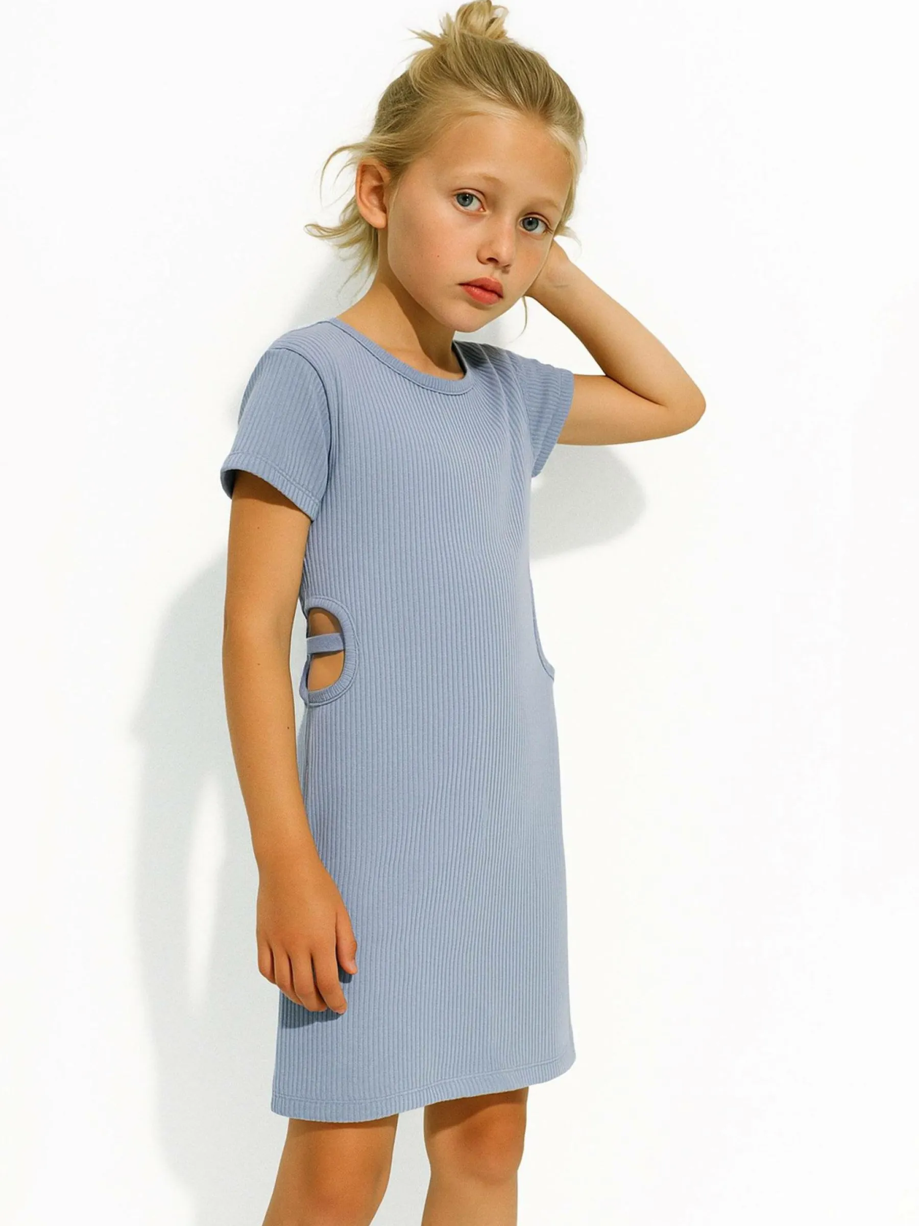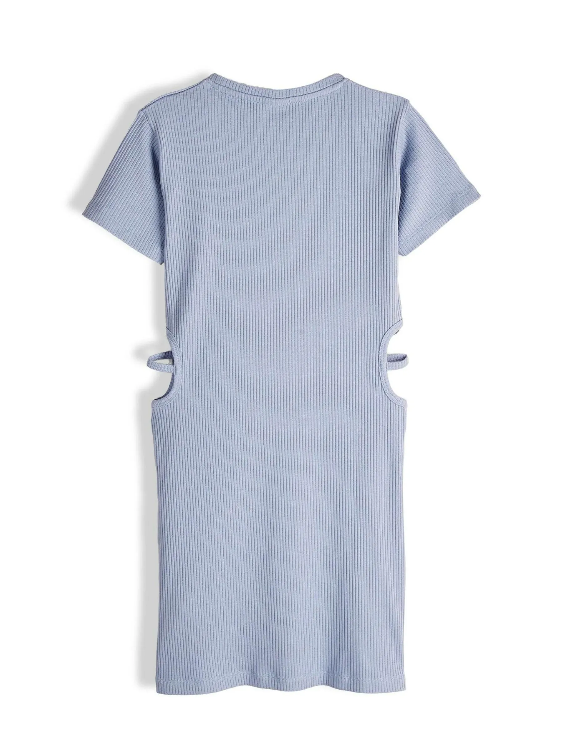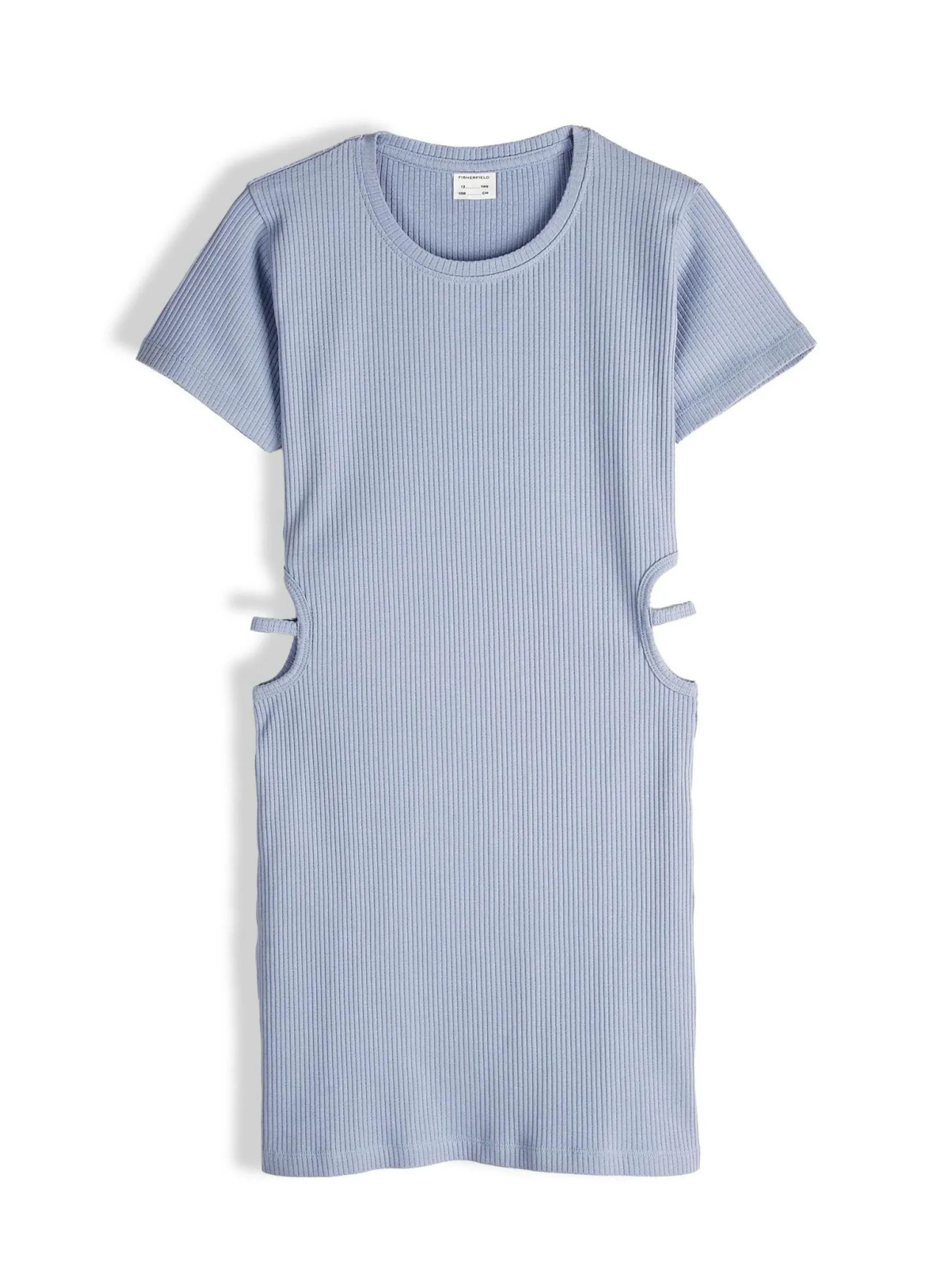 Kolor: niebieskiKrój: regularTyp: sukienkaRekaw: krótki rękawDługość: miniPattern style: pojedynczy kolorDetal: na…
