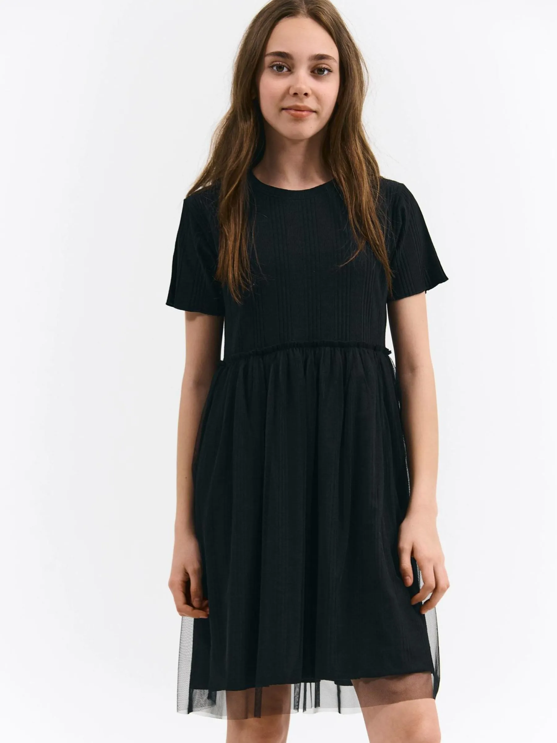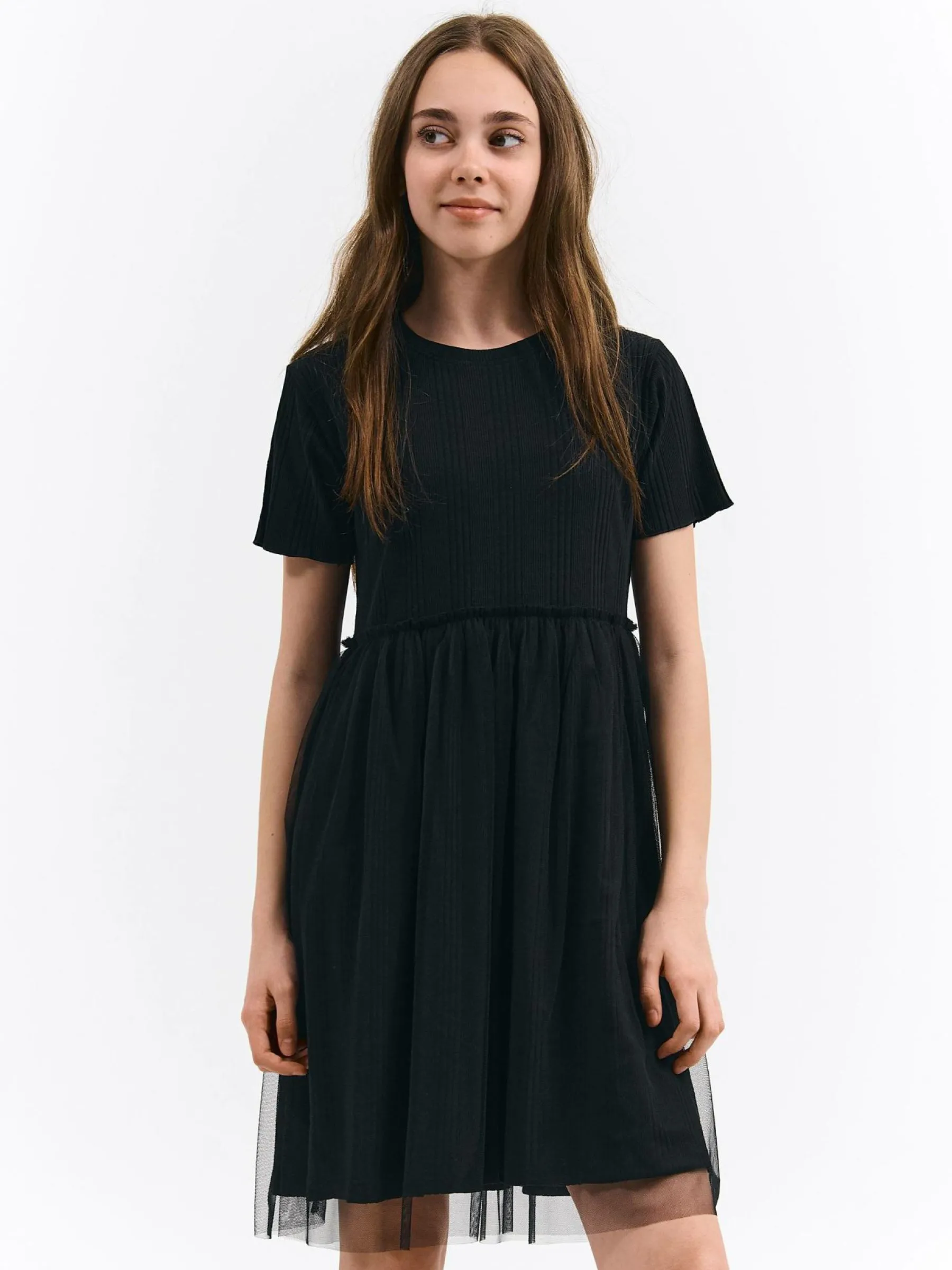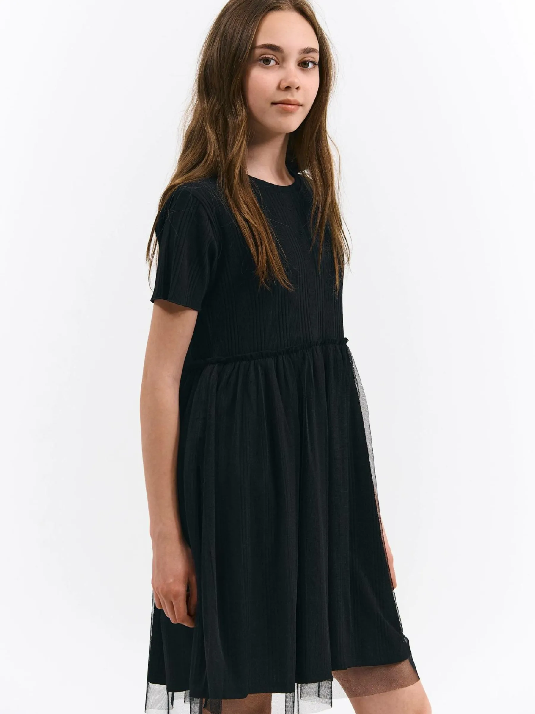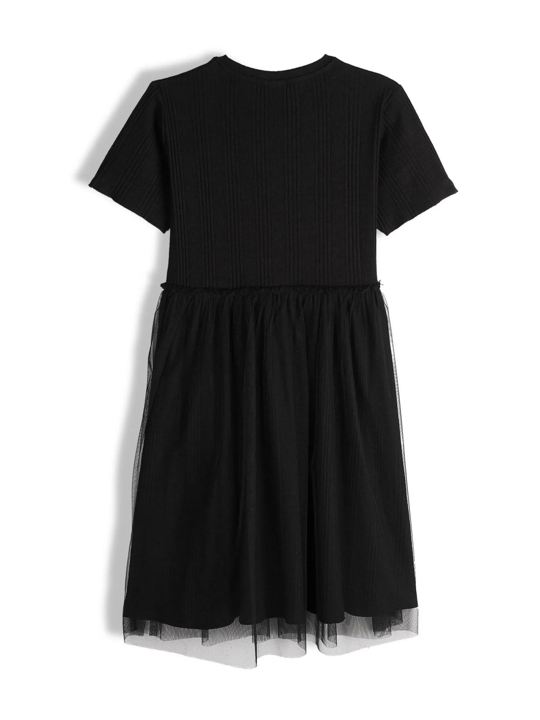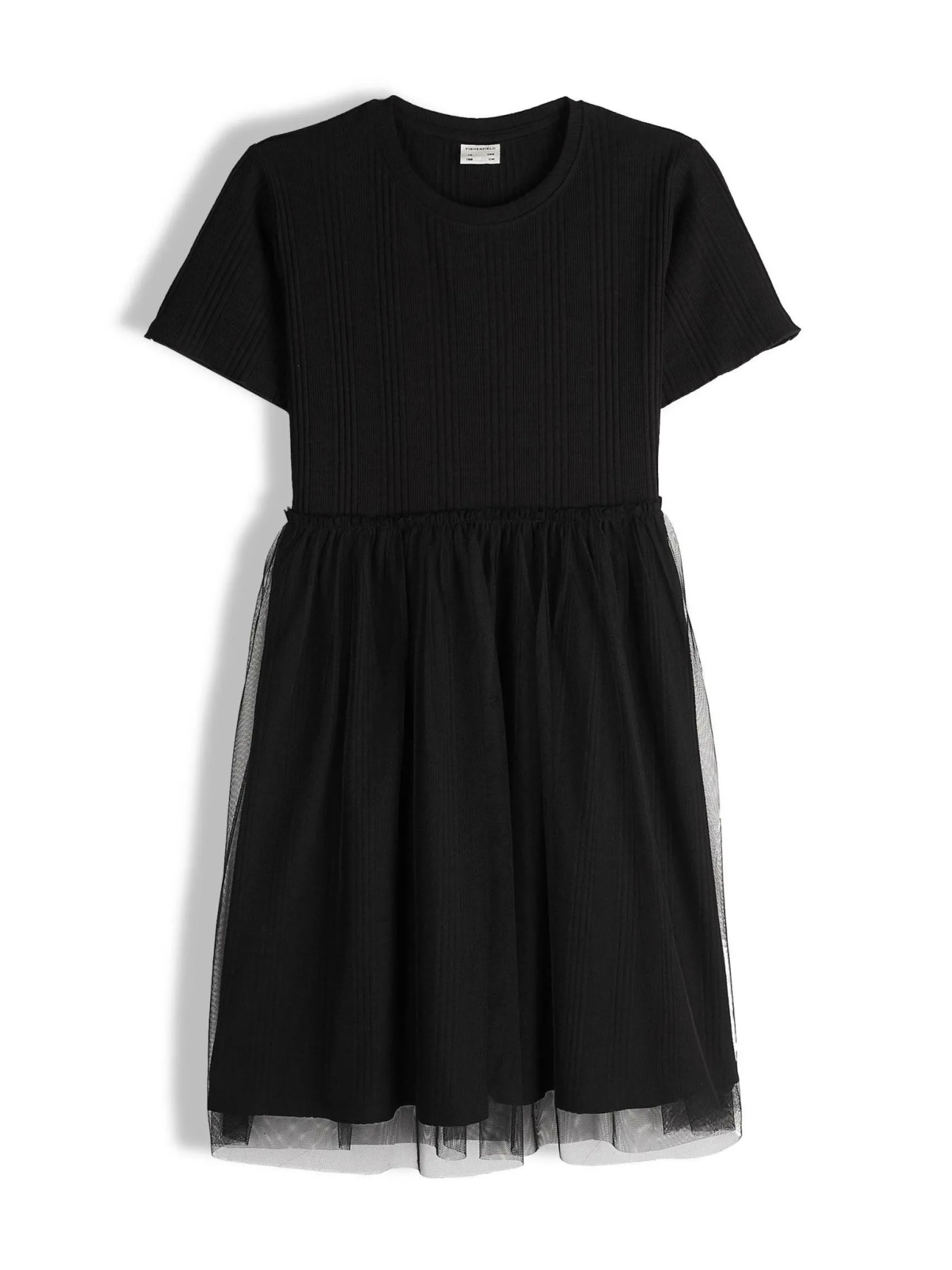 Kolor: czarnyKrój: asyTyp: sukienkaRekaw: krótki rękawDługość: miniPattern style: pojedynczy kolor, żebrowanyDeta…