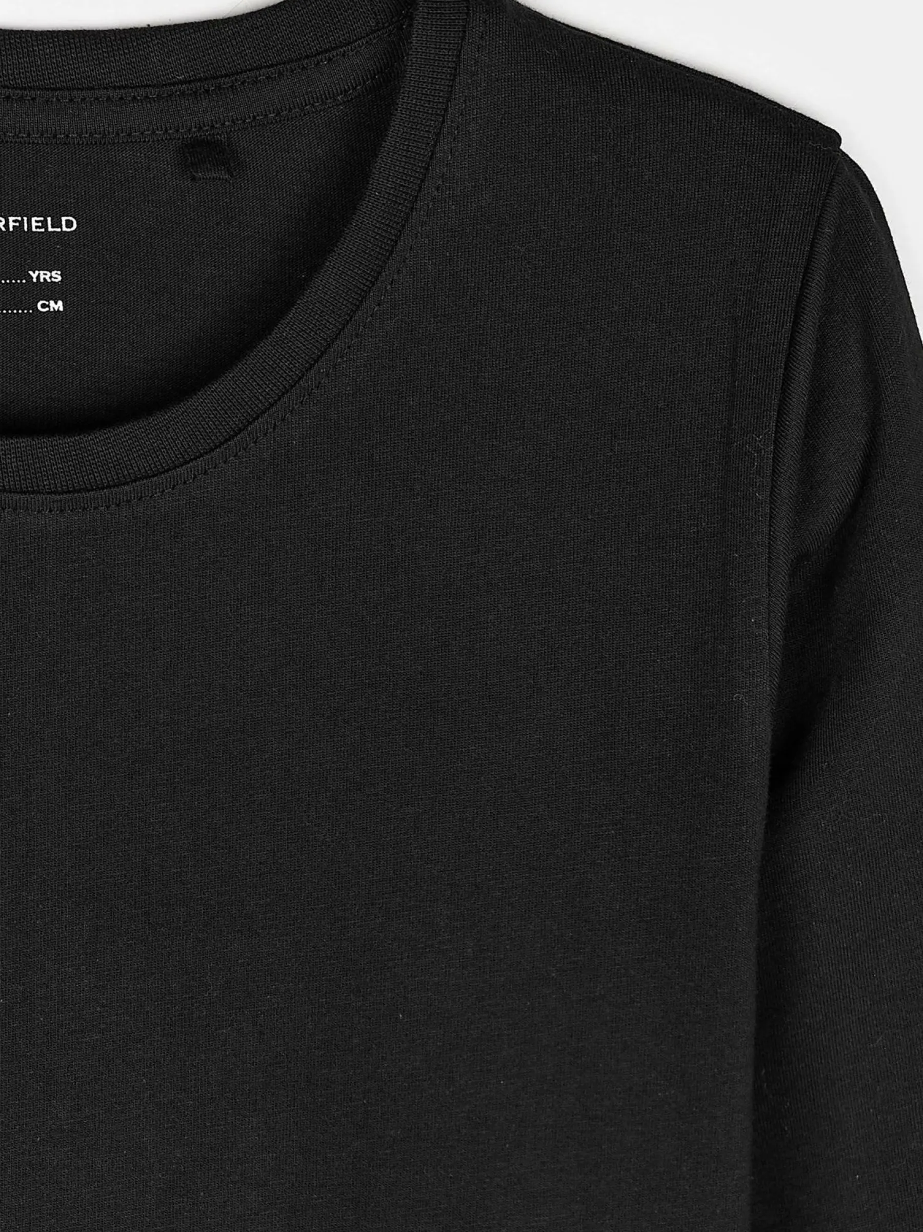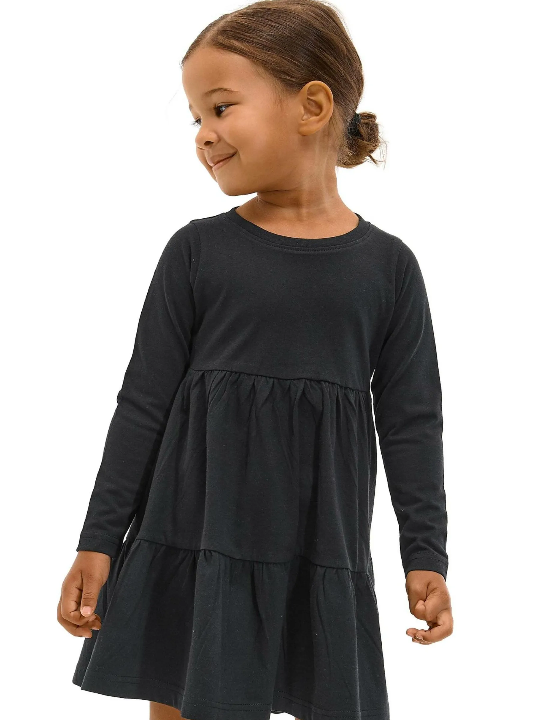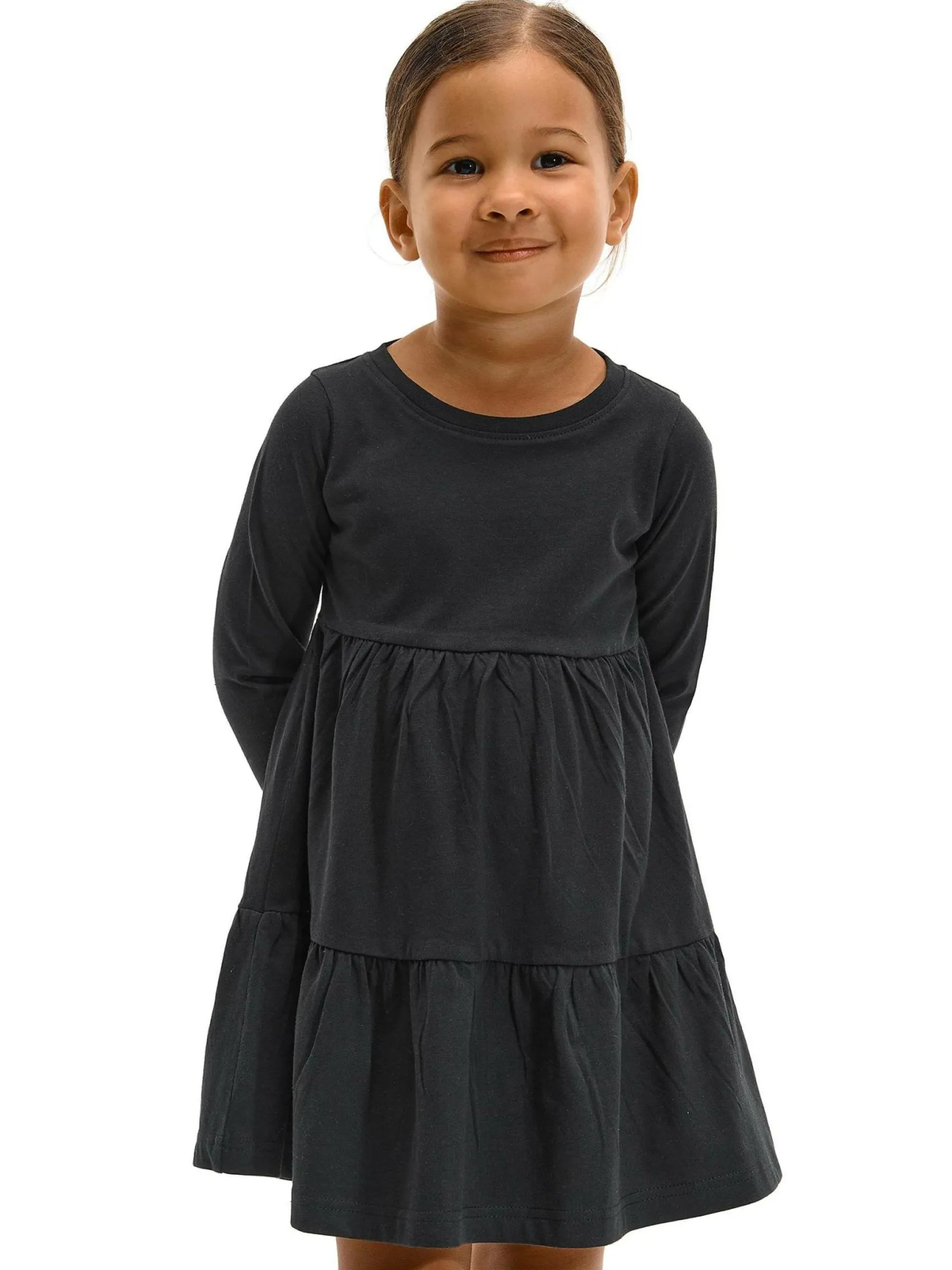 Kolor: czarnyKrój: z falbanąTyp: sukienkaRekaw: długi rękawDługość: miniPattern style: pojedynczy kolorDetal: nad…