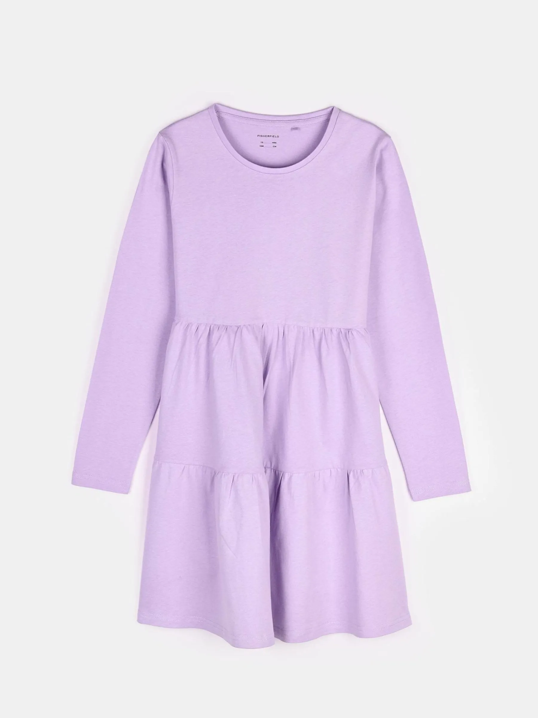 Zdjęcia z modelką mogą nie odpowiadać rzeczywistemu kolorowi produktu.Kolor: purpurowyKrój: z falbanąTyp: sukienka…