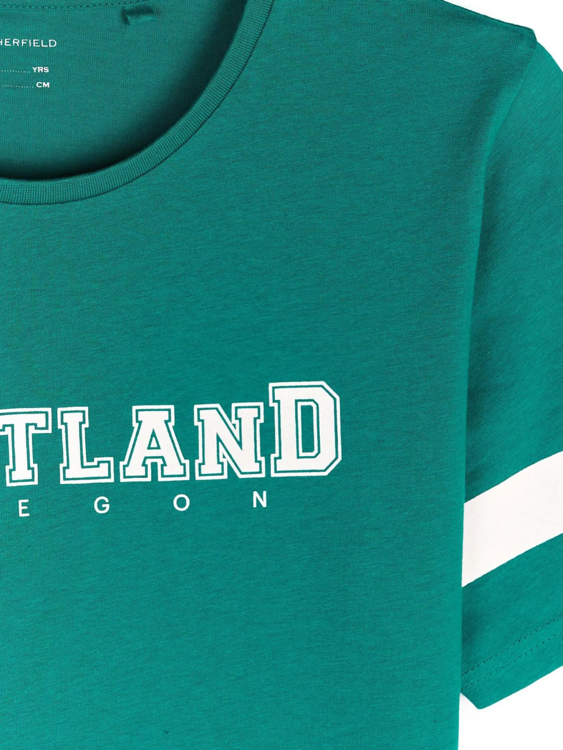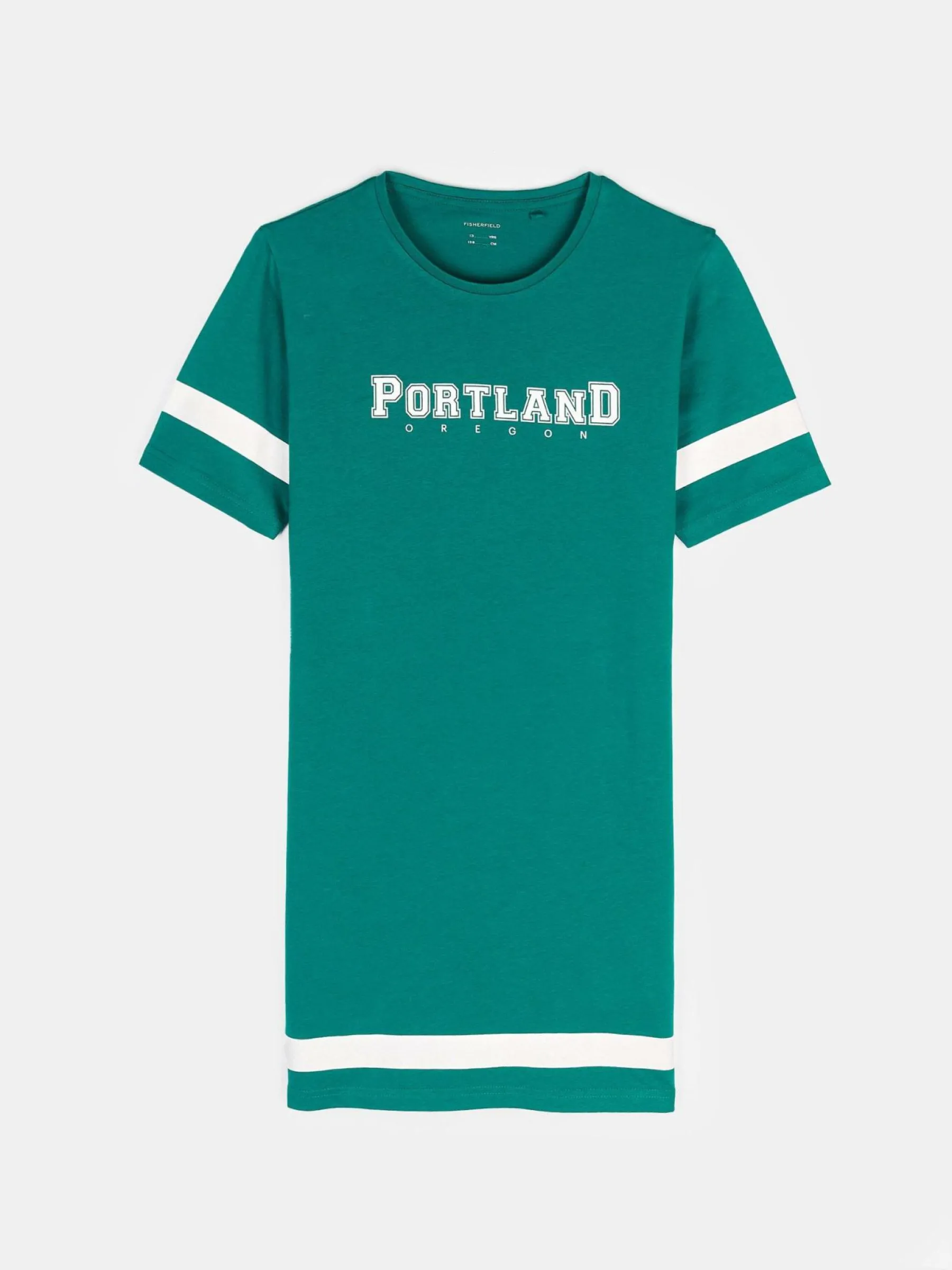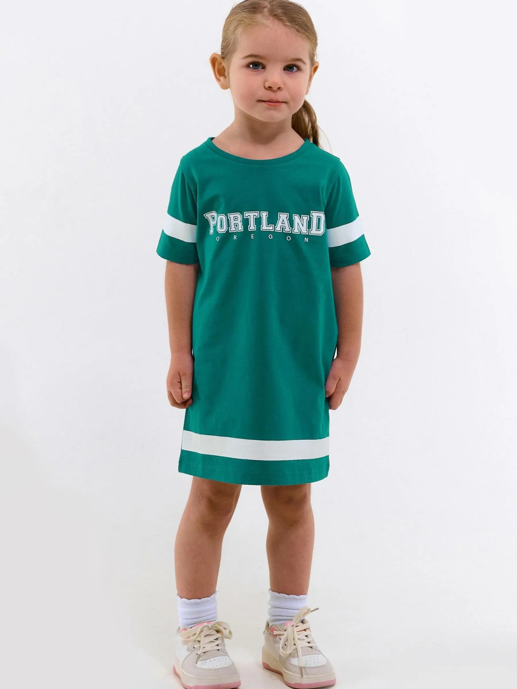 Kolor: zielonyKrój: podstawowyTyp: sukienkaRekaw: krótki rękawDługość: miniPattern style: z napisemDetal: nad gło…