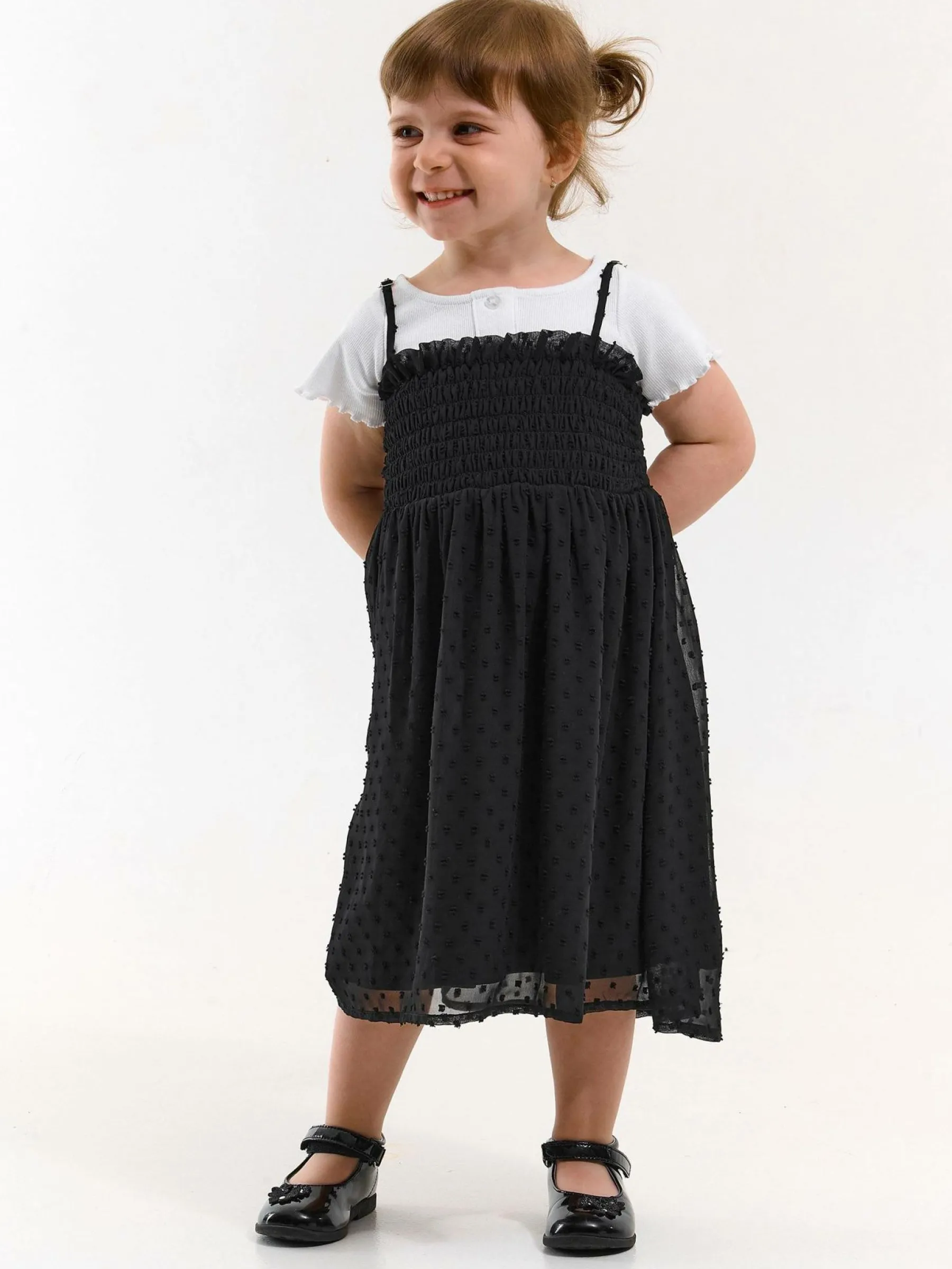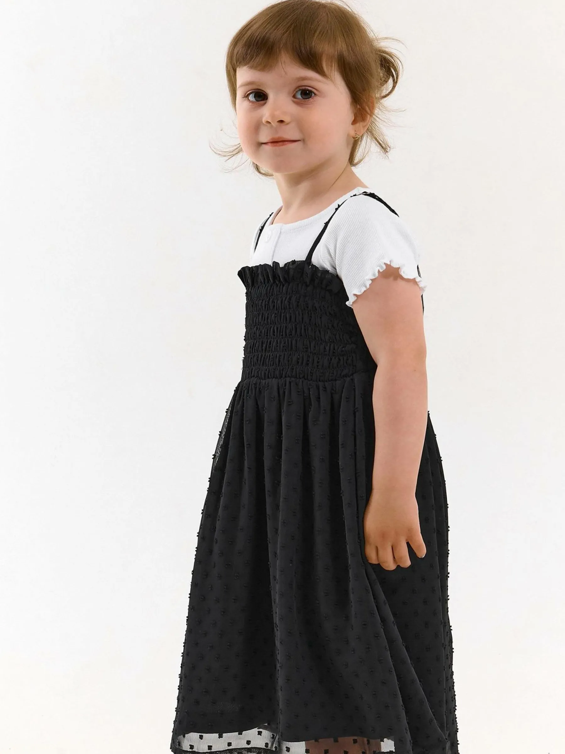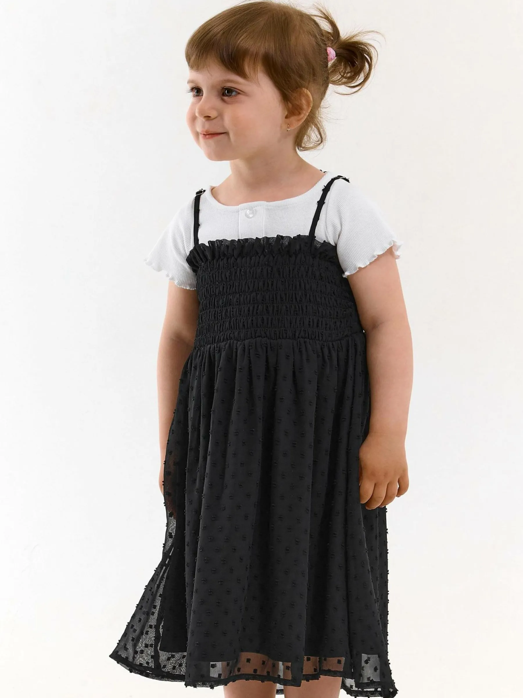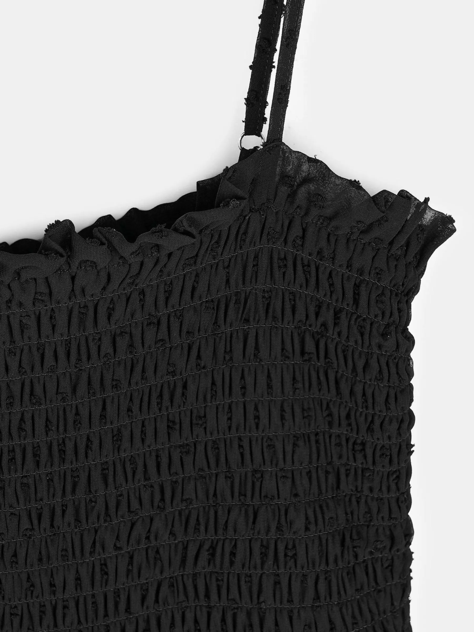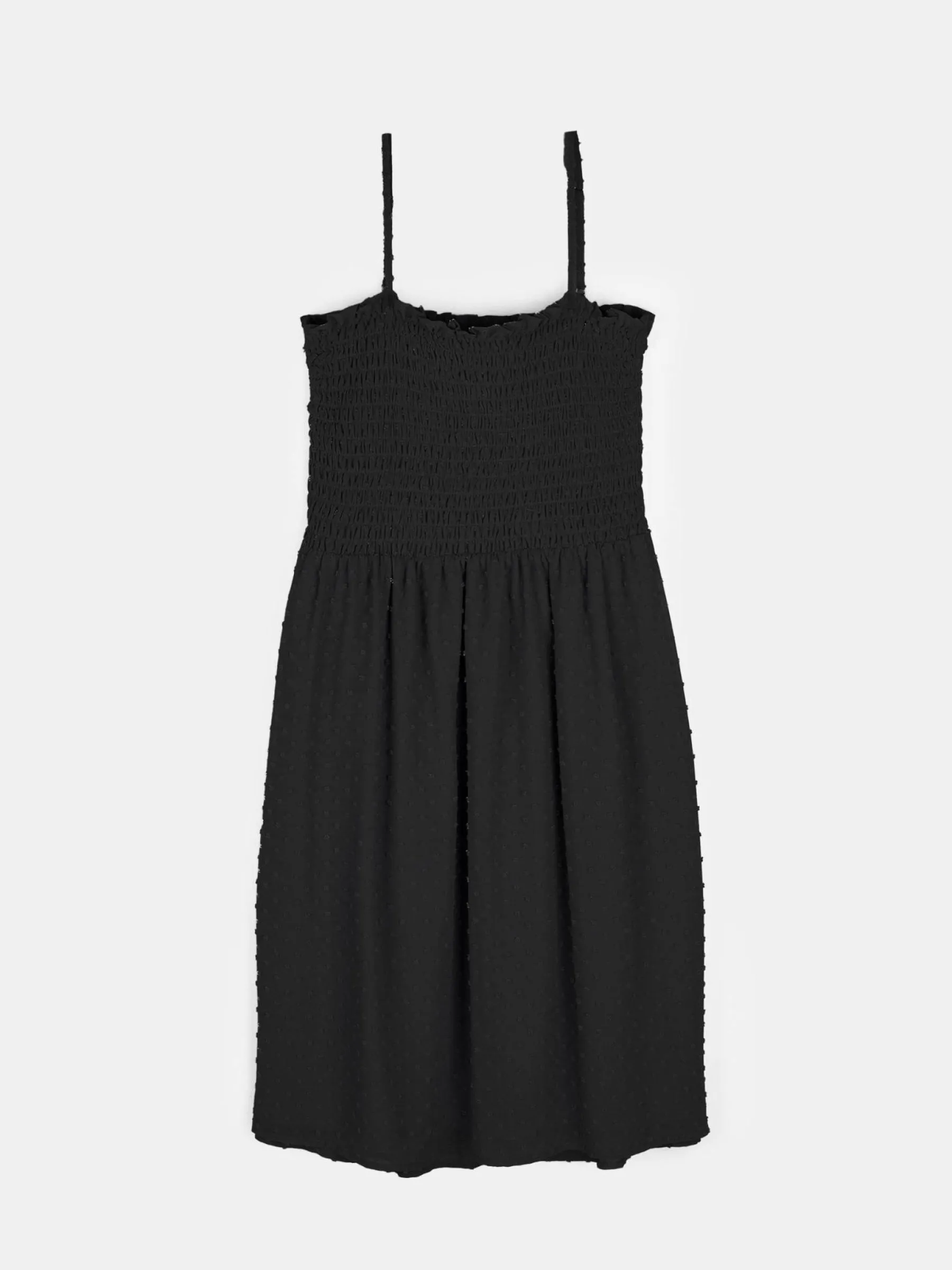 Kolor: czarnyKrój: z marszczeniemTyp: sukienkaRekaw: bez rękawówDługość: miniPattern style: pojedynczy kolor, stru…