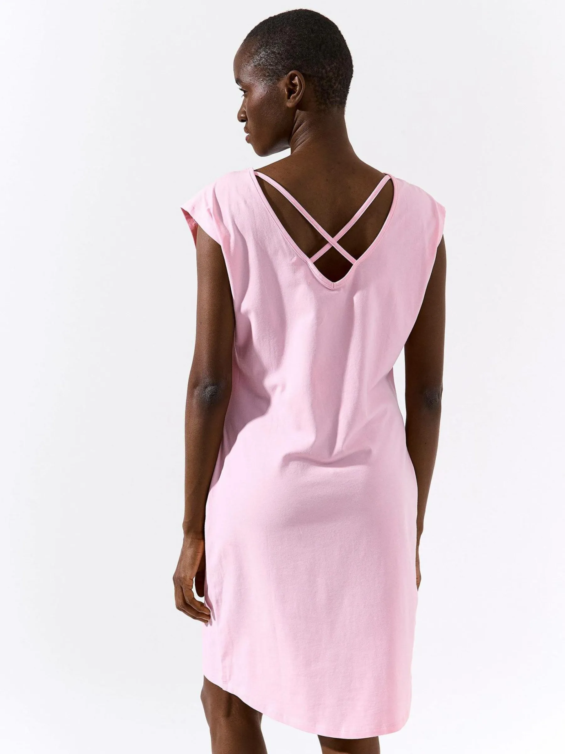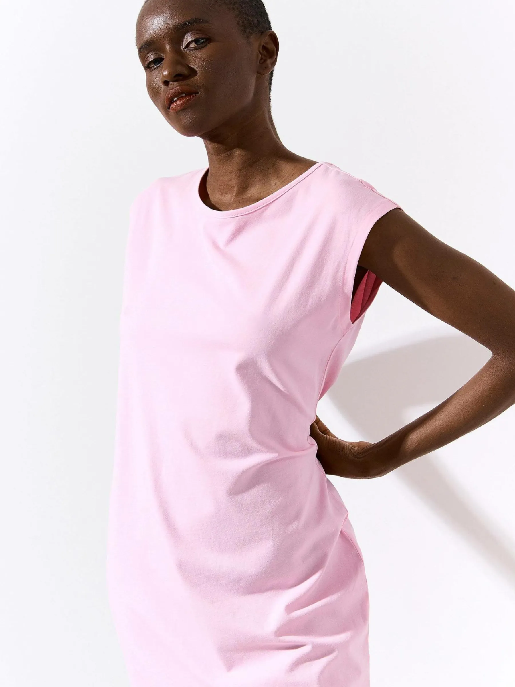 Kolor: różowyKrój: regularTyp: sukienkaRekaw: bez rękawówDługość: miniPattern style: pojedynczy kolorDetal: nad …