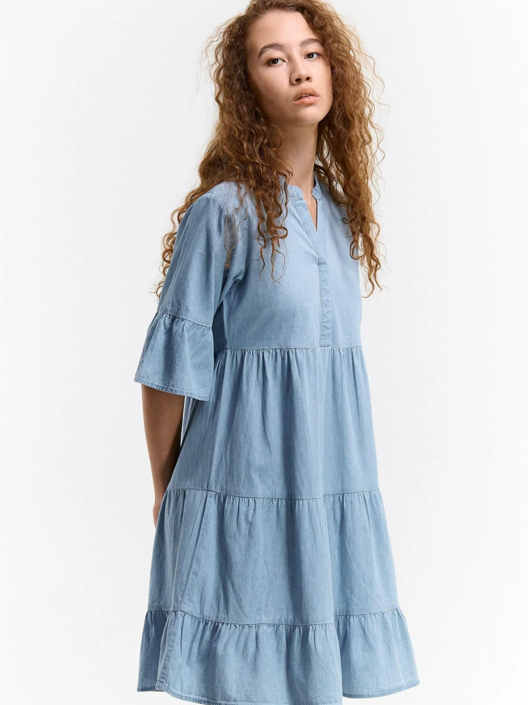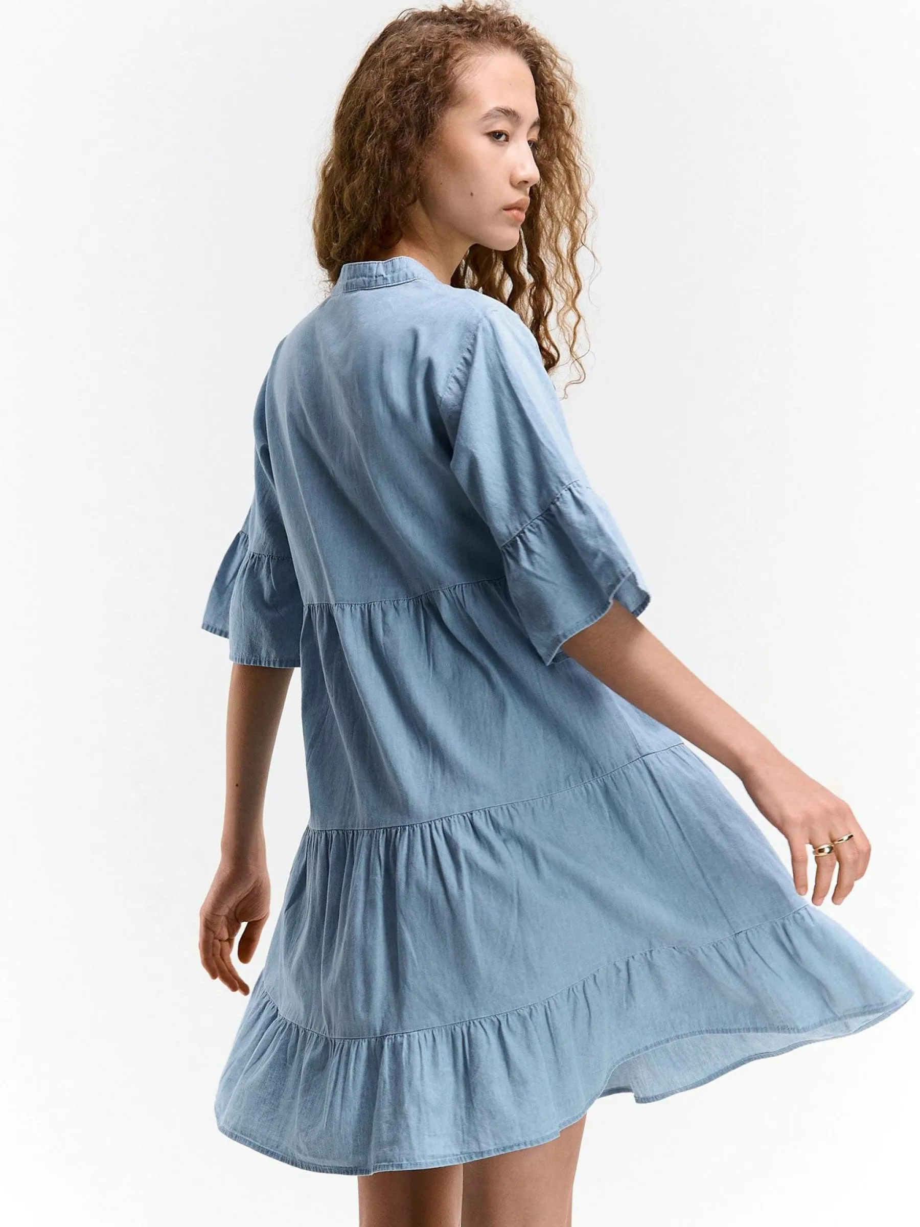 Zdjęcia z modelką mogą nie odpowiadać rzeczywistemu kolorowi produktu.Kolor: niebieskiKrój: z falbanąTyp: sukienka…