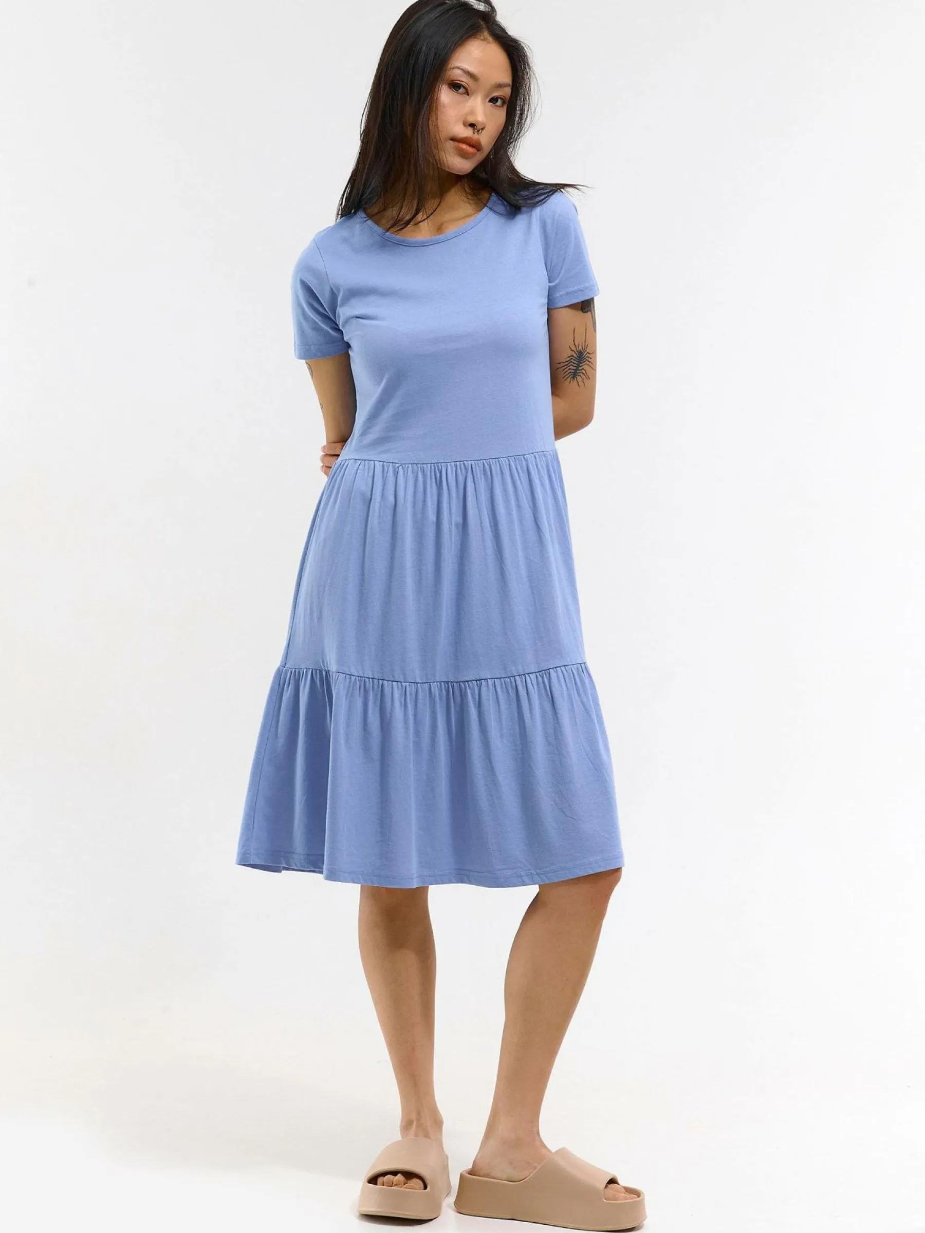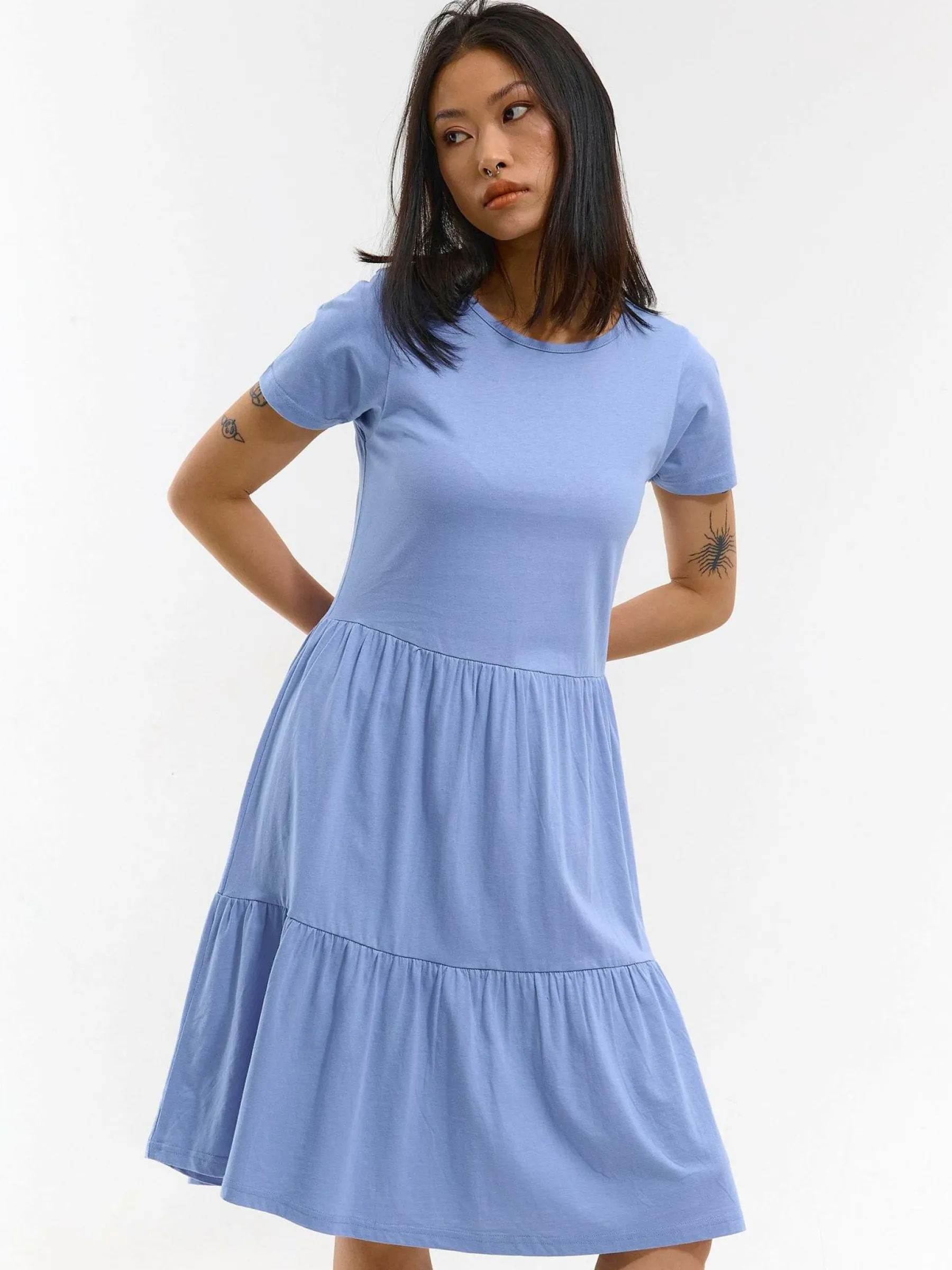 Zdjęcia z modelką mogą nie odpowiadać rzeczywistemu kolorowi produktu.Kolor: niebieskiKrój: z falbanąTyp: sukienka…