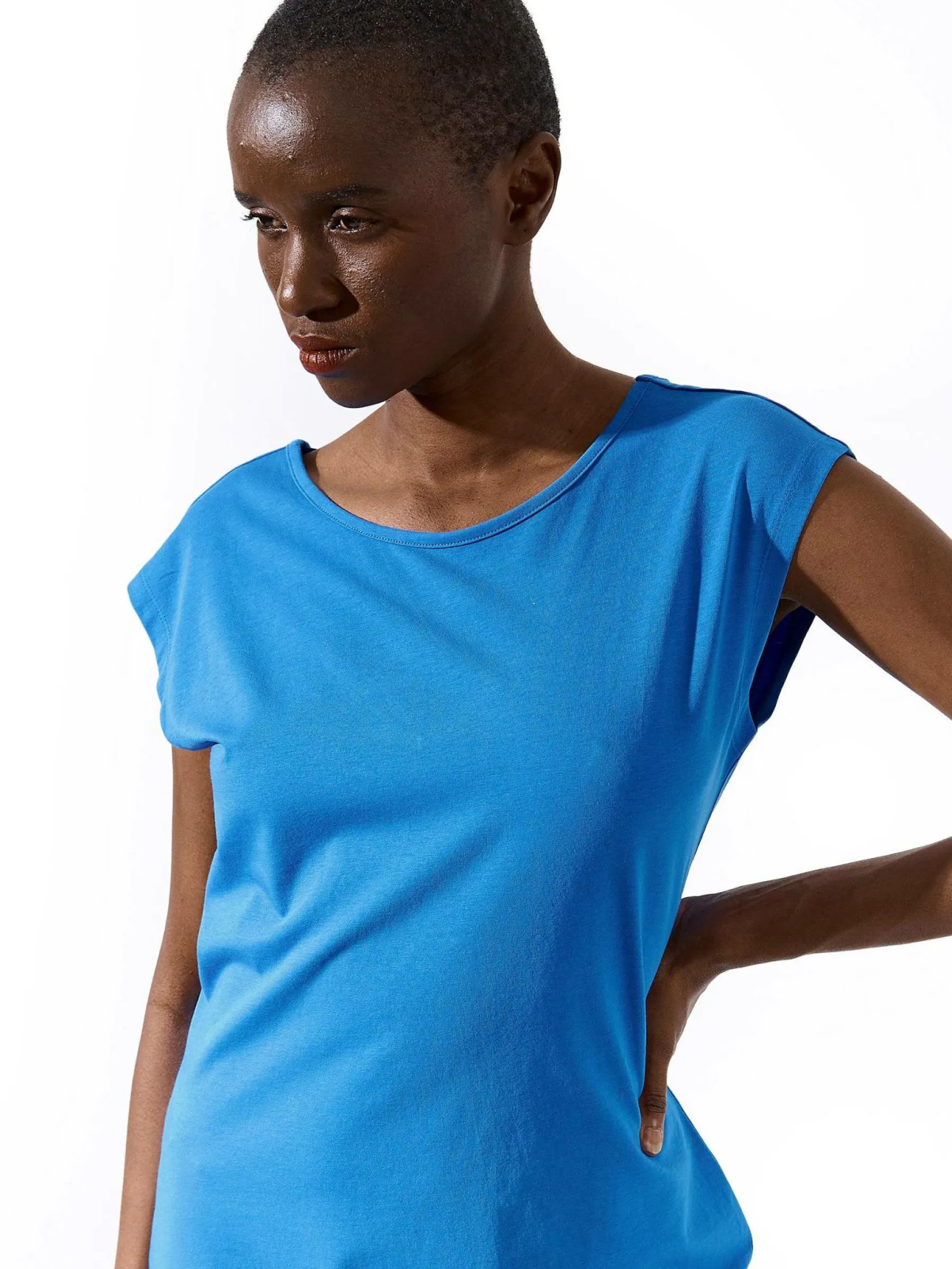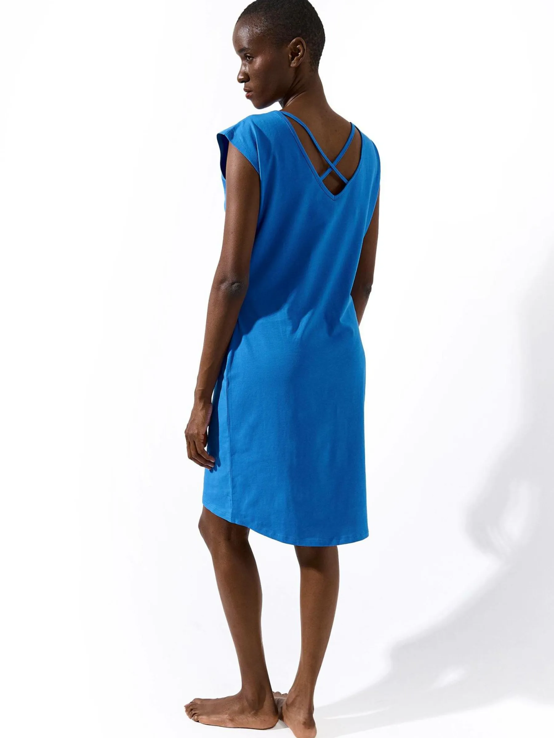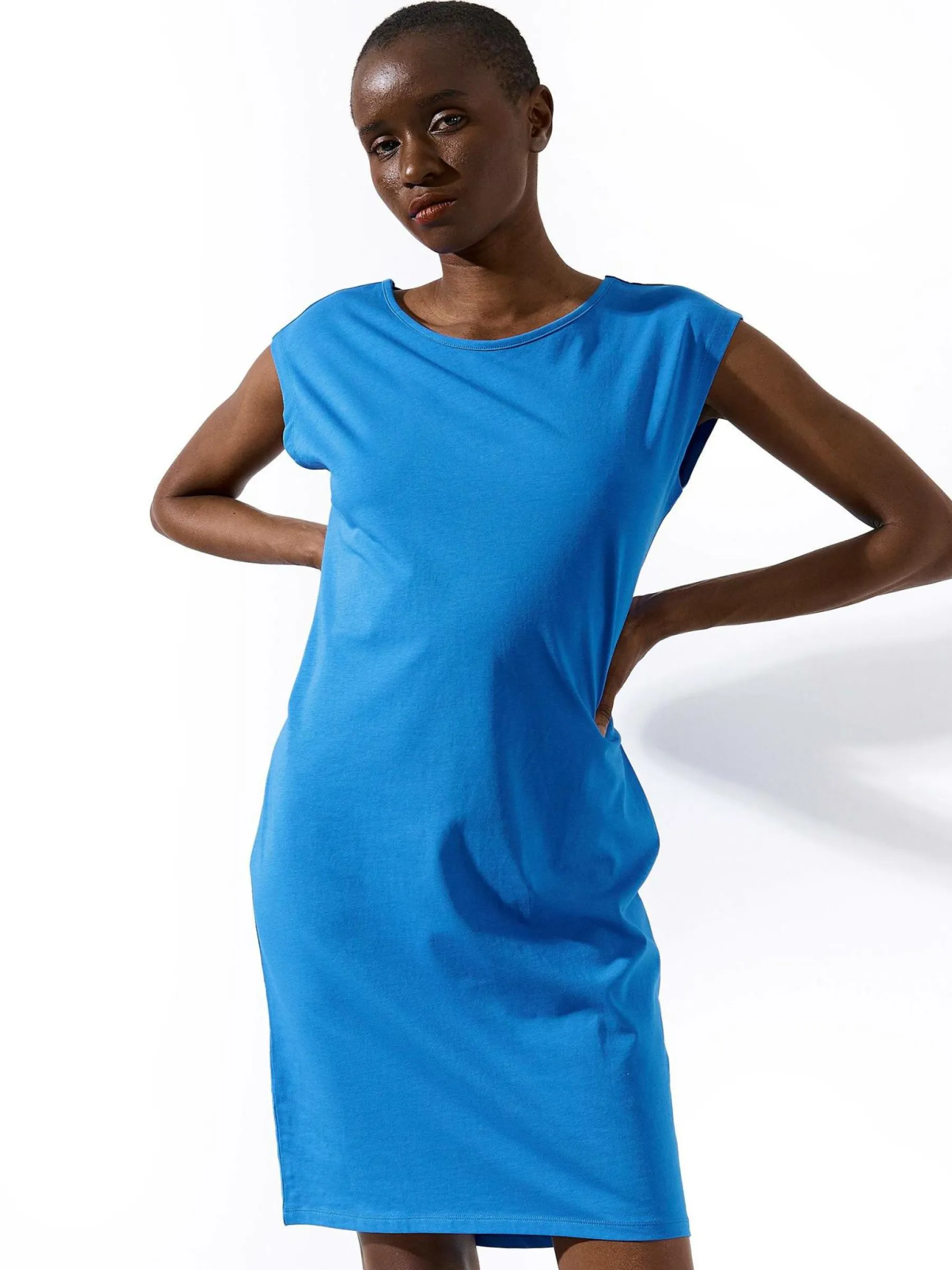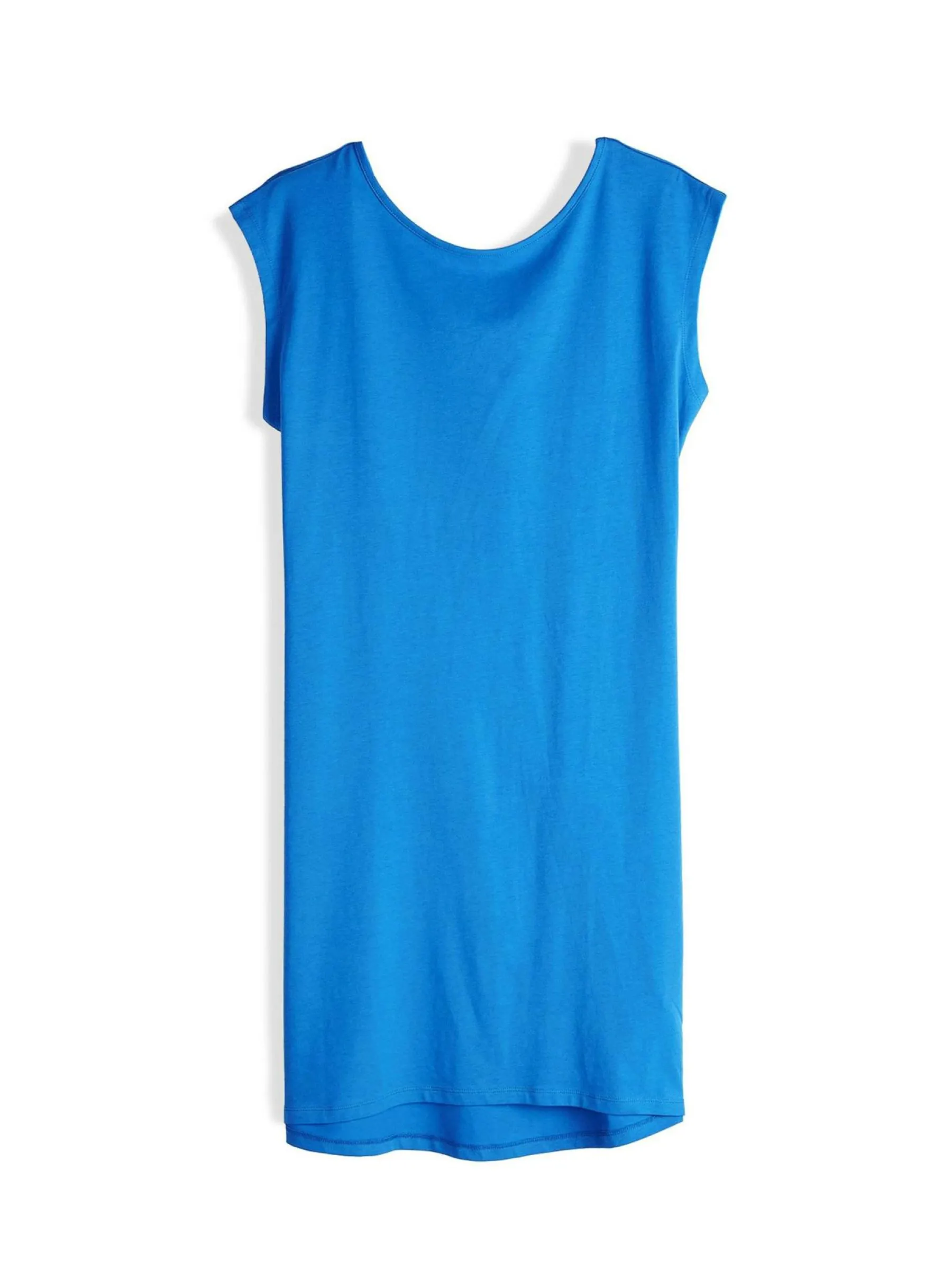 Kolor: niebieskiKrój: regularTyp: sukienkaRekaw: bez rękawówDługość: miniPattern style: pojedynczy kolorDetal: nad…
