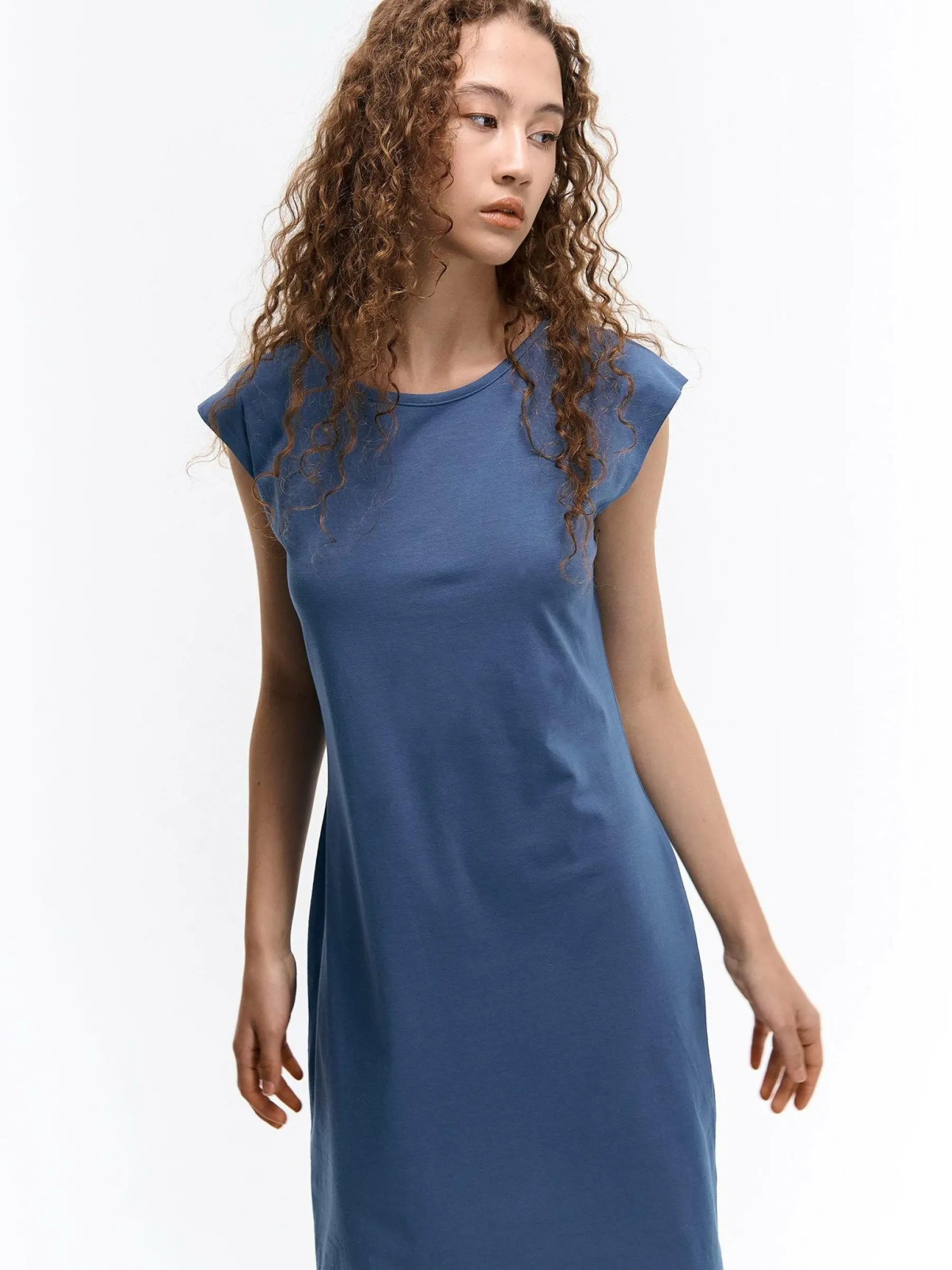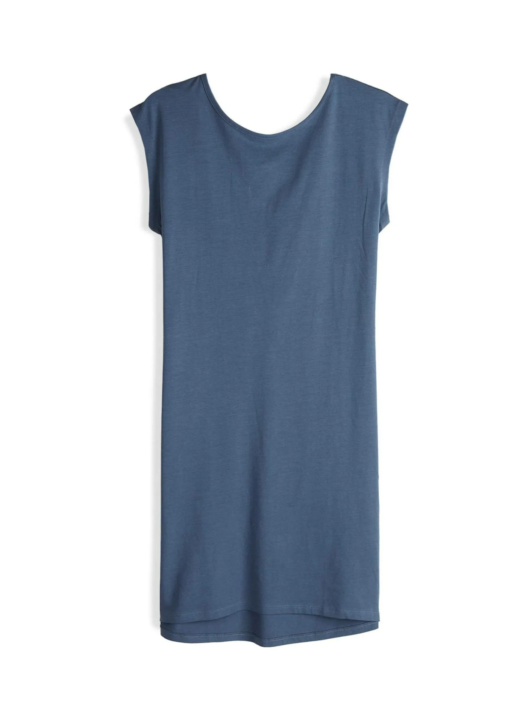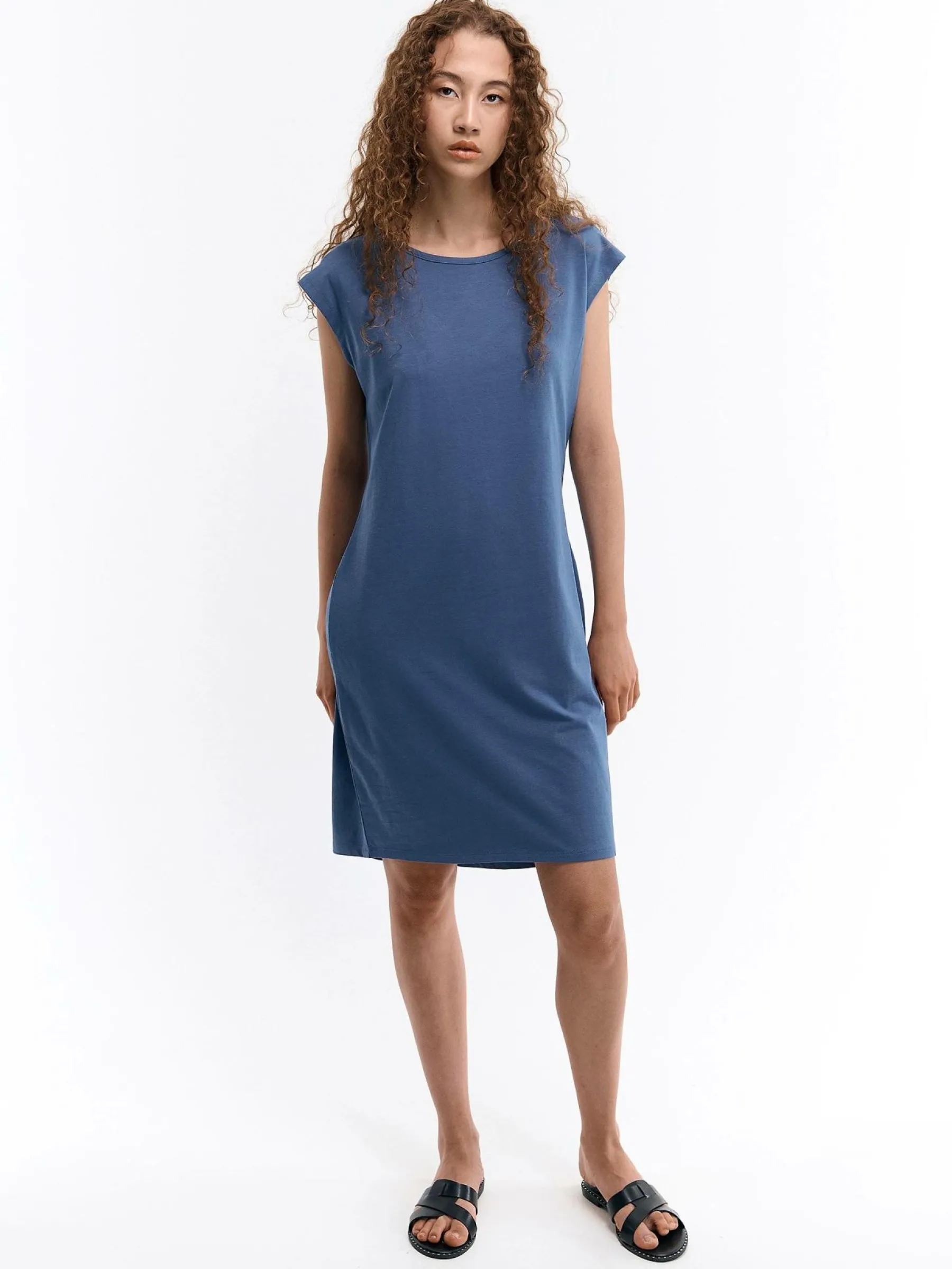 Kolor: niebieskiKrój: regularTyp: sukienkaRekaw: krótki rękawDługość: miniPattern style: pojedynczy kolorDetal: na…