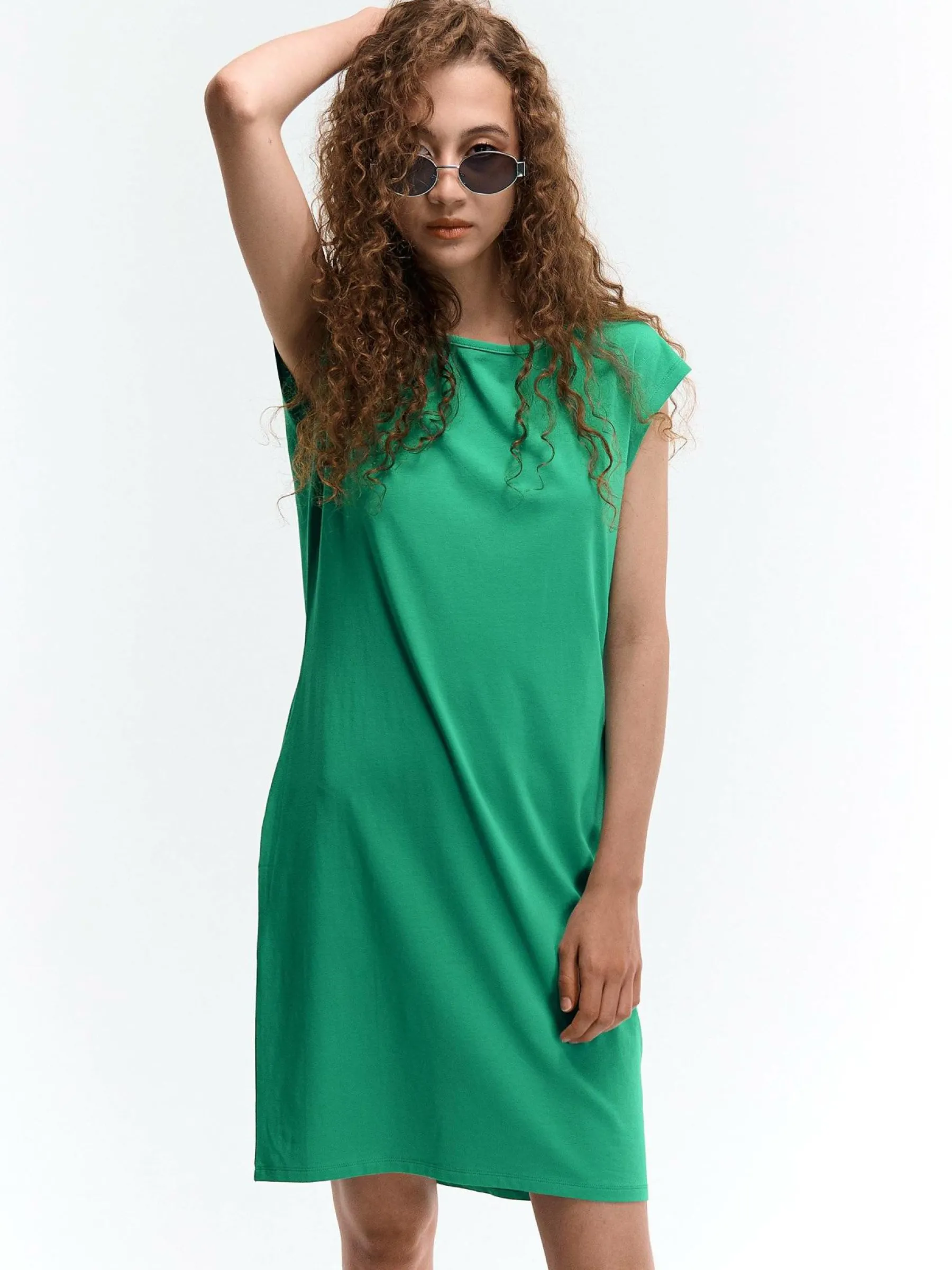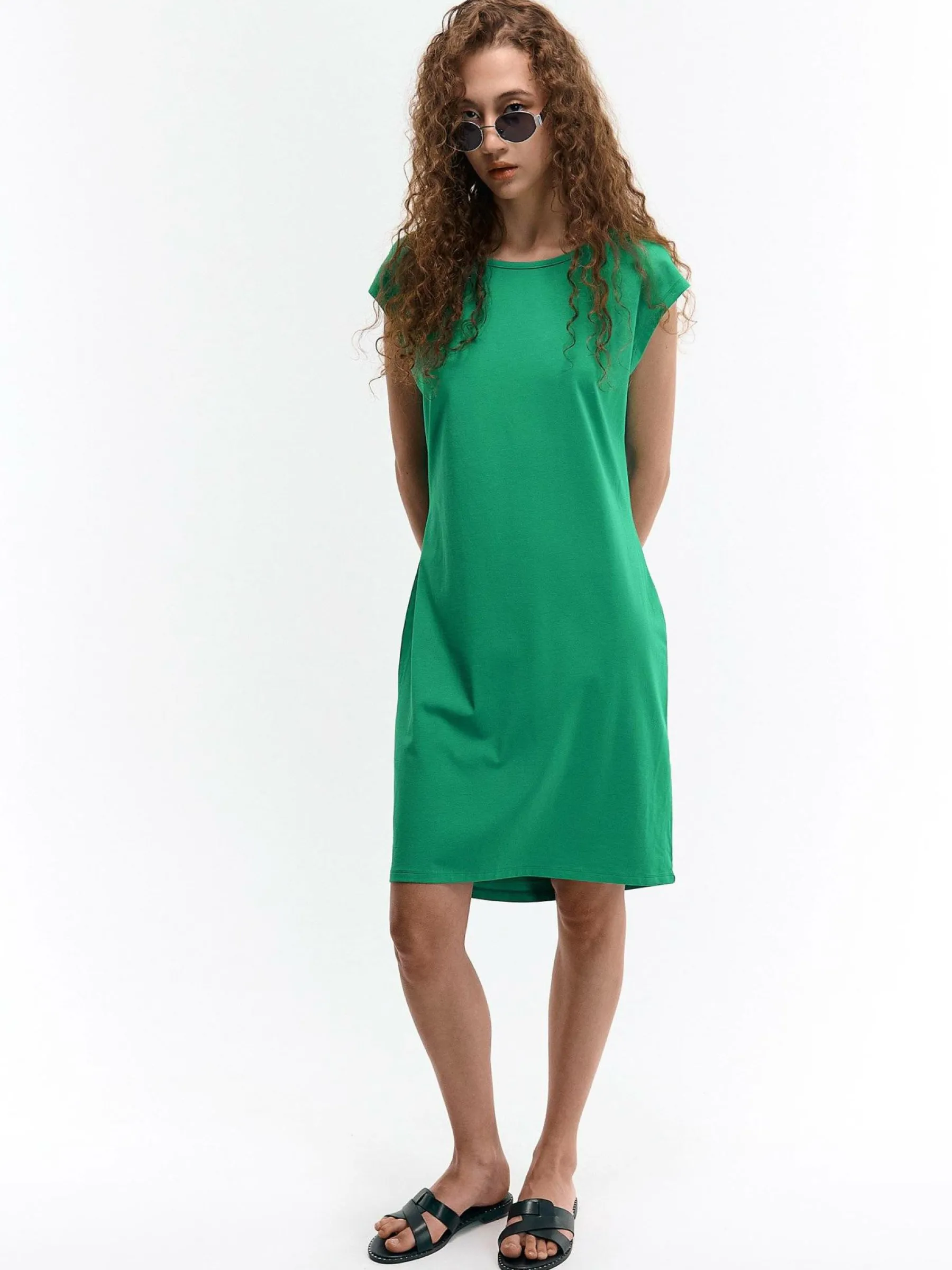 Zdjęcia z modelką mogą nie odpowiadać rzeczywistemu kolorowi produktu.Kolor: zielonyKrój: regularTyp: sukienkaRekaw…