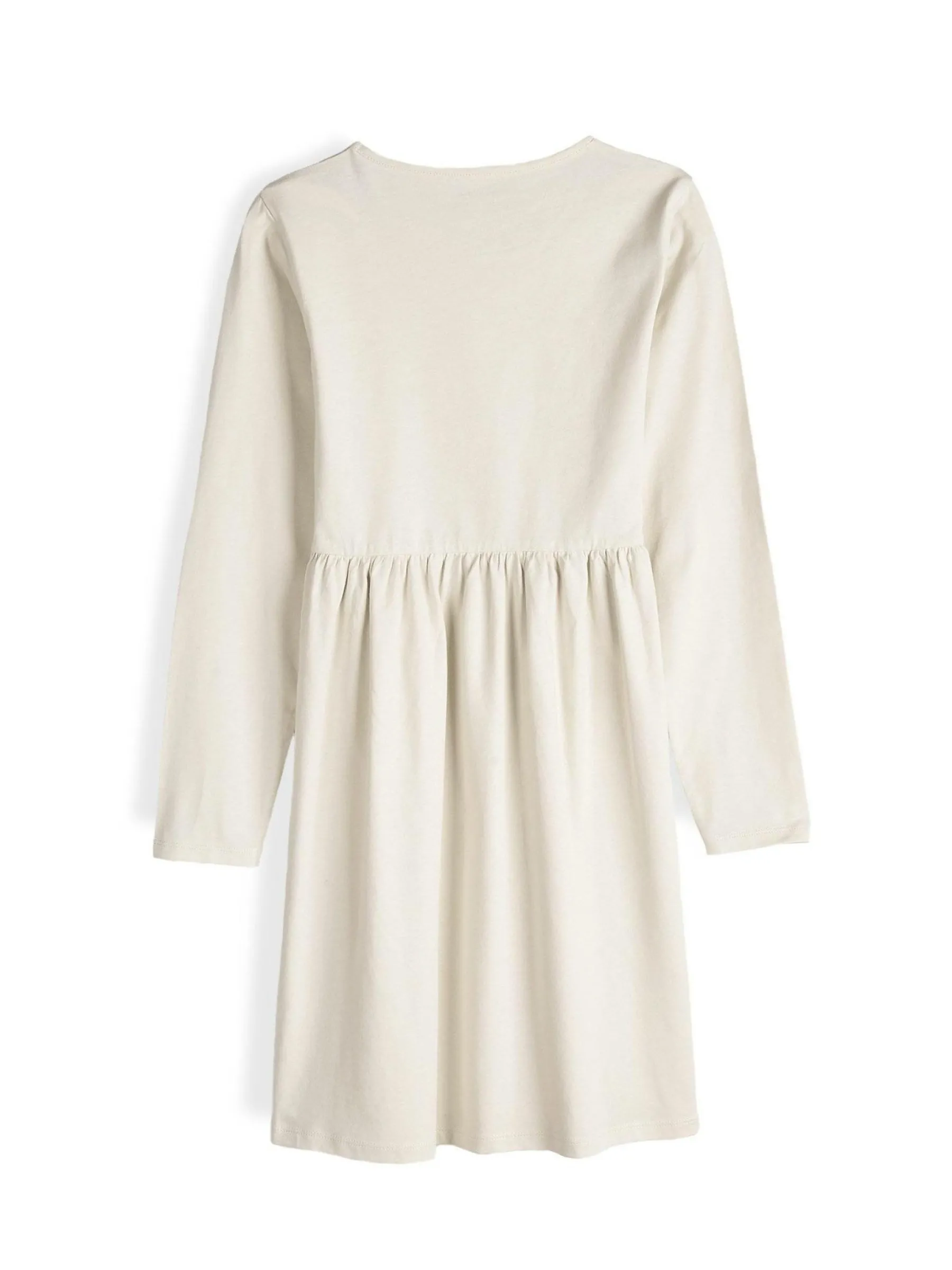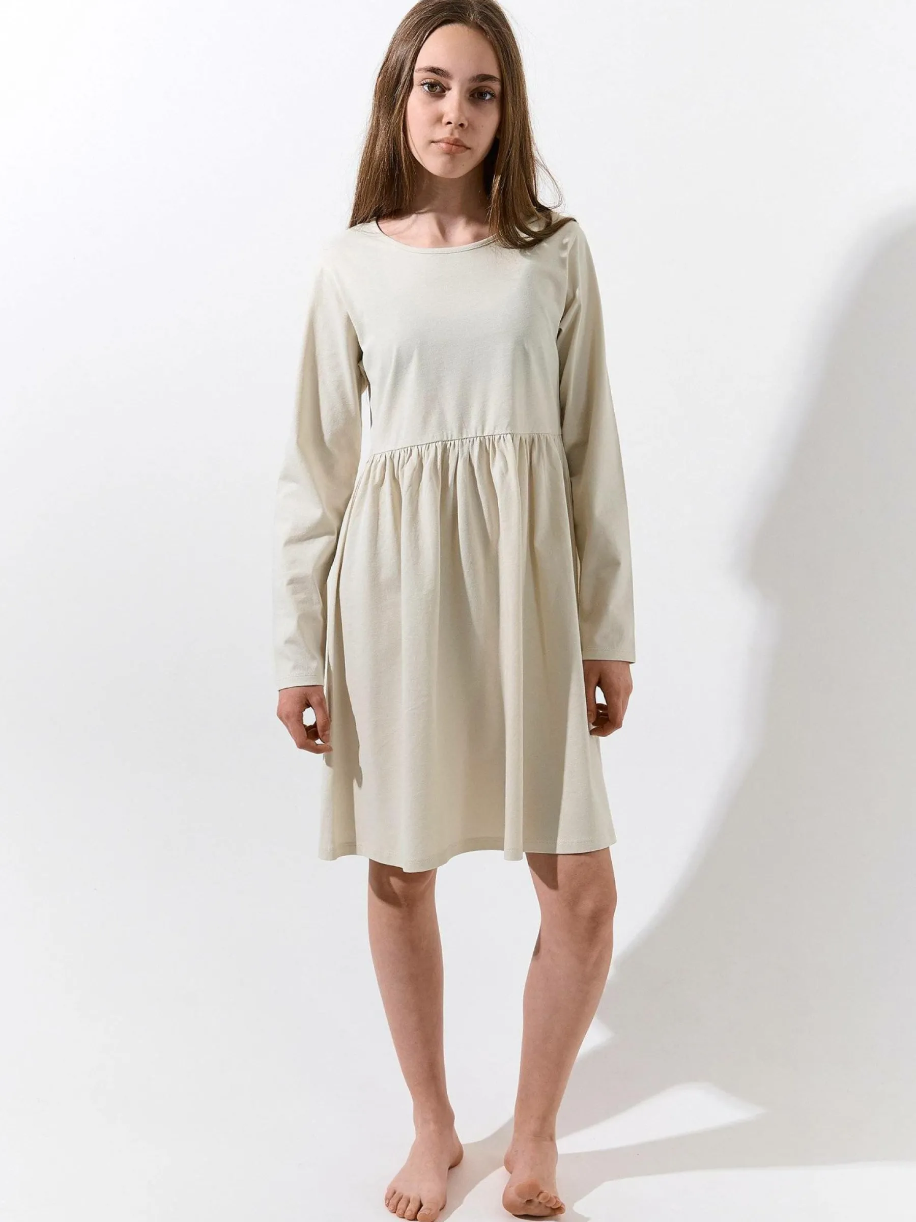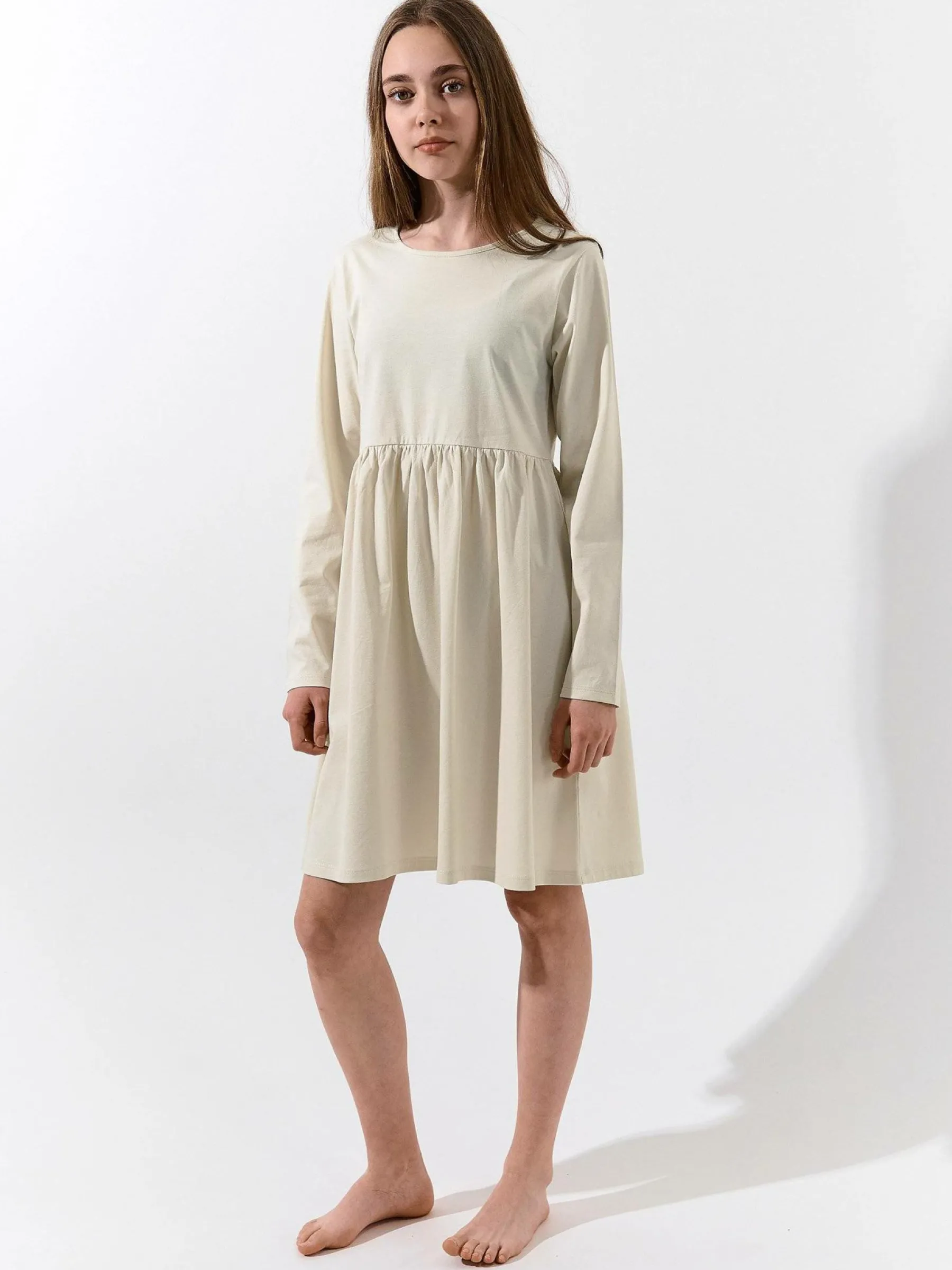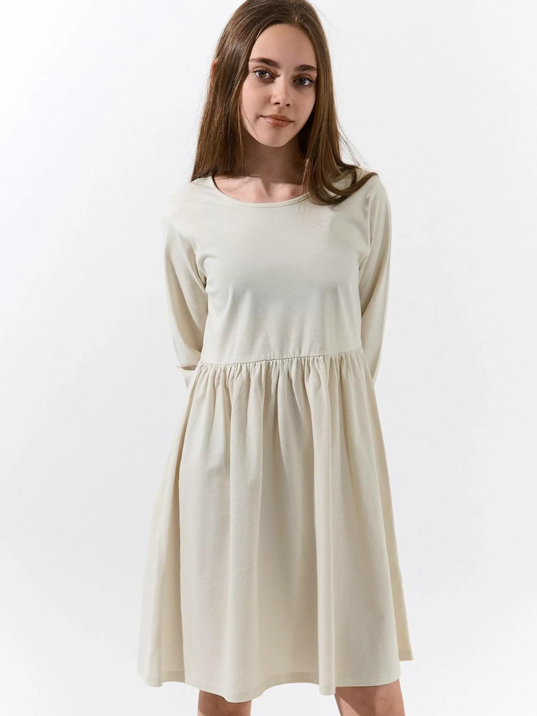Kolor: beżowyKrój: asyTyp: sukienkaRekaw: długi rękawDługość: miniPattern style: pojedynczy kolorDetal: nad głow…
